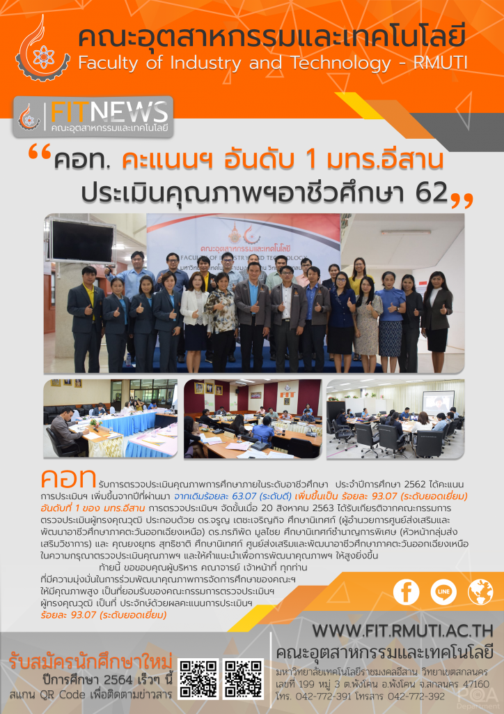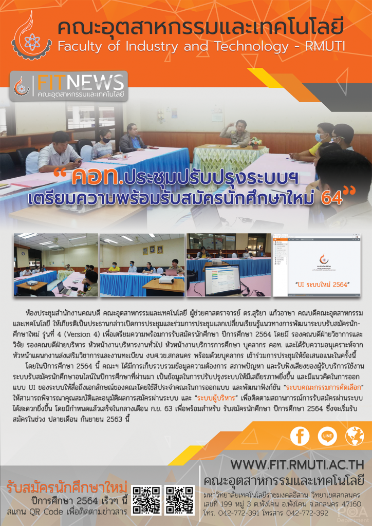 คณบดีคณะอุตสาหกรรมและเทคโนโลยี พร้อมด้วยคณะผู้บริหาร คณาจารย์ เจ้าหน้าที่ มทร.อีสาน วิทยาเขตสกลนคร เข้าร่วมต้อนรับคณะทํางานฯ ในโอกาสที่ สำนักงานโครงการพระราชทานความช่วยเหลือแก่ราชอาณาจักรกัมพูชาฯ กรมความร่วมมือระหว่างประเทศ