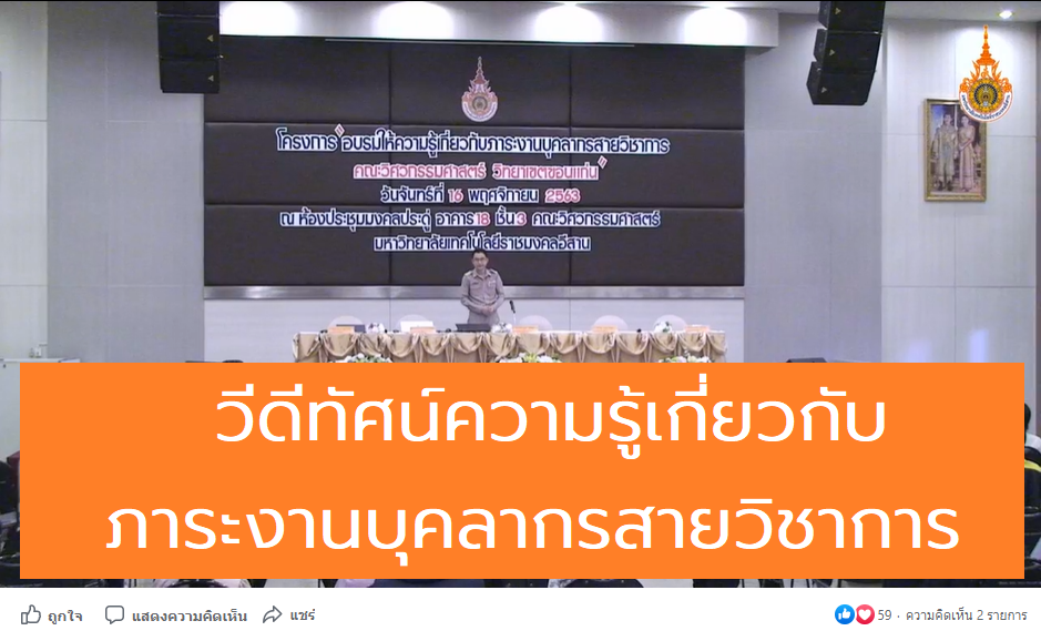 ข่าวประชาสัมพันธ์วีดีทัศน์ โครงการอบรมให้ความรู้เกี่ยวกับภาระงานบุคคลากรสายวิชาการคณะวิศวกรรมศาสตร์ วิทยาเขตขอนแก่น วันจันทร์ที่ 16 พฤศจิกายน 2563 ณ ห้องประชุมมงคลประดู่ อาคาร 18 ชั้น 3 คณะวิศวกรรมศาสตร์มหาวิทยาลัยเทคโนโลยีราชมงคลอีสาน / มกราคม 20, 2021 โครงการอบรมให้ความรู
