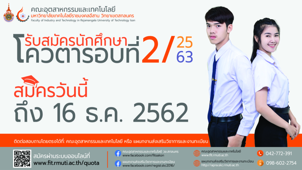 ข่าวประชาสัมพันธ์FIT RUN 2019 วันที่ 29 กันยายน 2562 ณ มหาวิทยาลัยเทคโนโลยีราชมงคลอีสาน วิทยาเขตสกลน ต.พังโคน อ.พังโคน จ.สกลนคร / กันยายน 3, 2019 คณะอุตสาหกรรมและเทคโ