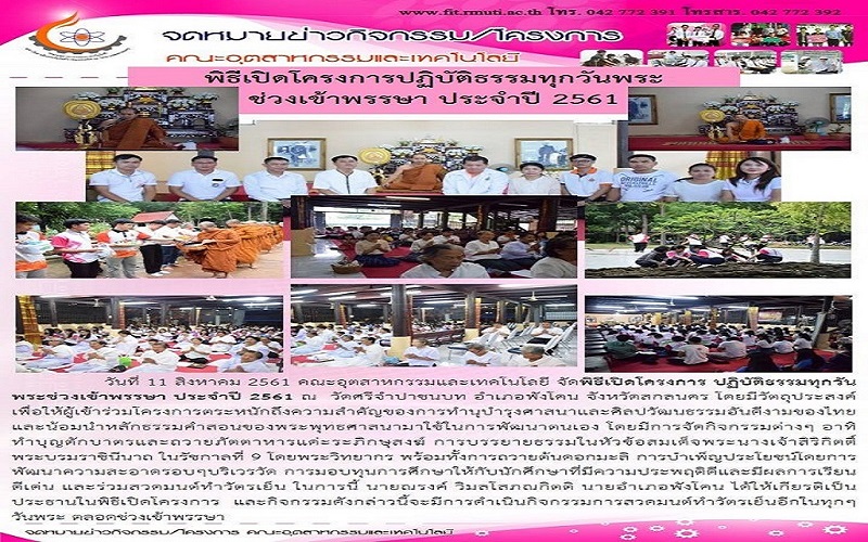 ไม่มีหมวดหมู่ปฏิบัติธรรมทุกวันพระช่วงเข้าพรรษา ประจำปี 2561 ณ วัดศรีจำปาชนบท อำเภอพังโคน จังหวัดสกลนคร / สิงหาคม 11, 2018 คณะอุตสาหกรรมและเทคโ […]