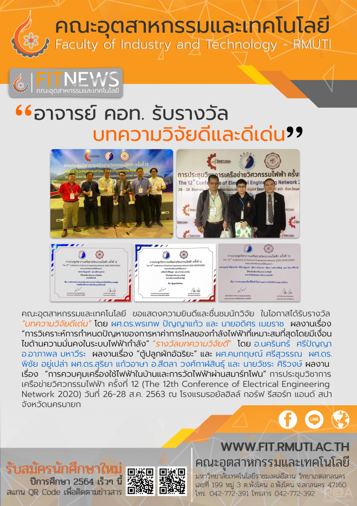 ข่าวประชาสัมพันธ์SKC TEAM ของนักศึกษาสาขาวิชาวิศวกรรมไฟฟ้า ได้รับรางวัลถ้วยพระราชทานจากสมเด็จพระเทพรัตนราชสุดา ฯ สยามบรมราชกุมารี พร้อมทุนการศึกษา 70,000 บาท ในการแข่งขัน “โครงการเพื่อเด็กและเยาวชนประจำปี 2554” PTT YOUTH Camp 2011 / กันยายน 12, 2011 บริษัท ปตท.จำกัด (มห […]