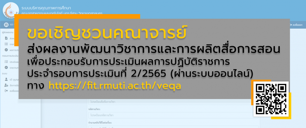 ข่าวประชาสัมพันธ์ขอเชิญชวน คณาจารย์คณะอุตสาหกรรมและเทคโนโลยี ส่งผลงานพัฒนาวิชาการและสื่อการสอน เพื่อรับการประเมินคุณภาพผลงาน ประกอบการพิจารณาผลการปฏิบัติราชการ รอบที่ 2/2565 / สิงหาคม 8, 2022 ขอเชิญชวนคณาจารย์ ส่