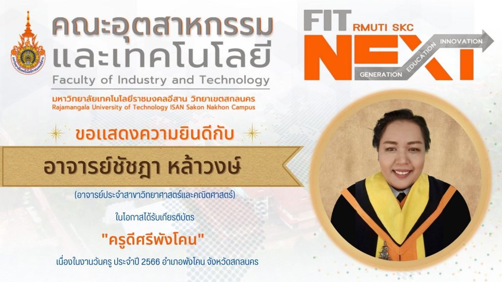 ผลงานอาจารย์ บุคลากรขอแสดงความยินดีกับ อาจารย์ชัชฎา หล้าวงษ์ ในโอกาสเข้ารับเกียรติบัตร “ครูดีศรีพังโคน” วันครู ประจำปี 2566 / มกราคม 17, 2023 ขอแสดงความยินดี อาจา
