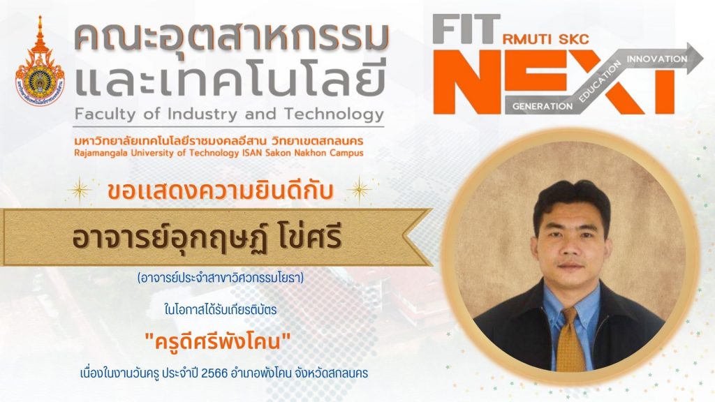 ผลงานอาจารย์ บุคลากรขอแสดงความยินดีกับ อาจารย์อุกฤษฏ์ โข่ศรี ในโอกาสเข้ารับเกียรติบัตร “ครูดีศรีพังโคน” วันครู ประจำปี 2566 / มกราคม 17, 2023 ขอแสดงความยินดี อาจา