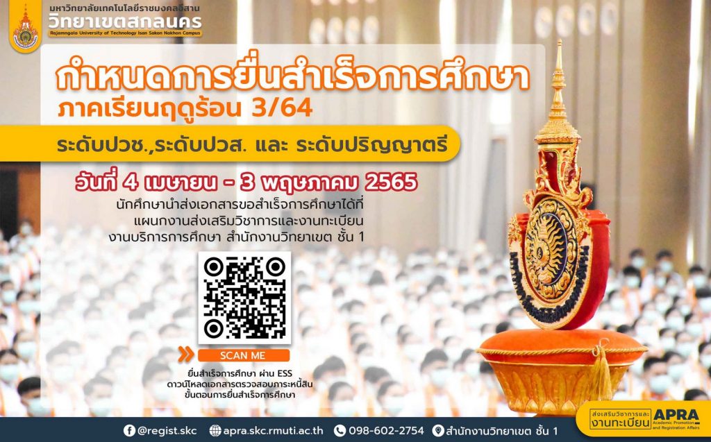 ข่าวประชาสัมพันธ์กำหนดการยื่นสำเร็จการศึกษา ภาคการศึกษาฤดูร้อน (ภาคเรียนที่ 3) ปีการศึกษา 2564 ระดับ ปวช. ปวส. ปริญญาตรี / เมษายน 8, 2022 กำหนดการยื่นสำเร็จกา