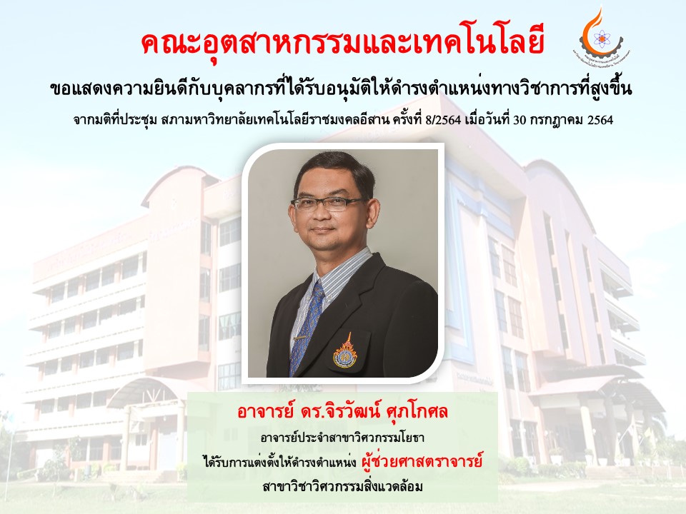 ข่าวประชาสัมพันธ์ขอแสดงความยินดีกับบุคลากรที่ได้รับอนุมัติให้ดำรงตำแหน่งทางวิชาการที่สูงขึ้น / กรกฎาคม 30, 2021 คณะอุตสาหกรรมและเทคโ