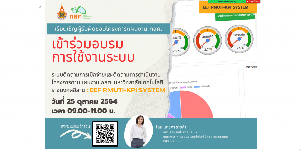 โครงการอบรมการใช้งานระบบติดตามการเบิกจ่ายและติดตามการดำเนินงานโครงการตามแผนงาน กสศ. มหาวิทยาลัยเทคโนโลยีราชมงคลอีสาน (EEF RMUTI-KPI SYSTEM)