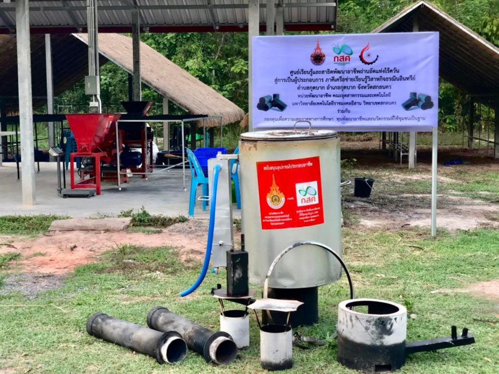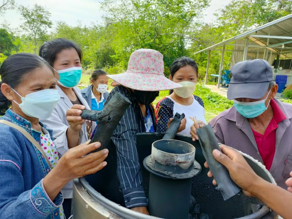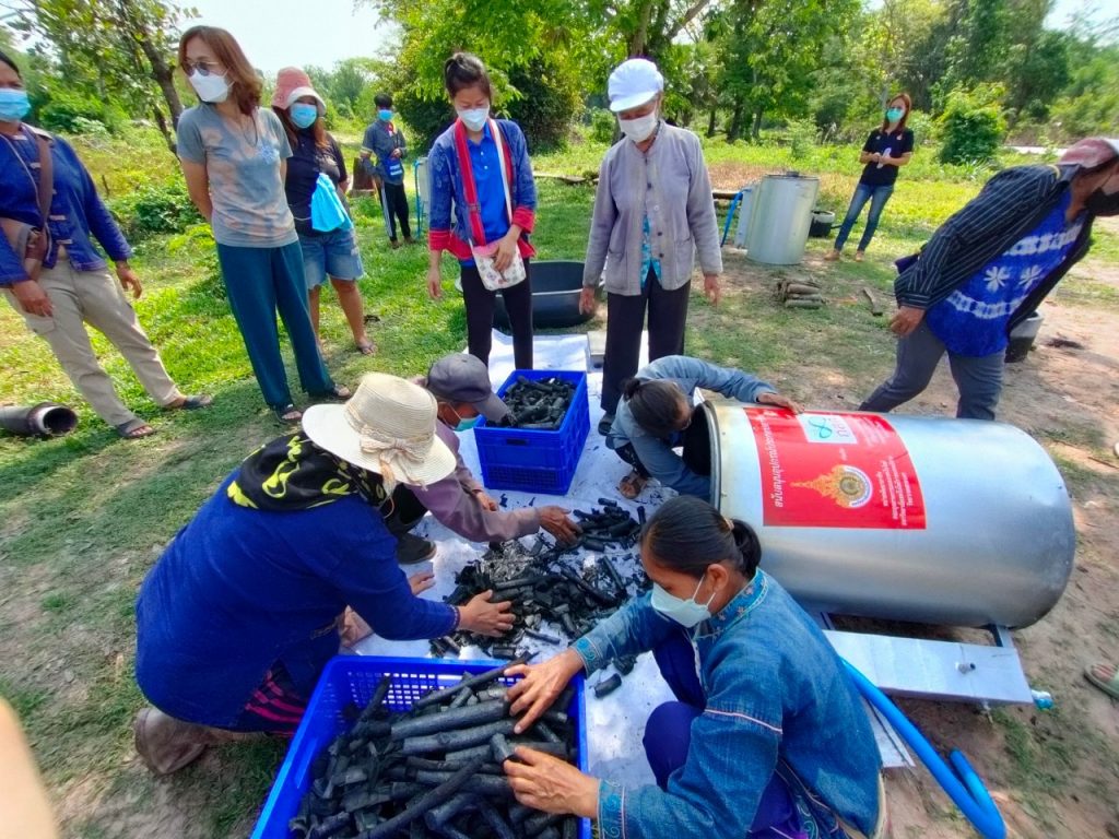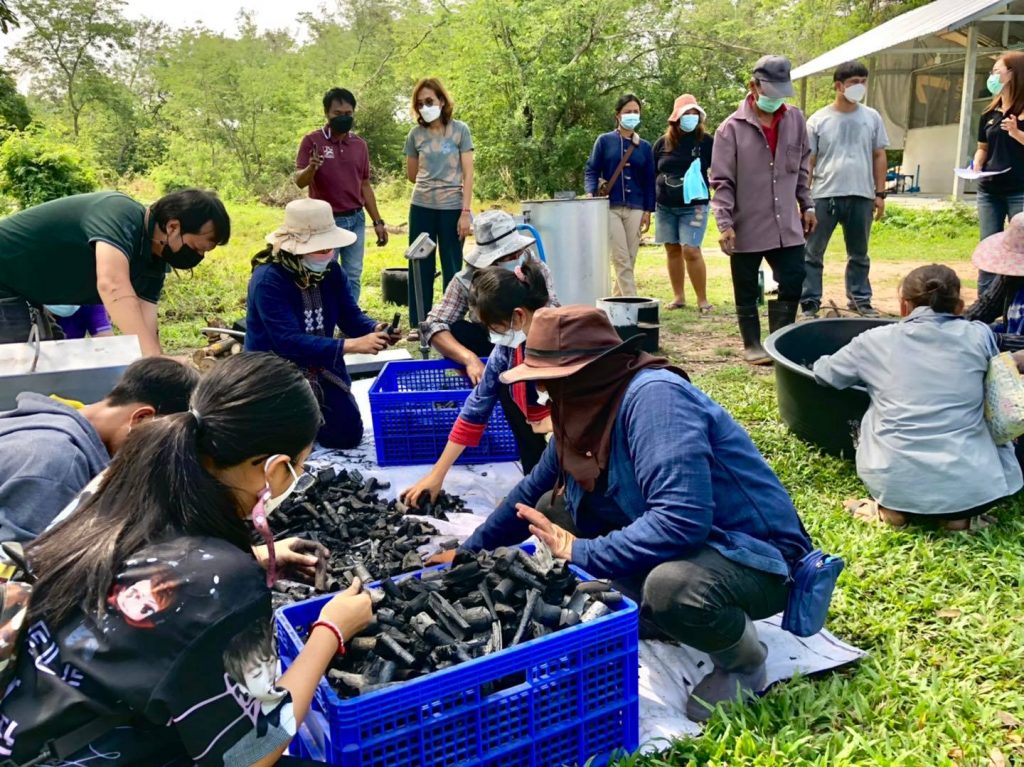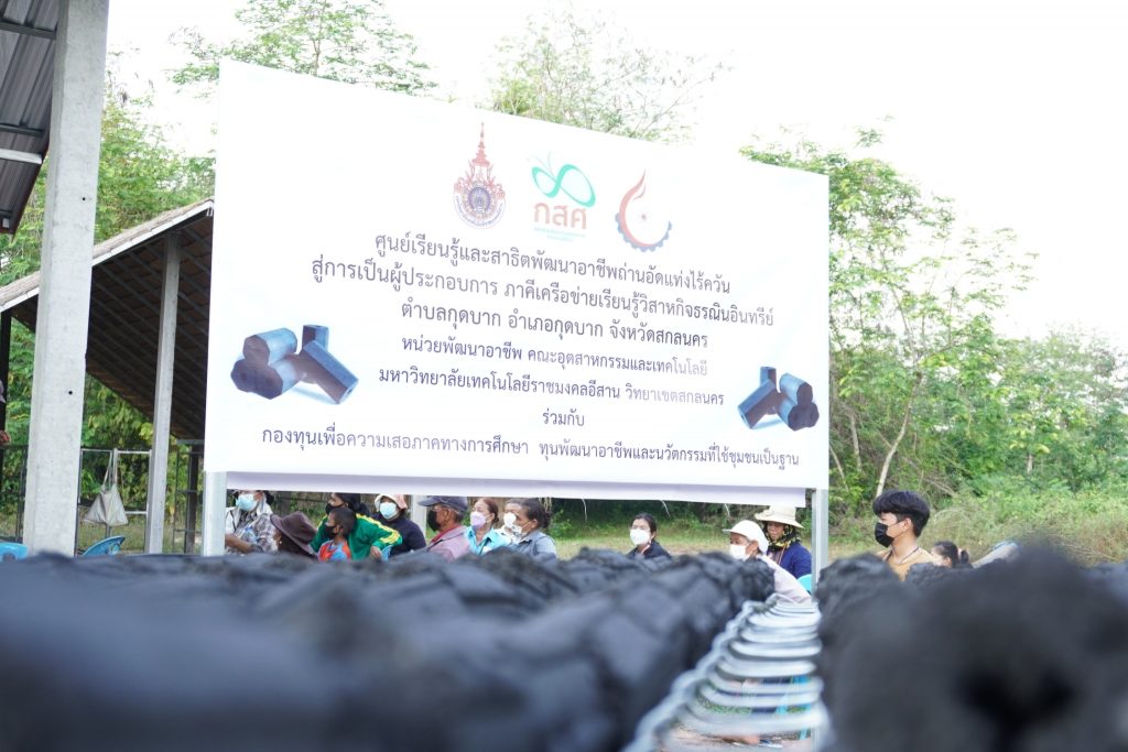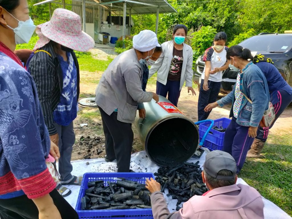 วันที่ 26-29 มีนาคม 2565 คณะอุตสาหกรรมและเทคโนโลยี มทร.อีสาน วิทยาเขตสกลนคร จัดกิจกรรมอบรมทักษะอาชีพผลิตถ่านอัดแท่งไร้ควัน ภายใต้โครงการทุนพัฒนาอาชีพและนวัตกรรมที่ใช้ชุมชนเป็นฐาน ปี 2564 กองทุนเพื่อความเสมอภาคทางการศึกษา (กสศ.) ณ กลุ่มวิสาหกิจชุมชนธรณินทร์อินทรีย์ อ.กุดบาก จ.สกลนคร โดยมีวัตถุประสงค์เพื่อส่งเสริม สนับสนุนและให้ความช่วยเหลือ พัฒนาทักษะอาชีพชุมชนให้สามารถเผาถ่านไร้ควันและถ่านอัดแท่งได้ตามมารตรฐานถ่านอัดแท่งชุมชน พร้อมทั้งพัฒนารูปแบบหีบห่อบรรจุภัณฑ์ และสามารถใช้รูปแบบการจำหน่ายออนไลน์ได้ โดยหัวข้อการฝึกอบรมประกอบด้วย ทักษะปฏิบัติการเผาถ่านไร้ควัน ทักษะปฏิบัติการออกแบบโลโก้ และบรรจุภัณฑ์ ทักษะปฏิบัติการขายออนไลน์การตลาดและบริหารจัดการ