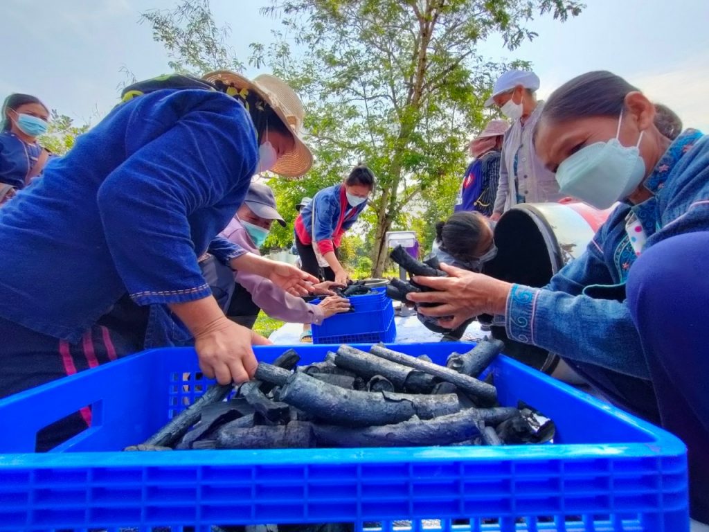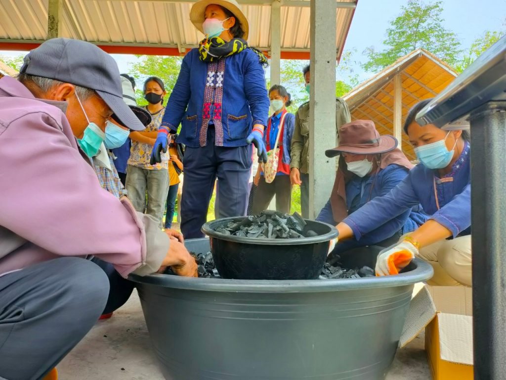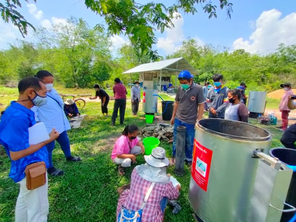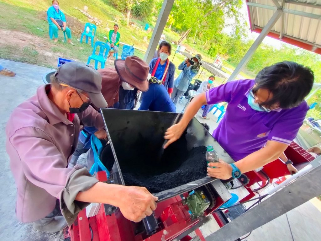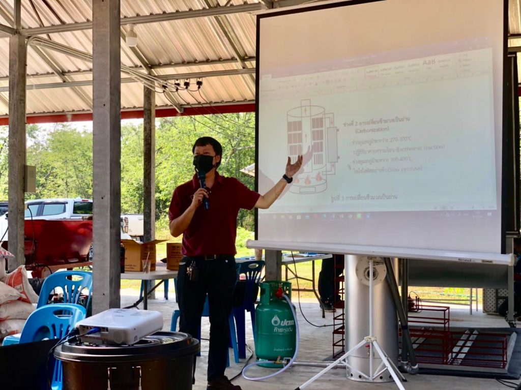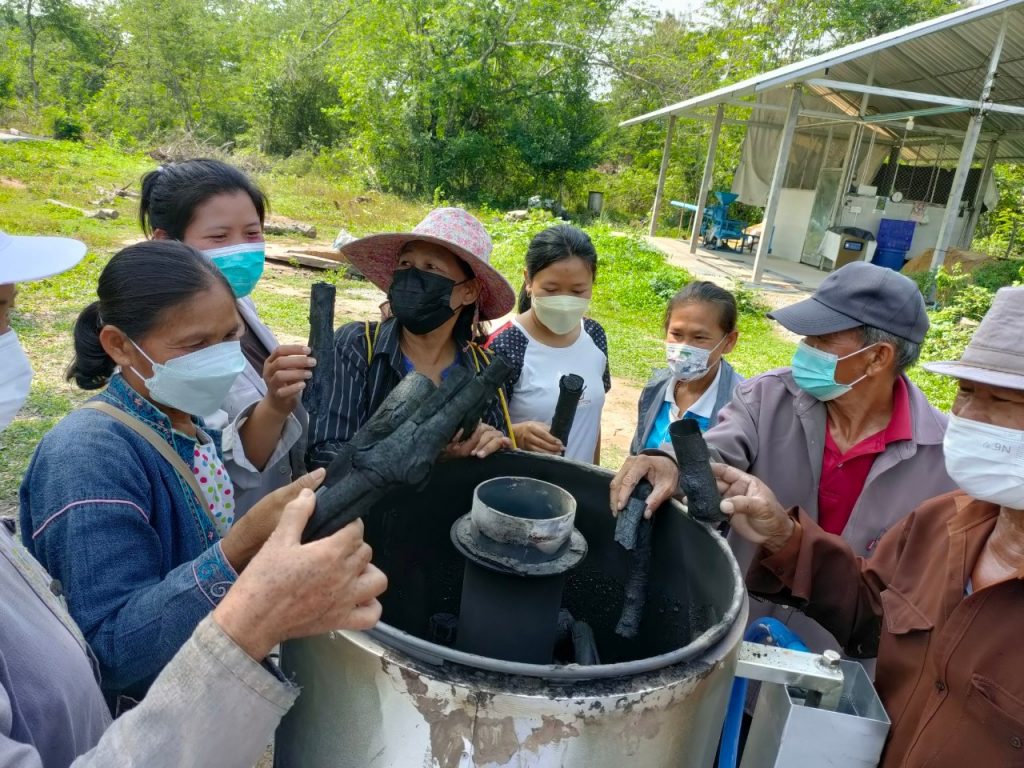 วันที่ 26-29 มีนาคม 2565 คณะอุตสาหกรรมและเทคโนโลยี มทร.อีสาน วิทยาเขตสกลนคร จัดกิจกรรมอบรมทักษะอาชีพผลิตถ่านอัดแท่งไร้ควัน ภายใต้โครงการทุนพัฒนาอาชีพและนวัตกรรมที่ใช้ชุมชนเป็นฐาน ปี 2564 กองทุนเพื่อความเสมอภาคทางการศึกษา (กสศ.) ณ กลุ่มวิสาหกิจชุมชนธรณินทร์อินทรีย์ อ.กุดบาก จ.สกลนคร โดยมีวัตถุประสงค์เพื่อส่งเสริม สนับสนุนและให้ความช่วยเหลือ พัฒนาทักษะอาชีพชุมชนให้สามารถเผาถ่านไร้ควันและถ่านอัดแท่งได้ตามมารตรฐานถ่านอัดแท่งชุมชน พร้อมทั้งพัฒนารูปแบบหีบห่อบรรจุภัณฑ์ และสามารถใช้รูปแบบการจำหน่ายออนไลน์ได้ โดยหัวข้อการฝึกอบรมประกอบด้วย ทักษะปฏิบัติการเผาถ่านไร้ควัน ทักษะปฏิบัติการออกแบบโลโก้ และบรรจุภัณฑ์ ทักษะปฏิบัติการขายออนไลน์การตลาดและบริหารจัดการ