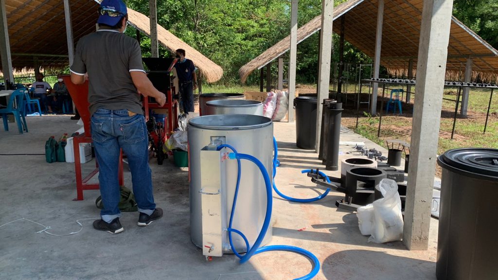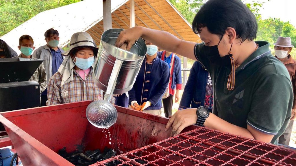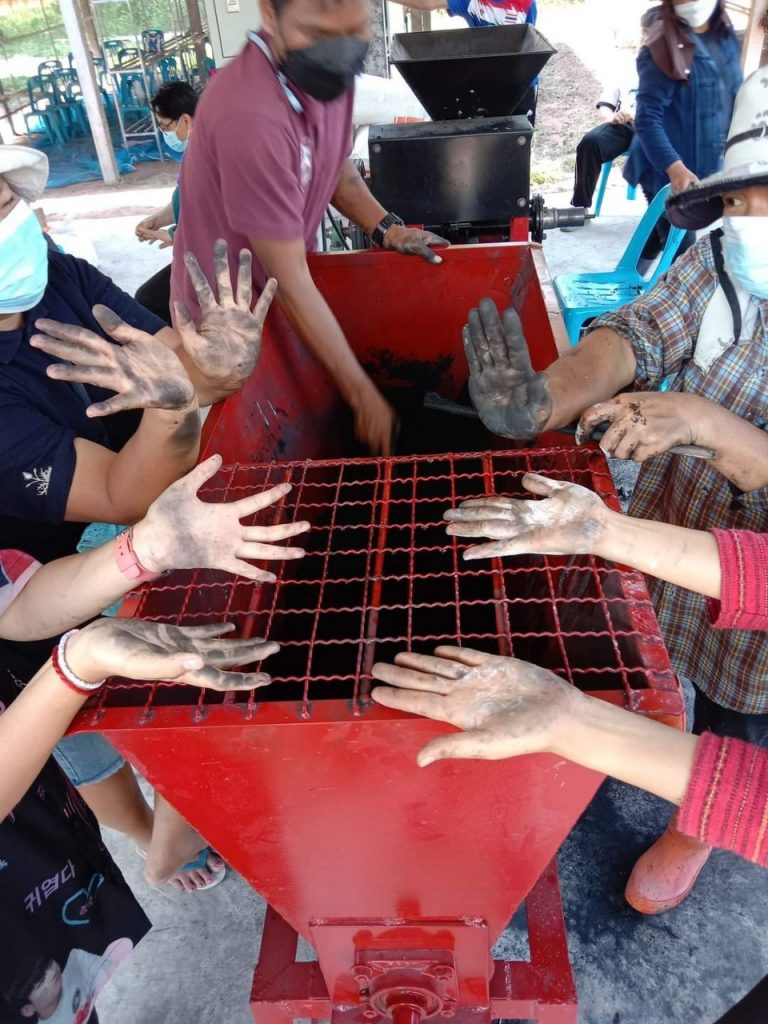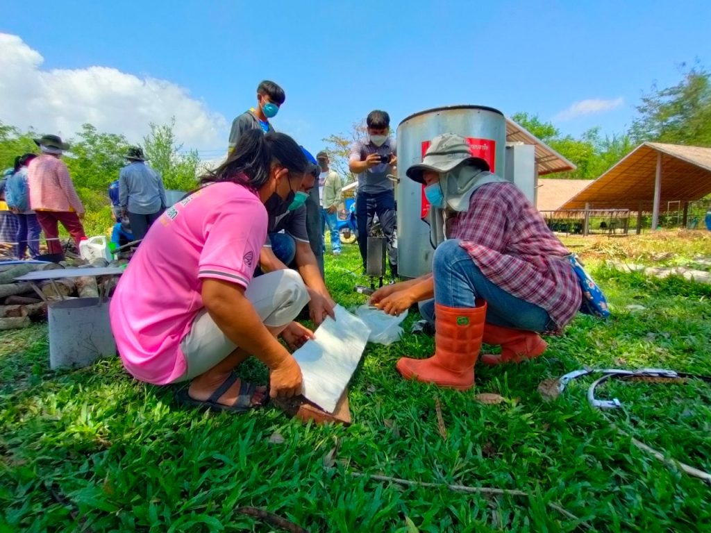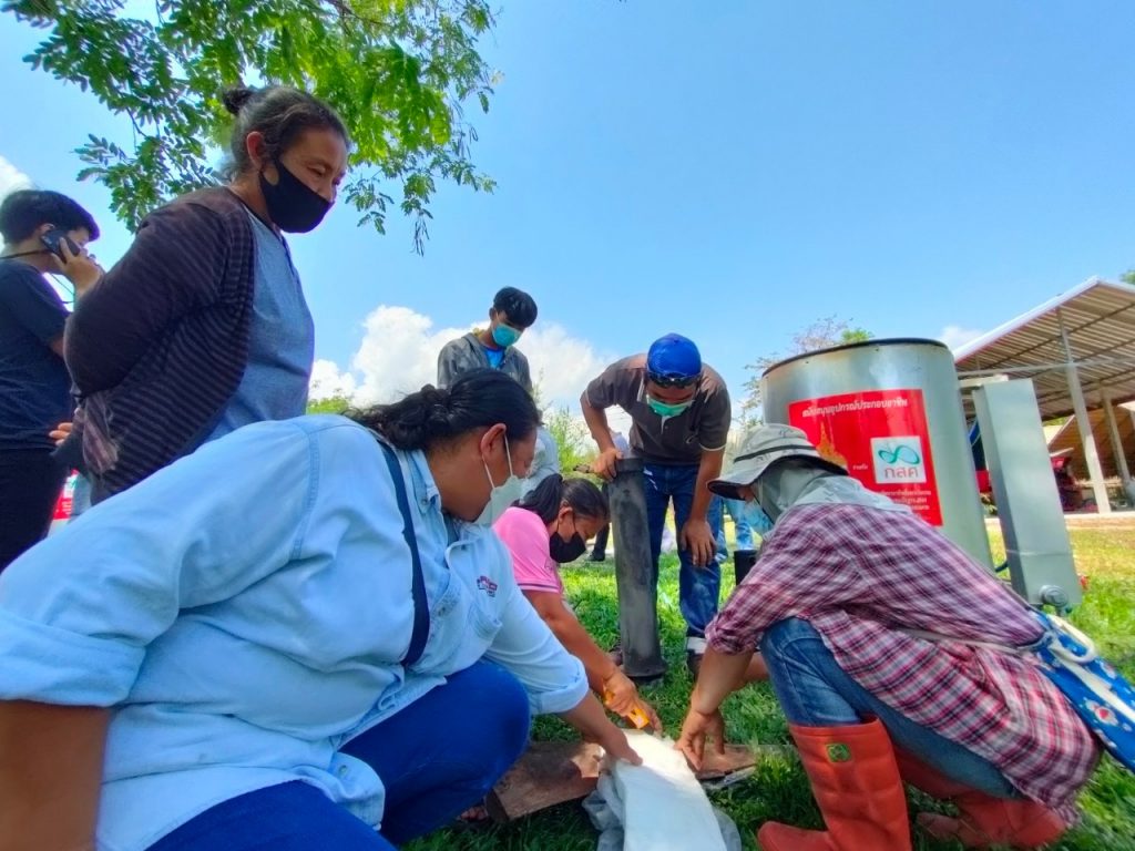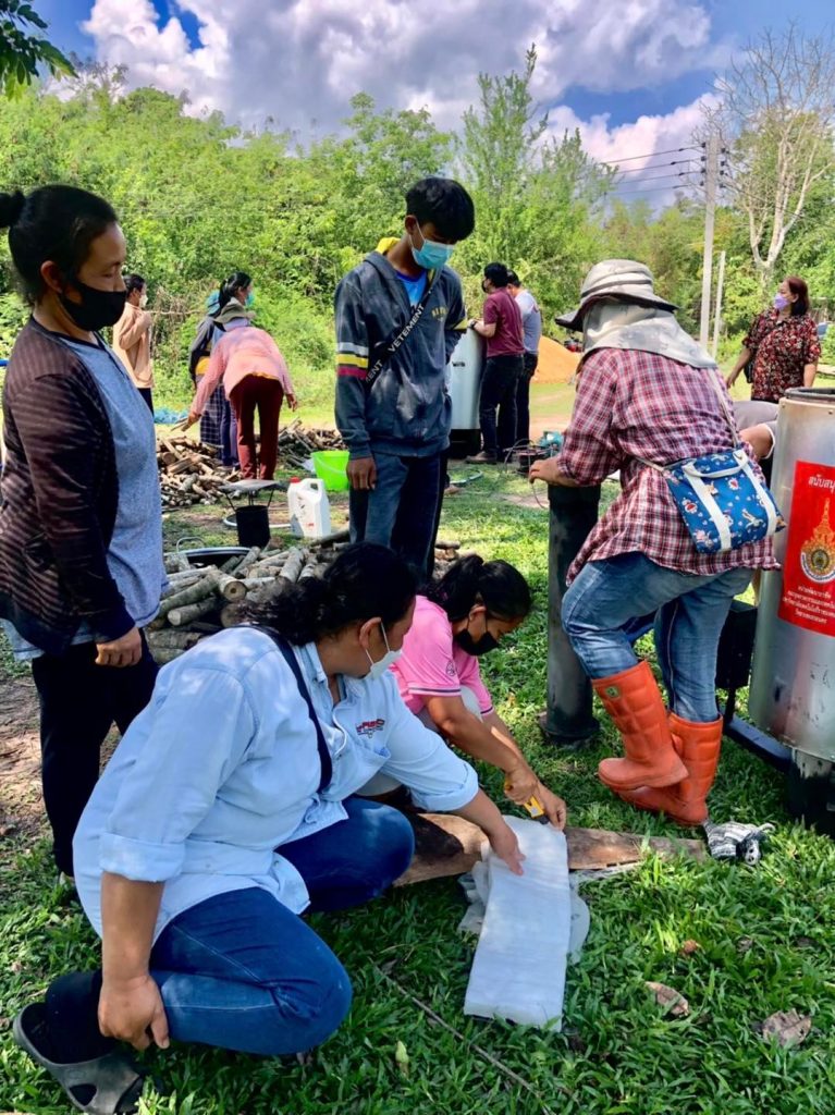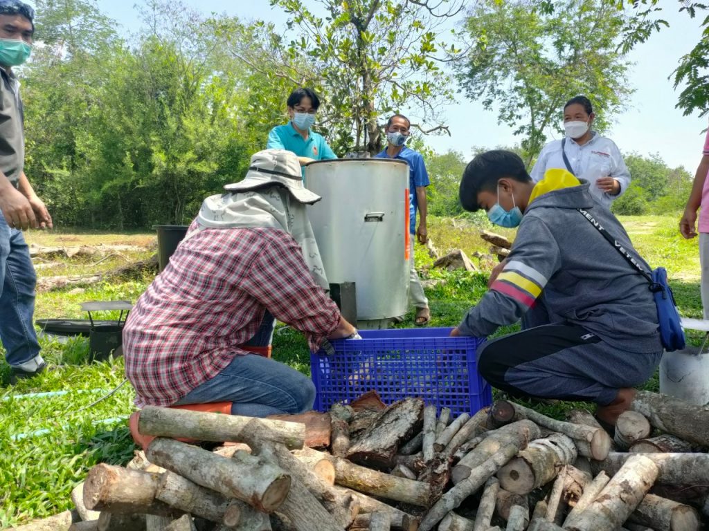วันที่ 26-29 มีนาคม 2565 คณะอุตสาหกรรมและเทคโนโลยี มทร.อีสาน วิทยาเขตสกลนคร จัดกิจกรรมอบรมทักษะอาชีพผลิตถ่านอัดแท่งไร้ควัน ภายใต้โครงการทุนพัฒนาอาชีพและนวัตกรรมที่ใช้ชุมชนเป็นฐาน ปี 2564 กองทุนเพื่อความเสมอภาคทางการศึกษา (กสศ.) ณ กลุ่มวิสาหกิจชุมชนธรณินทร์อินทรีย์ อ.กุดบาก จ.สกลนคร โดยมีวัตถุประสงค์เพื่อส่งเสริม สนับสนุนและให้ความช่วยเหลือ พัฒนาทักษะอาชีพชุมชนให้สามารถเผาถ่านไร้ควันและถ่านอัดแท่งได้ตามมารตรฐานถ่านอัดแท่งชุมชน พร้อมทั้งพัฒนารูปแบบหีบห่อบรรจุภัณฑ์ และสามารถใช้รูปแบบการจำหน่ายออนไลน์ได้ โดยหัวข้อการฝึกอบรมประกอบด้วย ทักษะปฏิบัติการเผาถ่านไร้ควัน ทักษะปฏิบัติการออกแบบโลโก้ และบรรจุภัณฑ์ ทักษะปฏิบัติการขายออนไลน์การตลาดและบริหารจัดการ