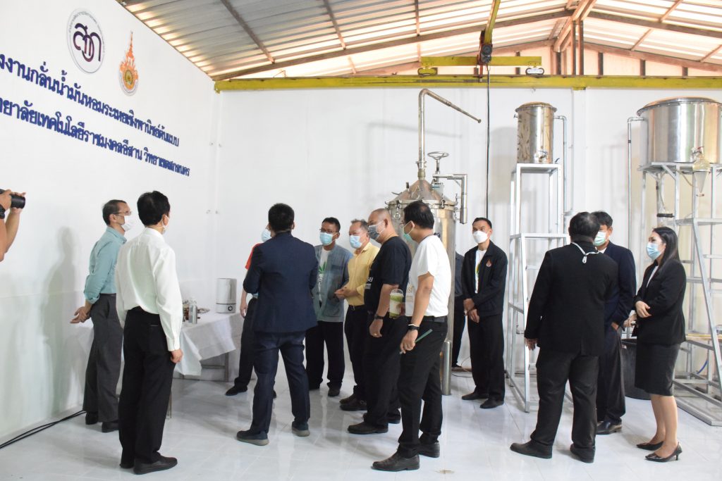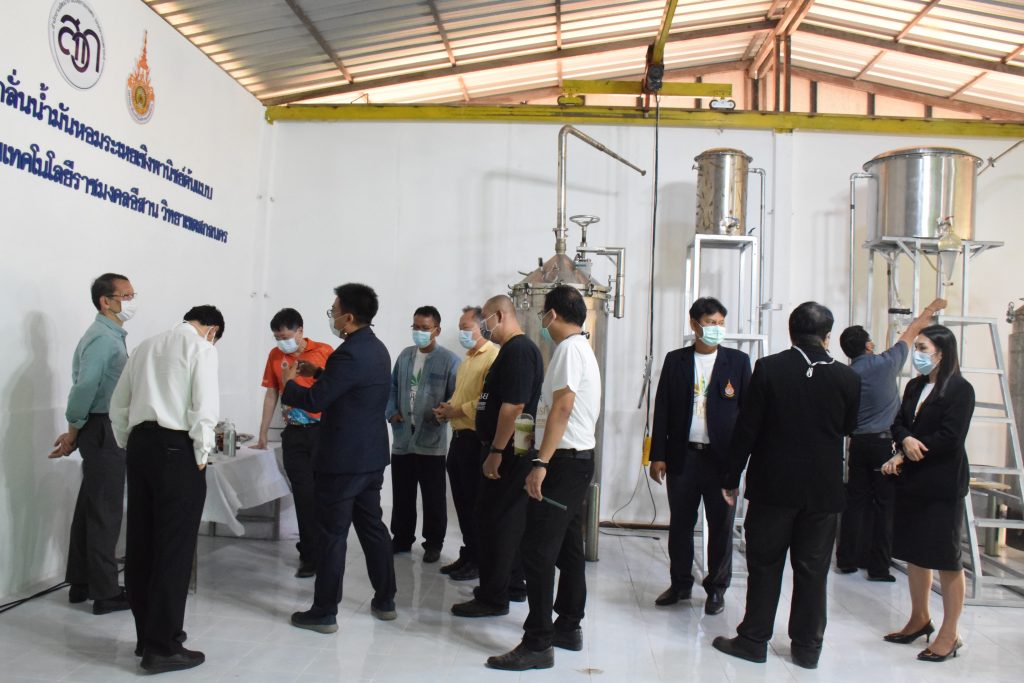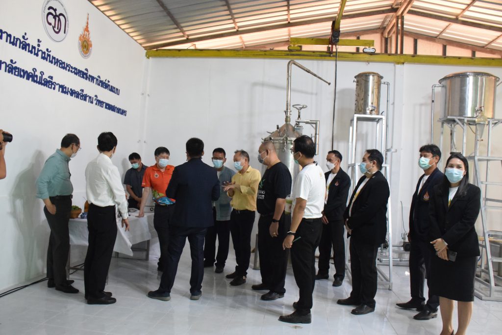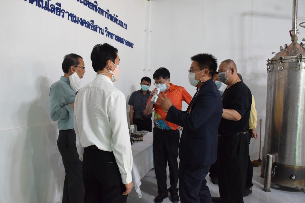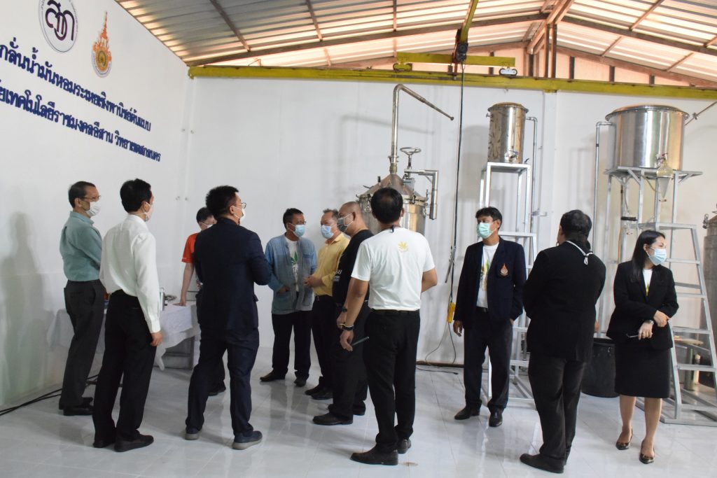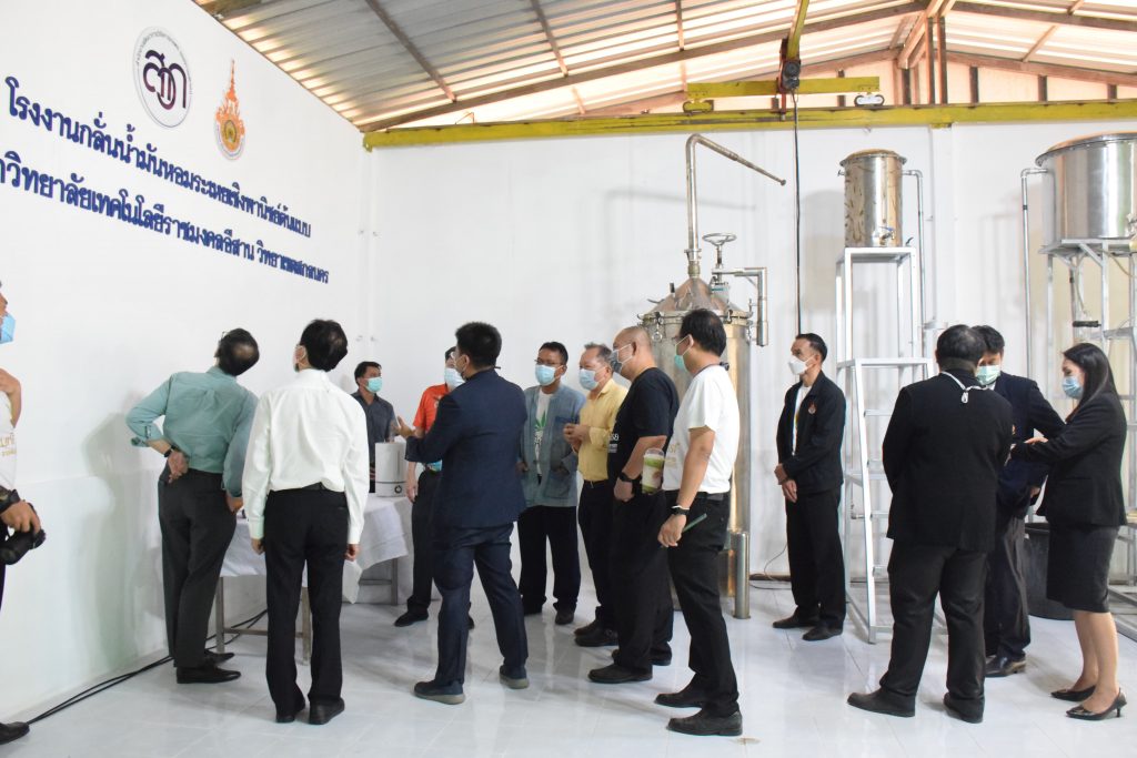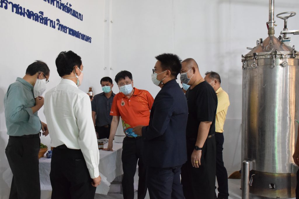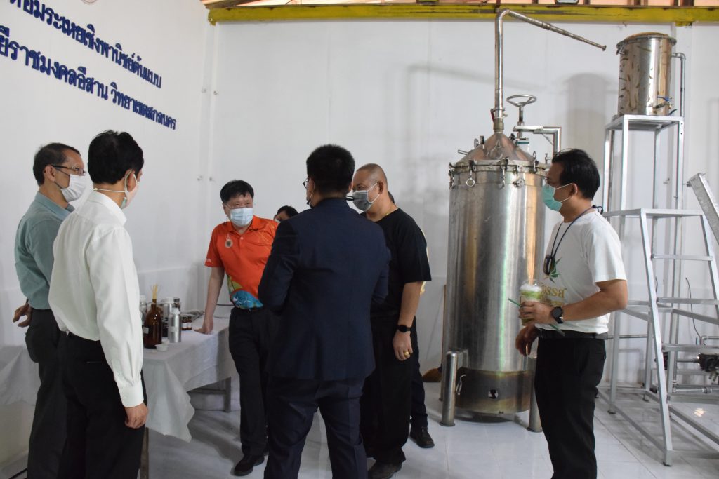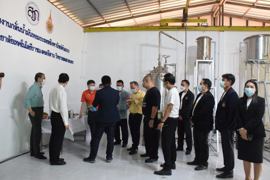 วันที่ 11 เมษายน 2565 คณะอุตสาหกรรมและเทคโนโลยี มทร.อีสาน วิทยาเขตสกลนคร นำโดย ผศ.น.สพ.ดร.ชเวง สารคล่อง รองอธิการบดีประจำวิทยาเขตสกลนคร พร้อมด้วย คณะผู้บริหาร บุคลากร คณะอุตสาหกรรมและเทคโนโลยี ร่วมต้อนรับ นายแพทย์ธีระเกียรติ เจริญเศรษฐศิลป์ นายกสภามทร.อีสาน พร้อมด้วยที่ปรึกษาสภามหาวิทยาลัย รศ.ดร.โฆษิต ศรีภูธร อธิการบดี และคณะผู้บริหาร มทร.อีสาน ในโอกาสเข้าเยี่ยมชมพื้นที่และดูงานโรงงานกลั่นน้ำมันหอมระเหยเชิงพานิชย์ต้นแบบ ณ โรงกลั่นน้ำมันหอมระเหยเชิงพานิชย์ต้นแบบ อาคารสำนักงานคณะบดีคณะอุตสาหกรรมและเทคโนโลยี ในการนี้ ผศ.ดร.สุริยา แก้วอาษา คณบดีคณะอุตสาหกรรมและเทคโนโลยี ร่วมต้อนรับพร้อมทั้งมอบของที่ระลึกในครั้งนี้ด้วย