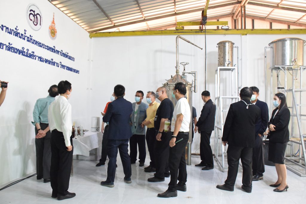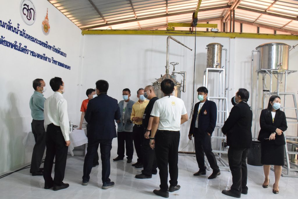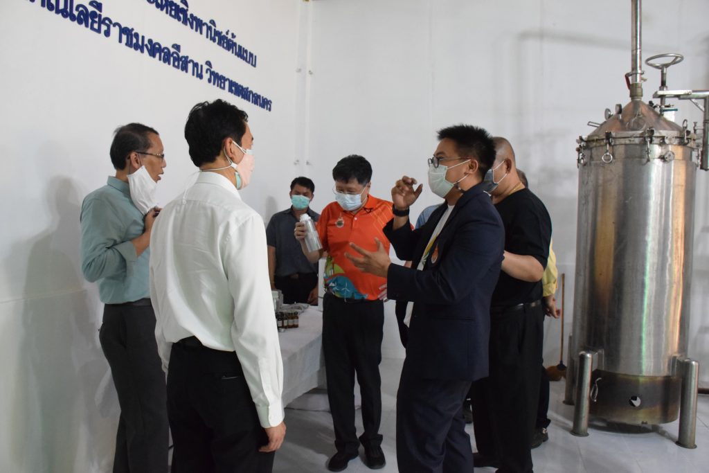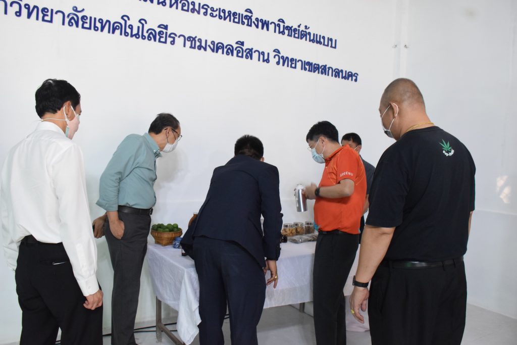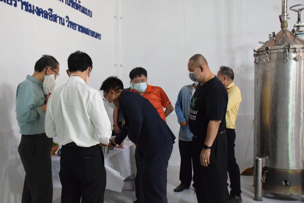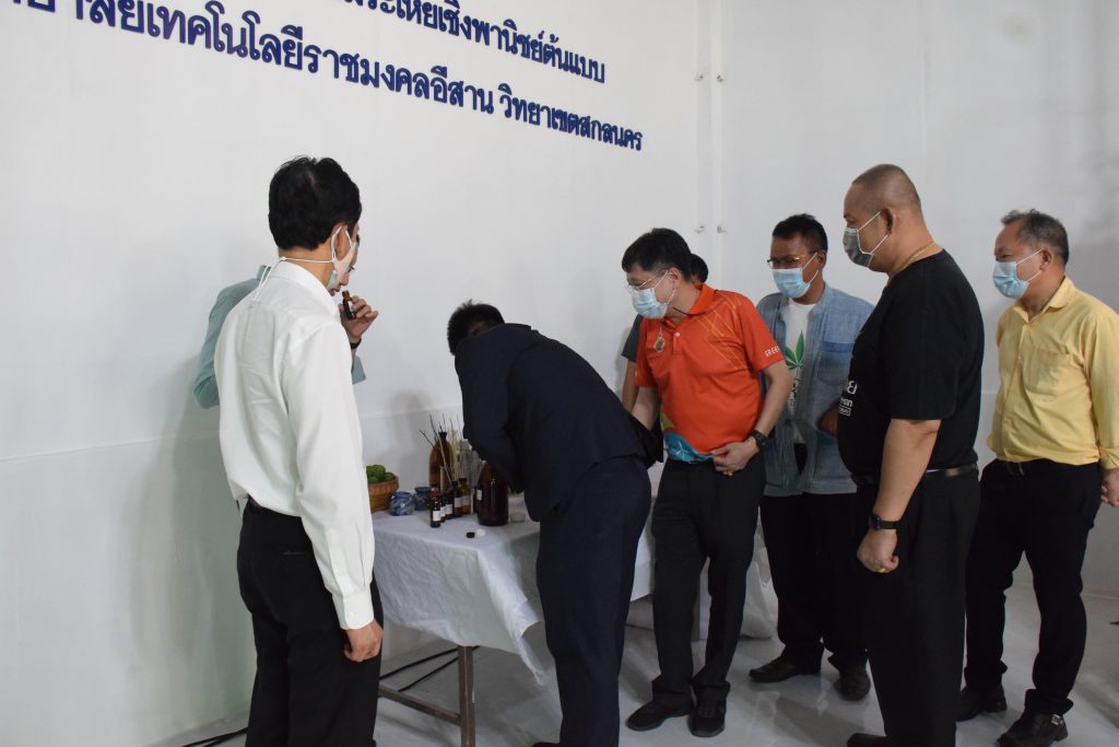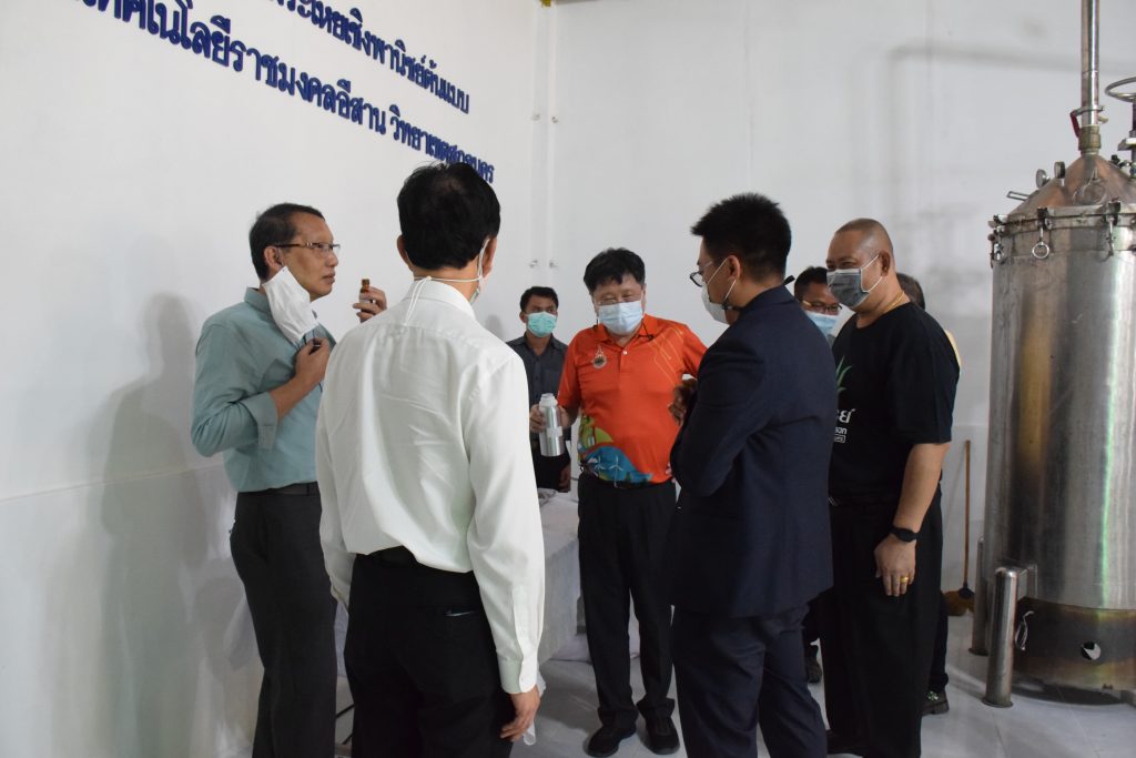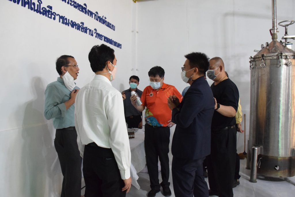 วันที่ 11 เมษายน 2565 คณะอุตสาหกรรมและเทคโนโลยี มทร.อีสาน วิทยาเขตสกลนคร นำโดย ผศ.น.สพ.ดร.ชเวง สารคล่อง รองอธิการบดีประจำวิทยาเขตสกลนคร พร้อมด้วย คณะผู้บริหาร บุคลากร คณะอุตสาหกรรมและเทคโนโลยี ร่วมต้อนรับ นายแพทย์ธีระเกียรติ เจริญเศรษฐศิลป์ นายกสภามทร.อีสาน พร้อมด้วยที่ปรึกษาสภามหาวิทยาลัย รศ.ดร.โฆษิต ศรีภูธร อธิการบดี และคณะผู้บริหาร มทร.อีสาน ในโอกาสเข้าเยี่ยมชมพื้นที่และดูงานโรงงานกลั่นน้ำมันหอมระเหยเชิงพานิชย์ต้นแบบ ณ โรงกลั่นน้ำมันหอมระเหยเชิงพานิชย์ต้นแบบ อาคารสำนักงานคณะบดีคณะอุตสาหกรรมและเทคโนโลยี ในการนี้ ผศ.ดร.สุริยา แก้วอาษา คณบดีคณะอุตสาหกรรมและเทคโนโลยี ร่วมต้อนรับพร้อมทั้งมอบของที่ระลึกในครั้งนี้ด้วย
