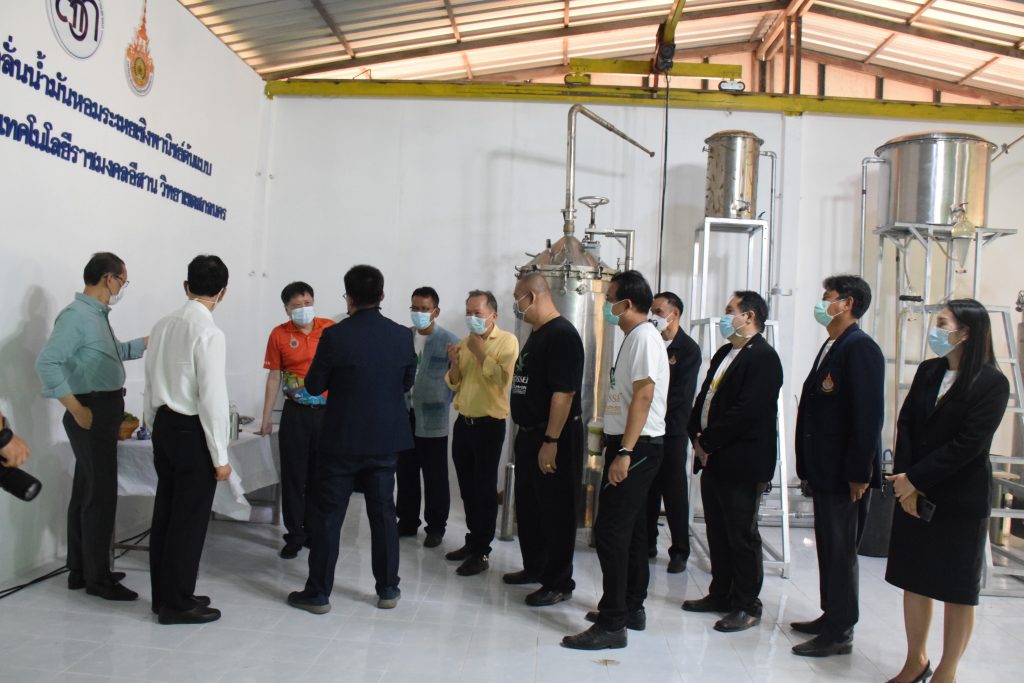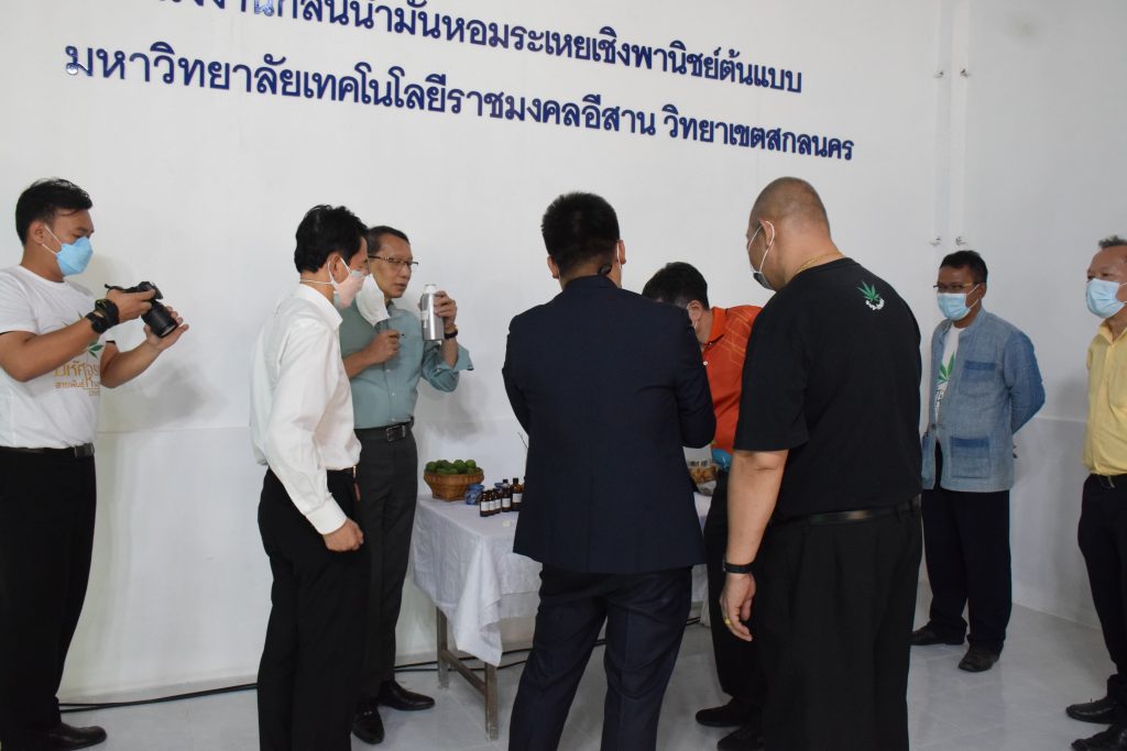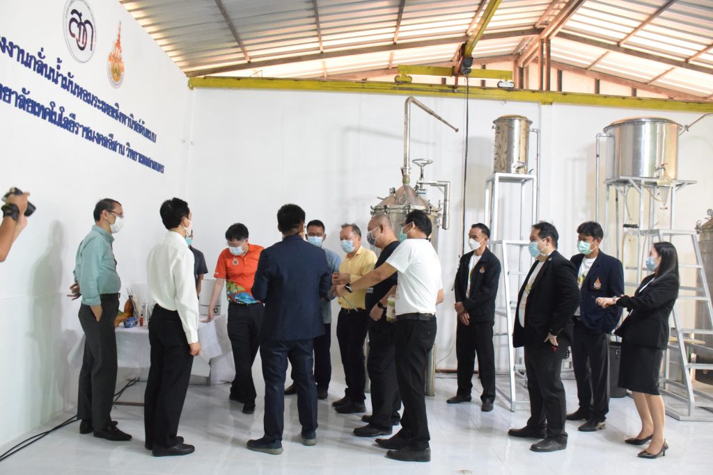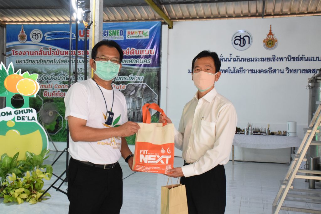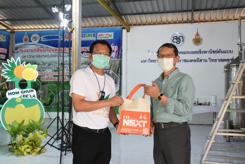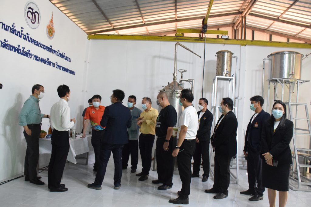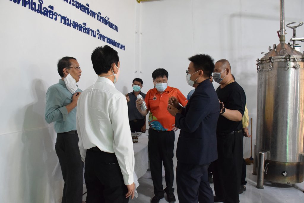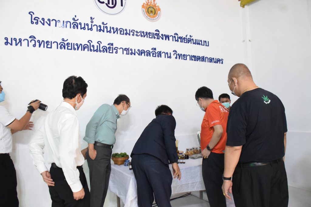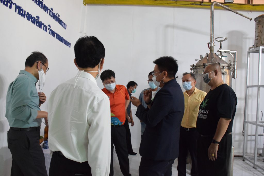 วันที่ 11 เมษายน 2565 คณะอุตสาหกรรมและเทคโนโลยี มทร.อีสาน วิทยาเขตสกลนคร นำโดย ผศ.น.สพ.ดร.ชเวง สารคล่อง รองอธิการบดีประจำวิทยาเขตสกลนคร พร้อมด้วย คณะผู้บริหาร บุคลากร คณะอุตสาหกรรมและเทคโนโลยี ร่วมต้อนรับ นายแพทย์ธีระเกียรติ เจริญเศรษฐศิลป์ นายกสภามทร.อีสาน พร้อมด้วยที่ปรึกษาสภามหาวิทยาลัย รศ.ดร.โฆษิต ศรีภูธร อธิการบดี และคณะผู้บริหาร มทร.อีสาน ในโอกาสเข้าเยี่ยมชมพื้นที่และดูงานโรงงานกลั่นน้ำมันหอมระเหยเชิงพานิชย์ต้นแบบ ณ โรงกลั่นน้ำมันหอมระเหยเชิงพานิชย์ต้นแบบ อาคารสำนักงานคณะบดีคณะอุตสาหกรรมและเทคโนโลยี ในการนี้ ผศ.ดร.สุริยา แก้วอาษา คณบดีคณะอุตสาหกรรมและเทคโนโลยี ร่วมต้อนรับพร้อมทั้งมอบของที่ระลึกในครั้งนี้ด้วย