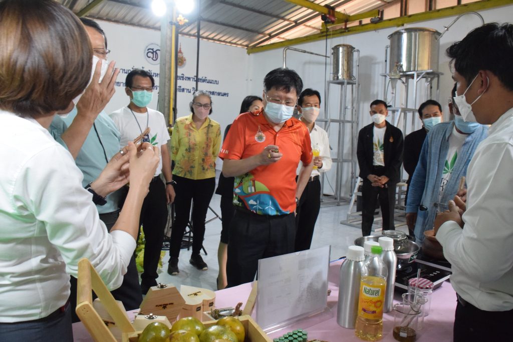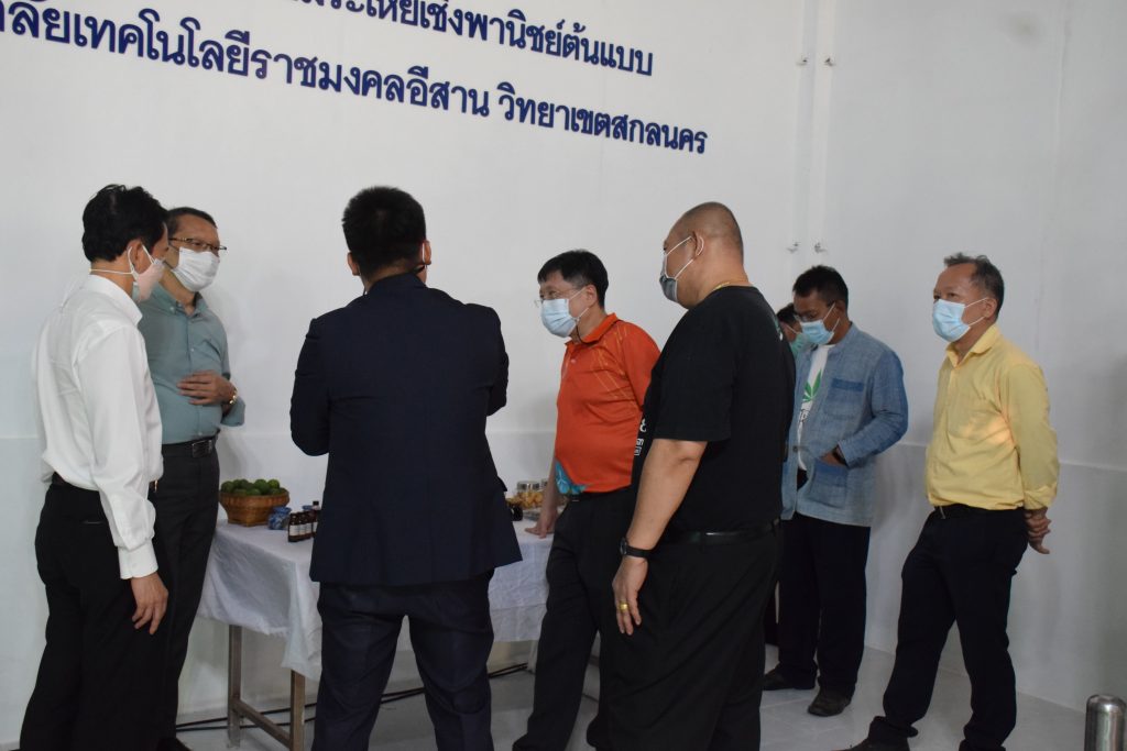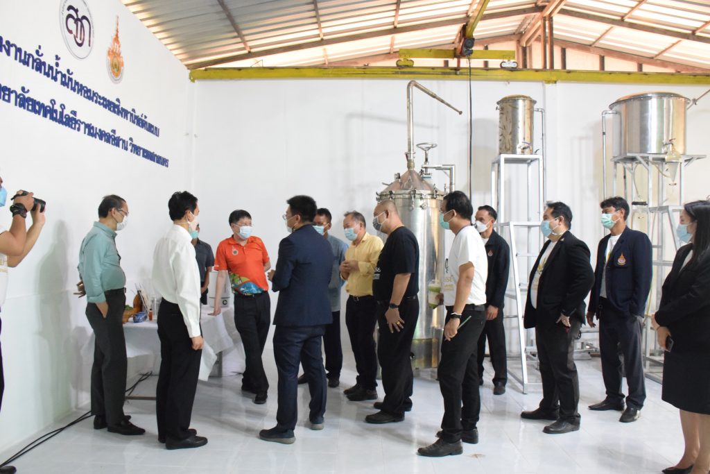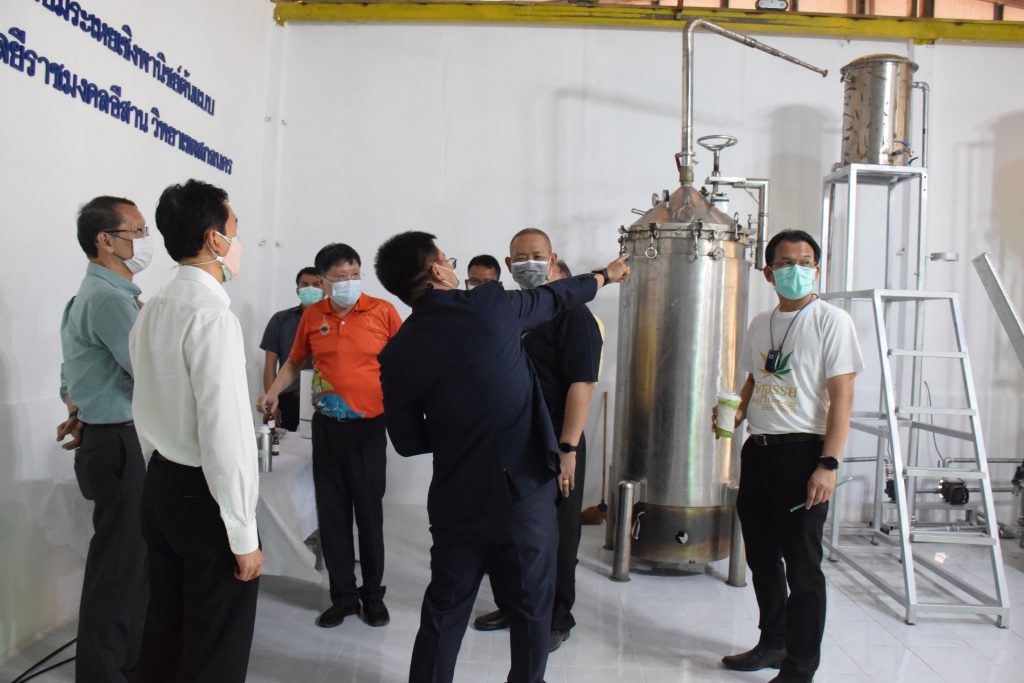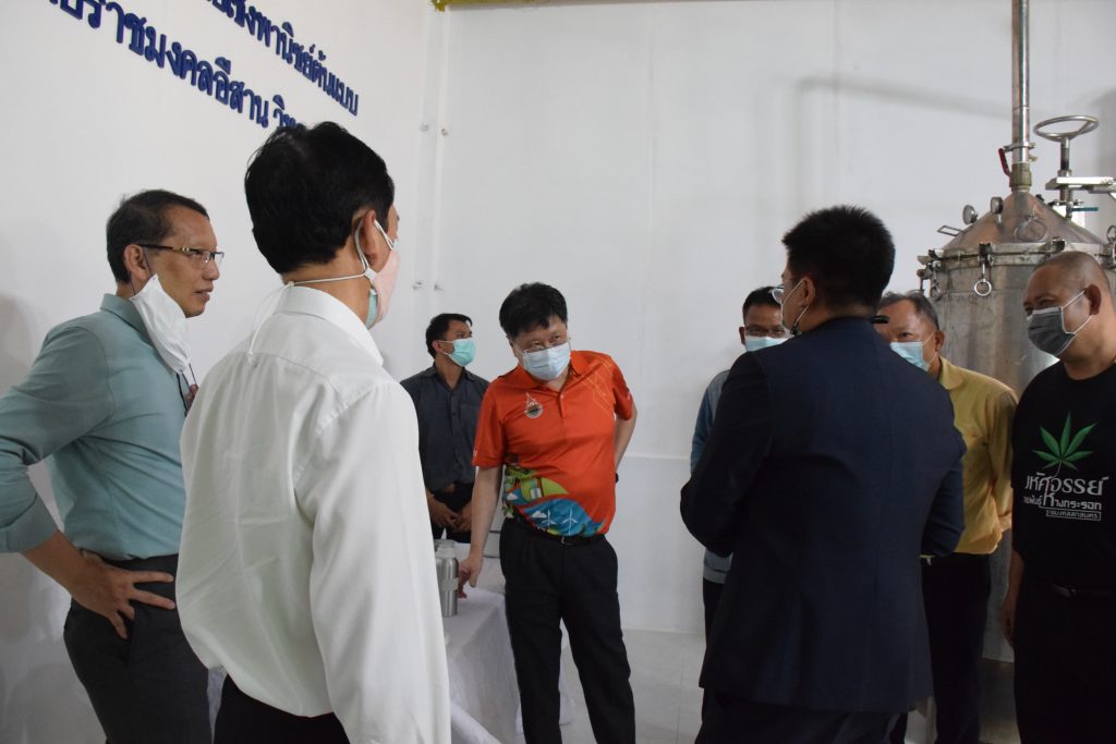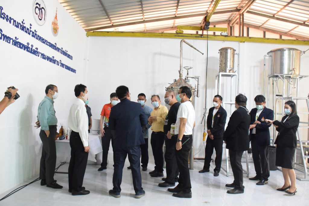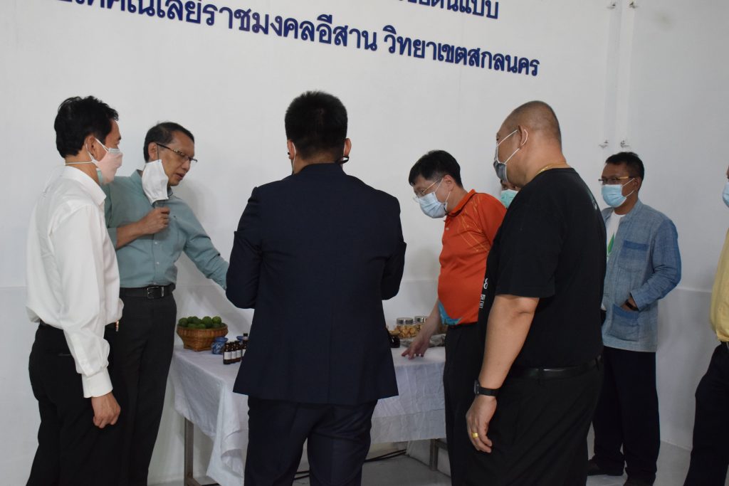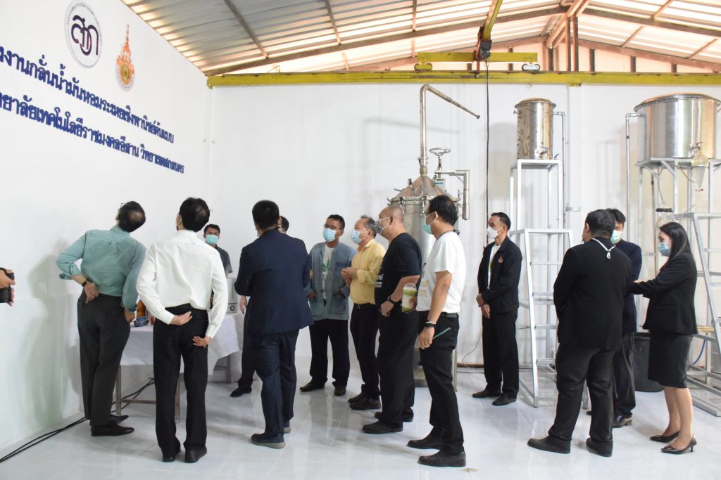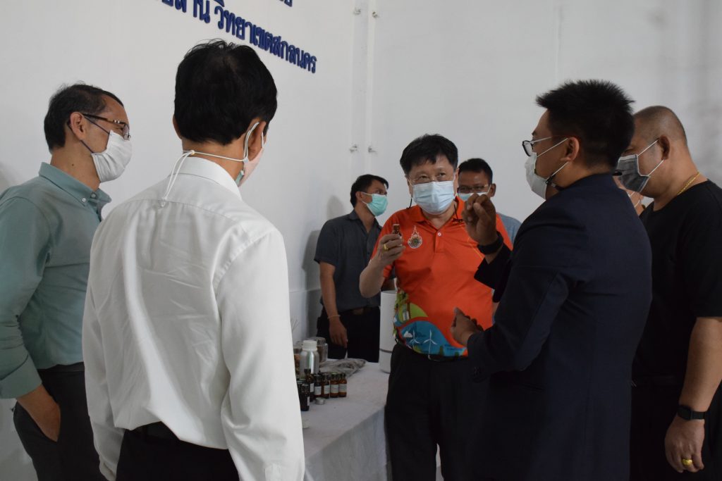วันที่ 11 เมษายน 2565 คณะอุตสาหกรรมและเทคโนโลยี มทร.อีสาน วิทยาเขตสกลนคร นำโดย ผศ.น.สพ.ดร.ชเวง สารคล่อง รองอธิการบดีประจำวิทยาเขตสกลนคร พร้อมด้วย คณะผู้บริหาร บุคลากร คณะอุตสาหกรรมและเทคโนโลยี ร่วมต้อนรับ นายแพทย์ธีระเกียรติ เจริญเศรษฐศิลป์ นายกสภามทร.อีสาน พร้อมด้วยที่ปรึกษาสภามหาวิทยาลัย รศ.ดร.โฆษิต ศรีภูธร อธิการบดี และคณะผู้บริหาร มทร.อีสาน ในโอกาสเข้าเยี่ยมชมพื้นที่และดูงานโรงงานกลั่นน้ำมันหอมระเหยเชิงพานิชย์ต้นแบบ ณ โรงกลั่นน้ำมันหอมระเหยเชิงพานิชย์ต้นแบบ อาคารสำนักงานคณะบดีคณะอุตสาหกรรมและเทคโนโลยี ในการนี้ ผศ.ดร.สุริยา แก้วอาษา คณบดีคณะอุตสาหกรรมและเทคโนโลยี ร่วมต้อนรับพร้อมทั้งมอบของที่ระลึกในครั้งนี้ด้วย