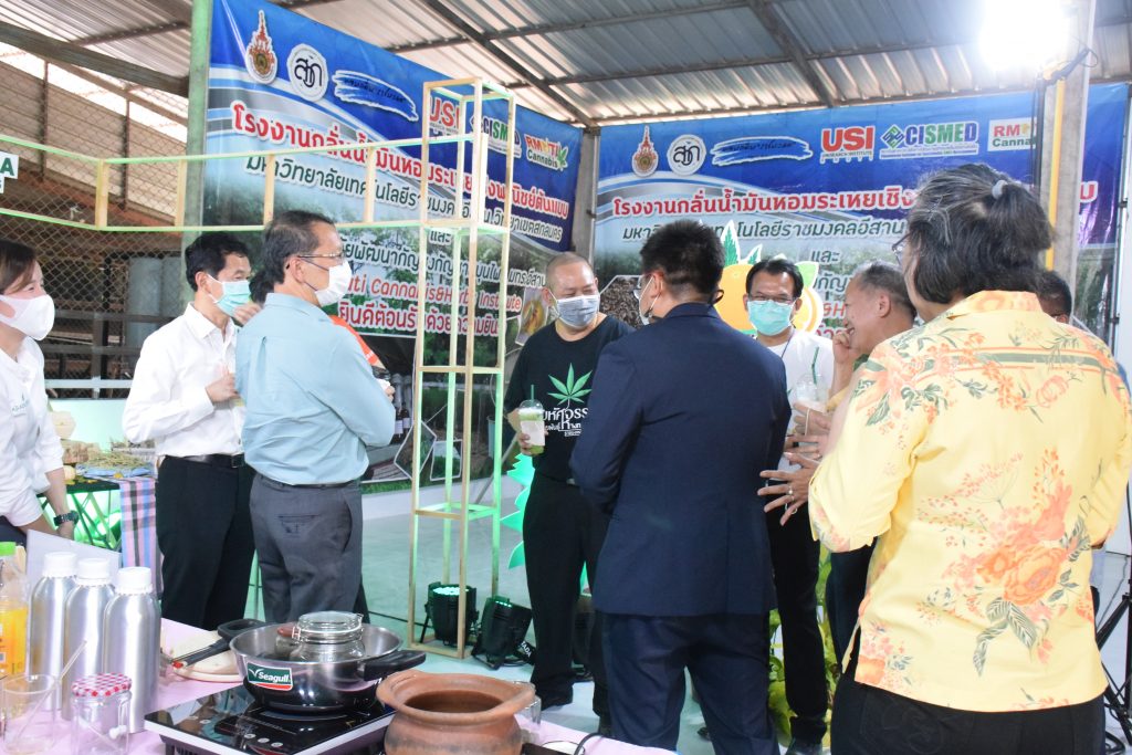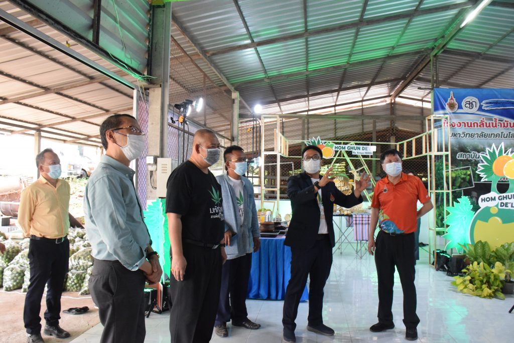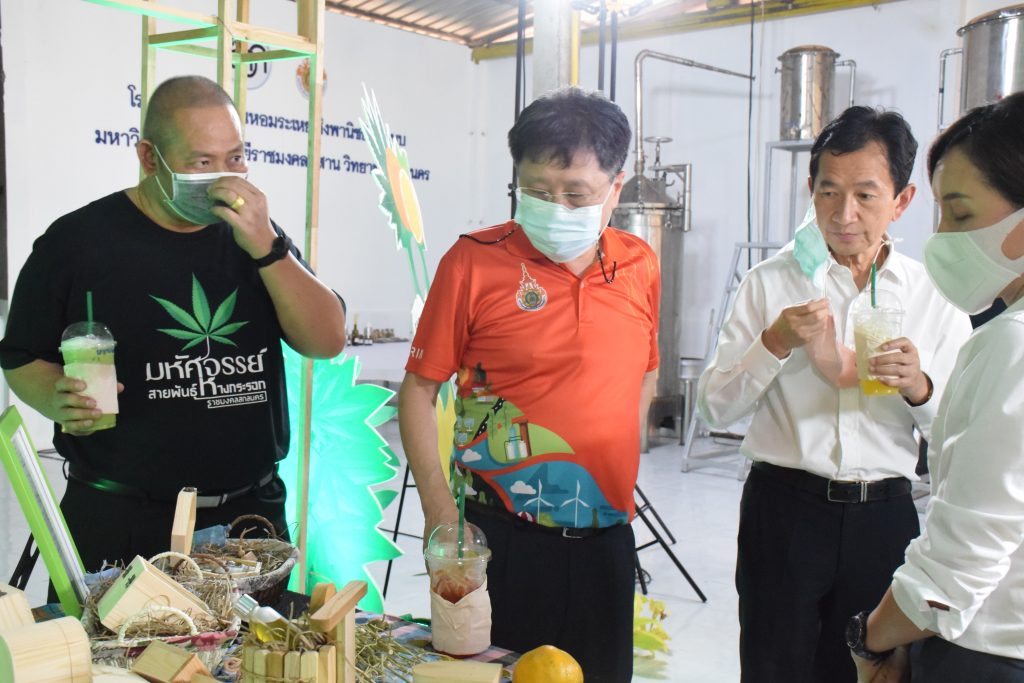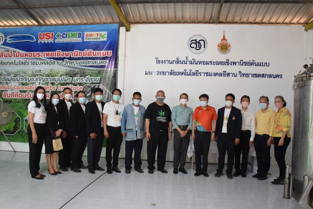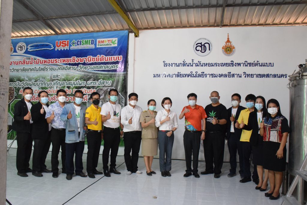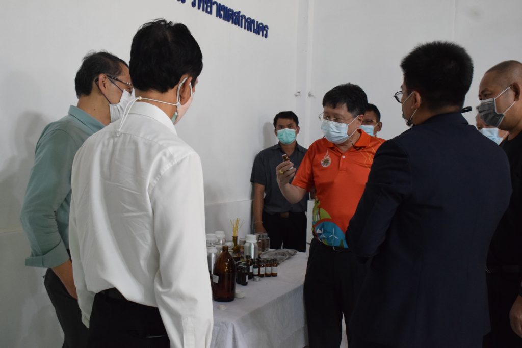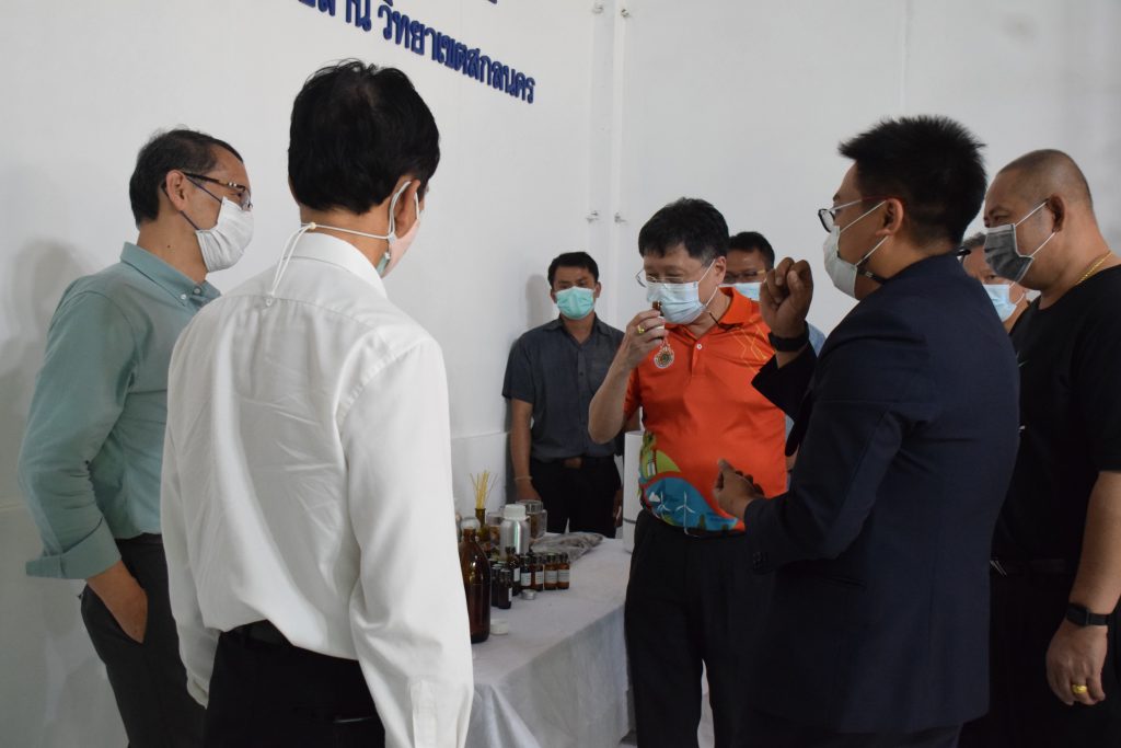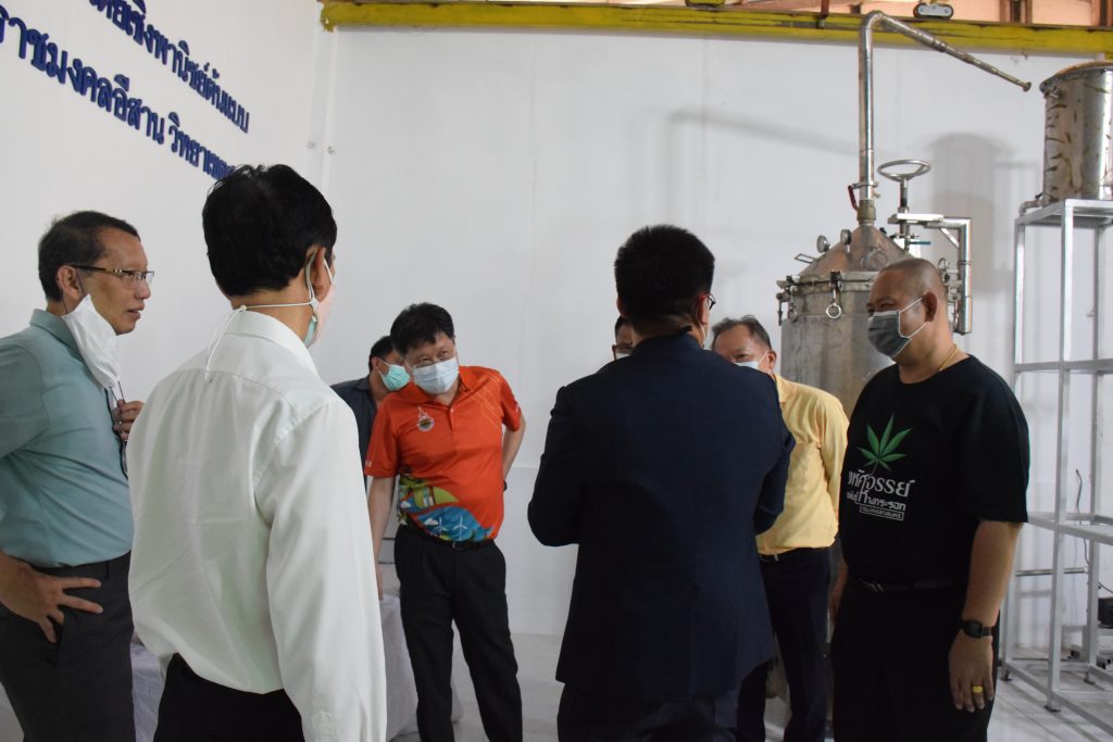 วันที่ 11 เมษายน 2565 คณะอุตสาหกรรมและเทคโนโลยี มทร.อีสาน วิทยาเขตสกลนคร นำโดย ผศ.น.สพ.ดร.ชเวง สารคล่อง รองอธิการบดีประจำวิทยาเขตสกลนคร พร้อมด้วย คณะผู้บริหาร บุคลากร คณะอุตสาหกรรมและเทคโนโลยี ร่วมต้อนรับ นายแพทย์ธีระเกียรติ เจริญเศรษฐศิลป์ นายกสภามทร.อีสาน พร้อมด้วยที่ปรึกษาสภามหาวิทยาลัย รศ.ดร.โฆษิต ศรีภูธร อธิการบดี และคณะผู้บริหาร มทร.อีสาน ในโอกาสเข้าเยี่ยมชมพื้นที่และดูงานโรงงานกลั่นน้ำมันหอมระเหยเชิงพานิชย์ต้นแบบ ณ โรงกลั่นน้ำมันหอมระเหยเชิงพานิชย์ต้นแบบ อาคารสำนักงานคณะบดีคณะอุตสาหกรรมและเทคโนโลยี ในการนี้ ผศ.ดร.สุริยา แก้วอาษา คณบดีคณะอุตสาหกรรมและเทคโนโลยี ร่วมต้อนรับพร้อมทั้งมอบของที่ระลึกในครั้งนี้ด้วย