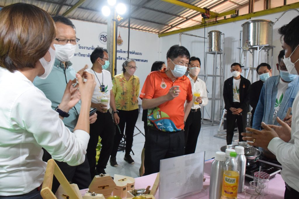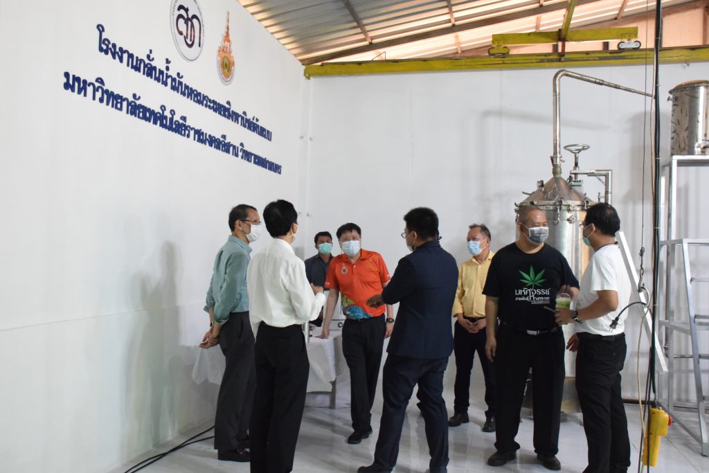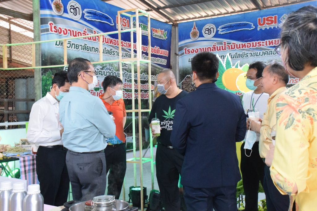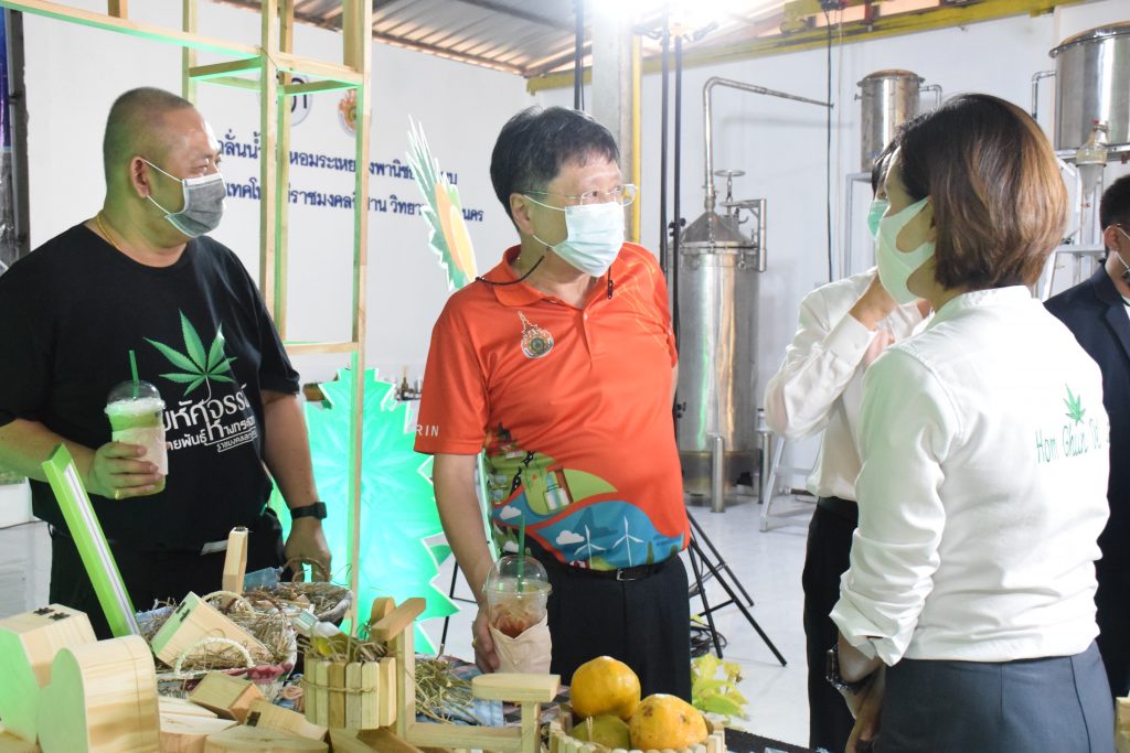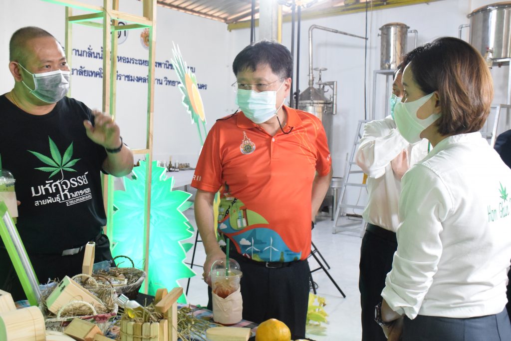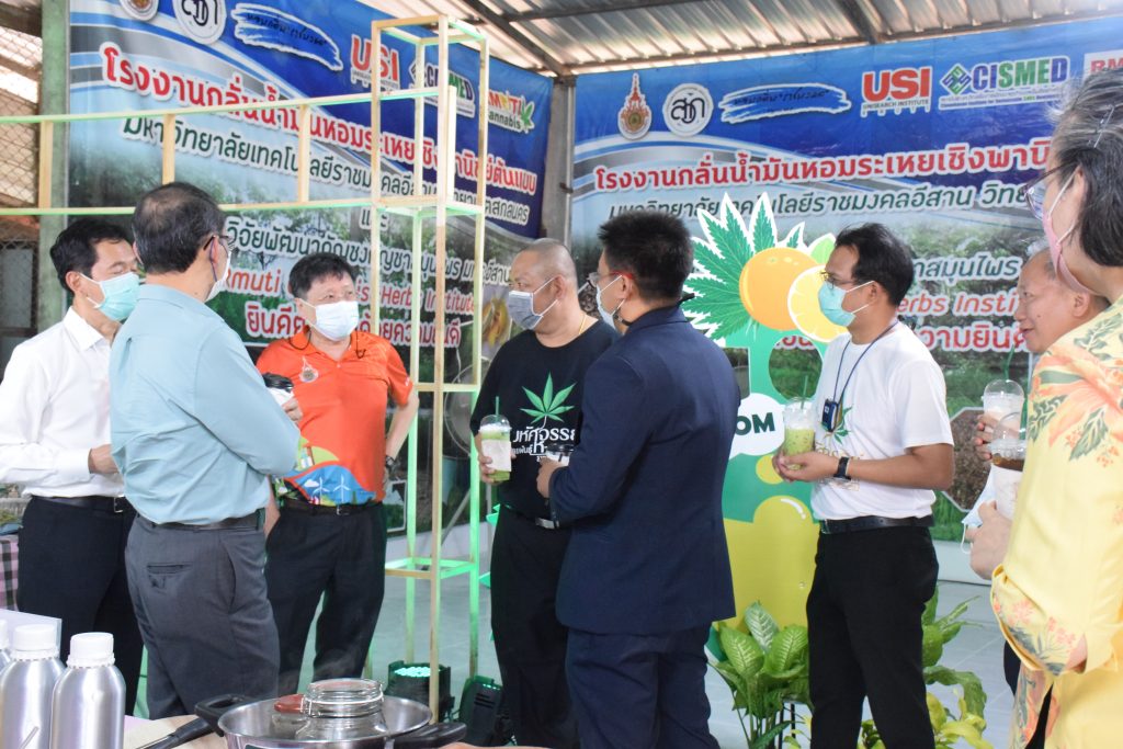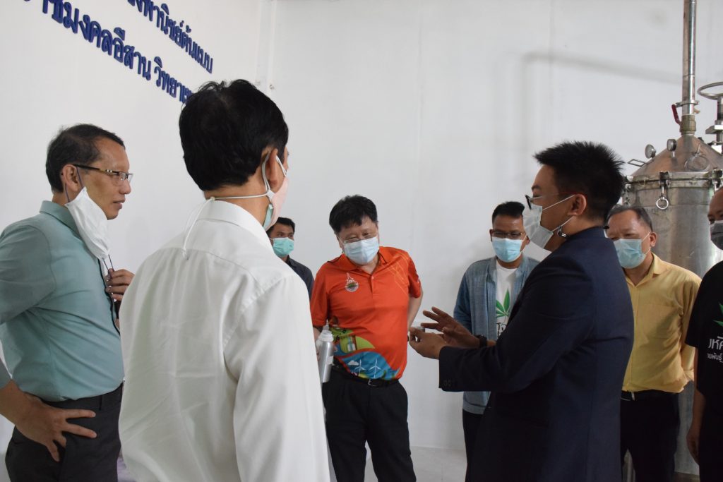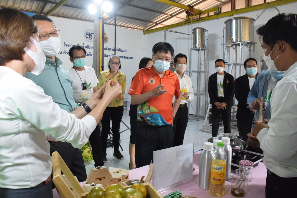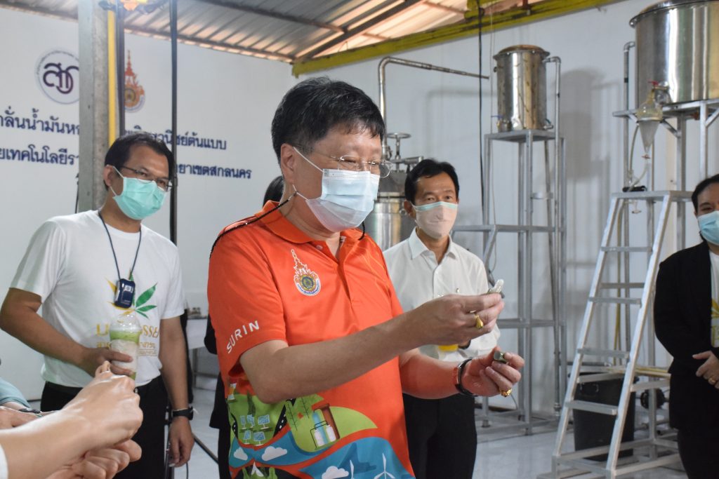 วันที่ 11 เมษายน 2565 คณะอุตสาหกรรมและเทคโนโลยี มทร.อีสาน วิทยาเขตสกลนคร นำโดย ผศ.น.สพ.ดร.ชเวง สารคล่อง รองอธิการบดีประจำวิทยาเขตสกลนคร พร้อมด้วย คณะผู้บริหาร บุคลากร คณะอุตสาหกรรมและเทคโนโลยี ร่วมต้อนรับ นายแพทย์ธีระเกียรติ เจริญเศรษฐศิลป์ นายกสภามทร.อีสาน พร้อมด้วยที่ปรึกษาสภามหาวิทยาลัย รศ.ดร.โฆษิต ศรีภูธร อธิการบดี และคณะผู้บริหาร มทร.อีสาน ในโอกาสเข้าเยี่ยมชมพื้นที่และดูงานโรงงานกลั่นน้ำมันหอมระเหยเชิงพานิชย์ต้นแบบ ณ โรงกลั่นน้ำมันหอมระเหยเชิงพานิชย์ต้นแบบ อาคารสำนักงานคณะบดีคณะอุตสาหกรรมและเทคโนโลยี ในการนี้ ผศ.ดร.สุริยา แก้วอาษา คณบดีคณะอุตสาหกรรมและเทคโนโลยี ร่วมต้อนรับพร้อมทั้งมอบของที่ระลึกในครั้งนี้ด้วย