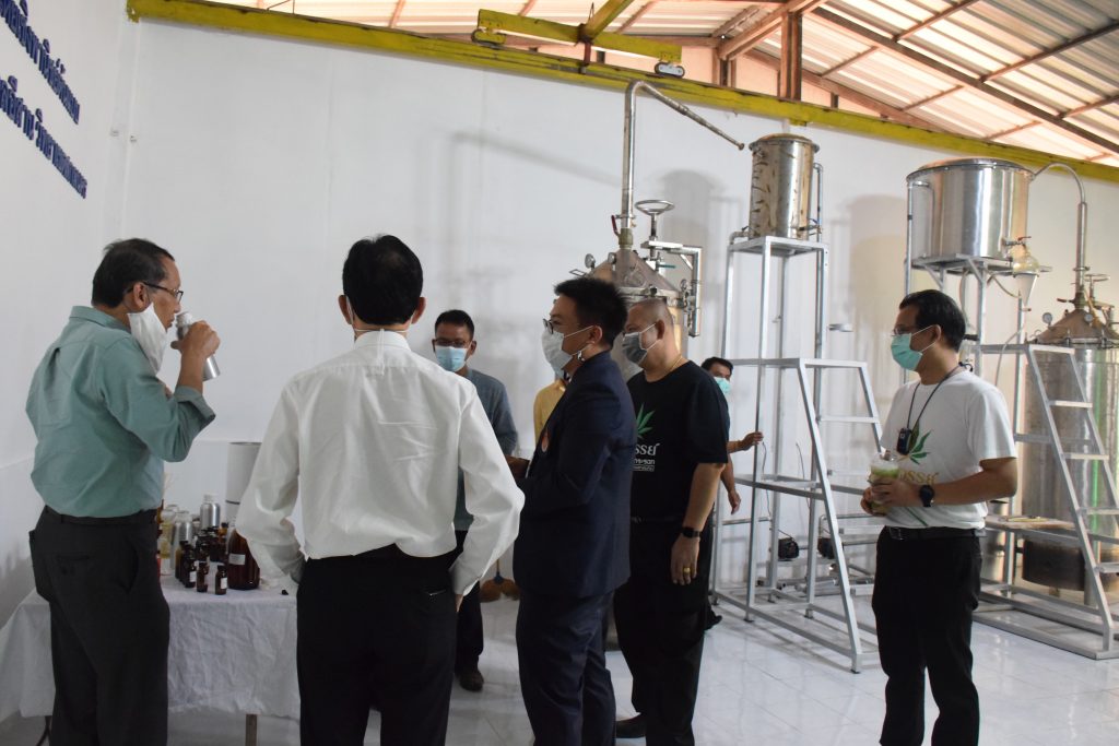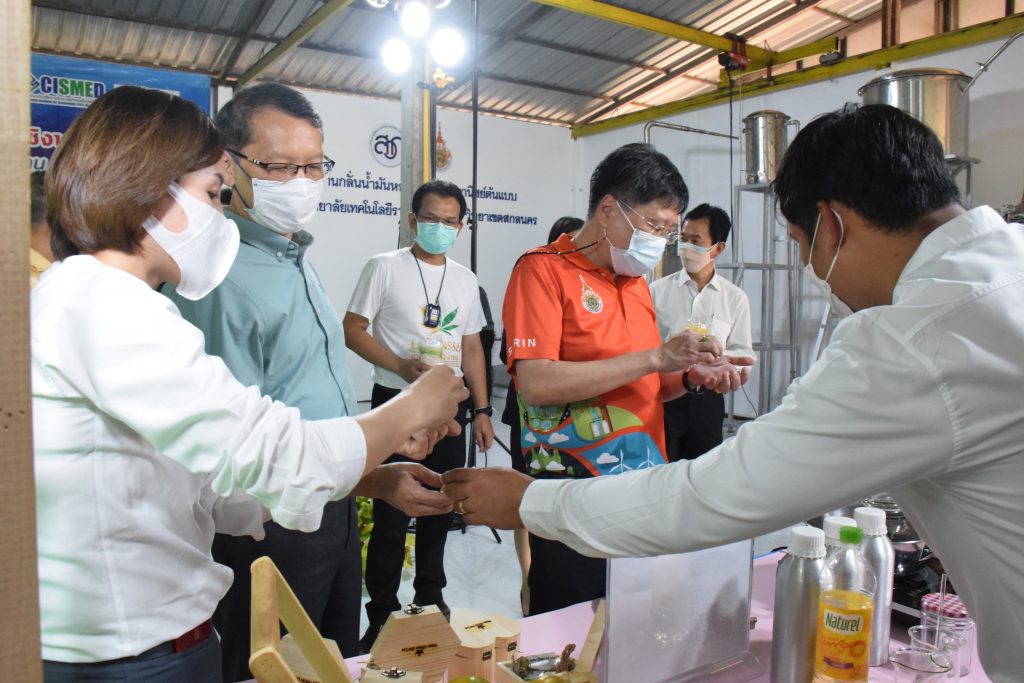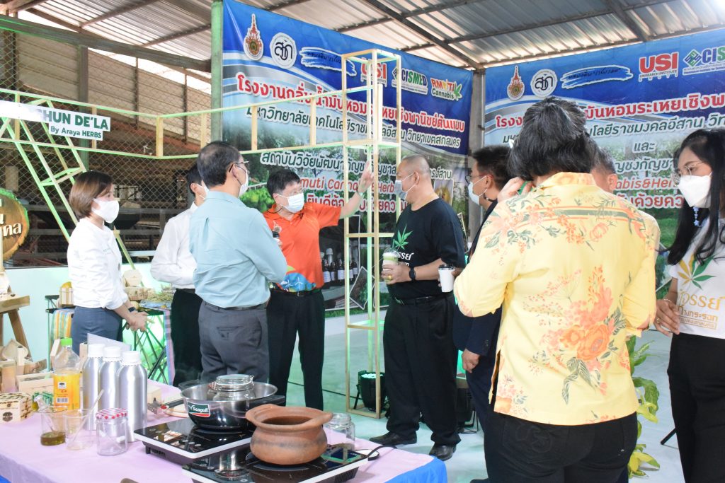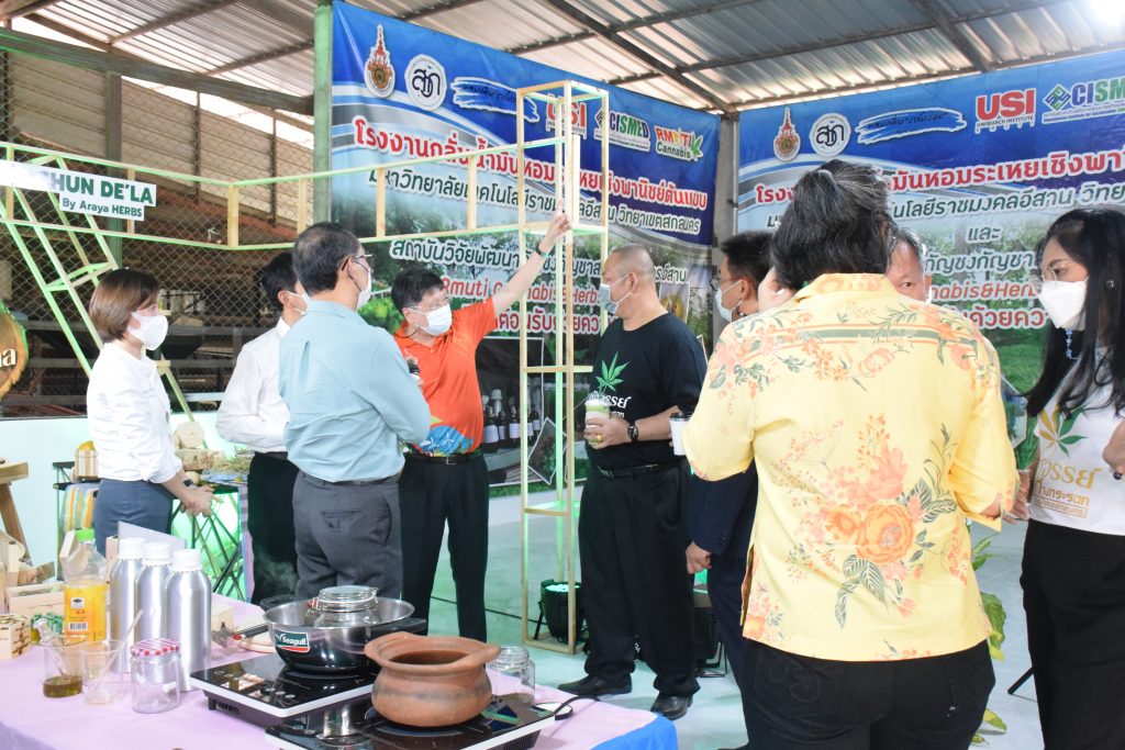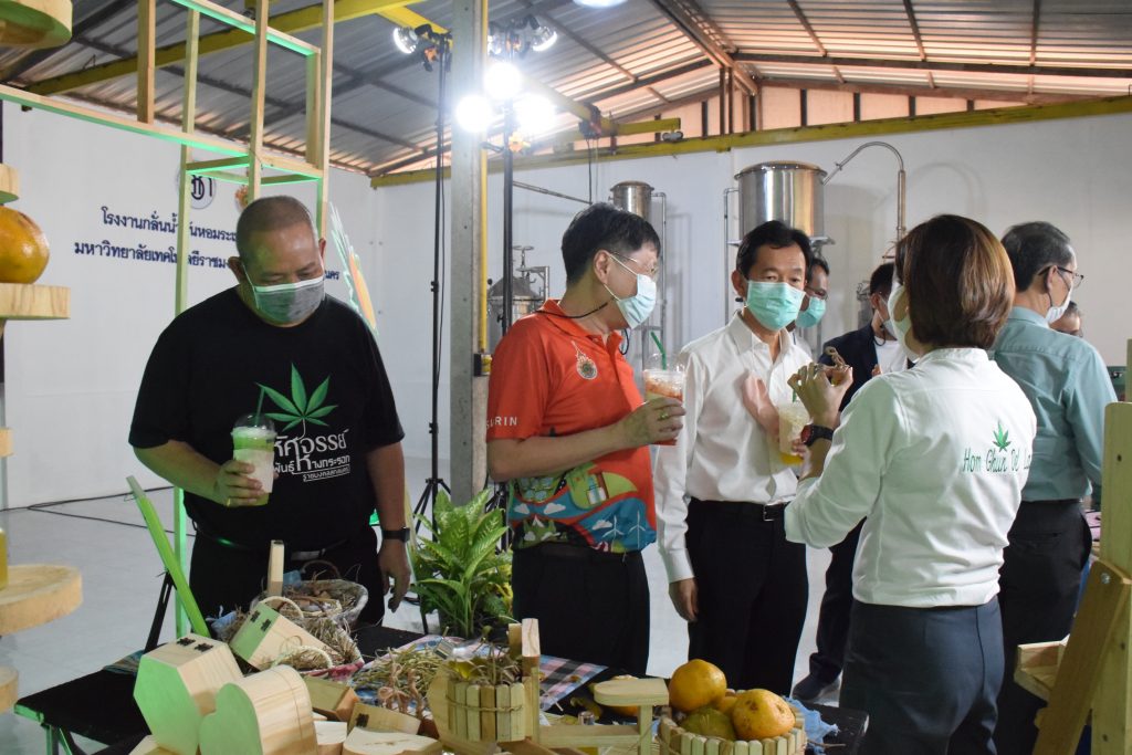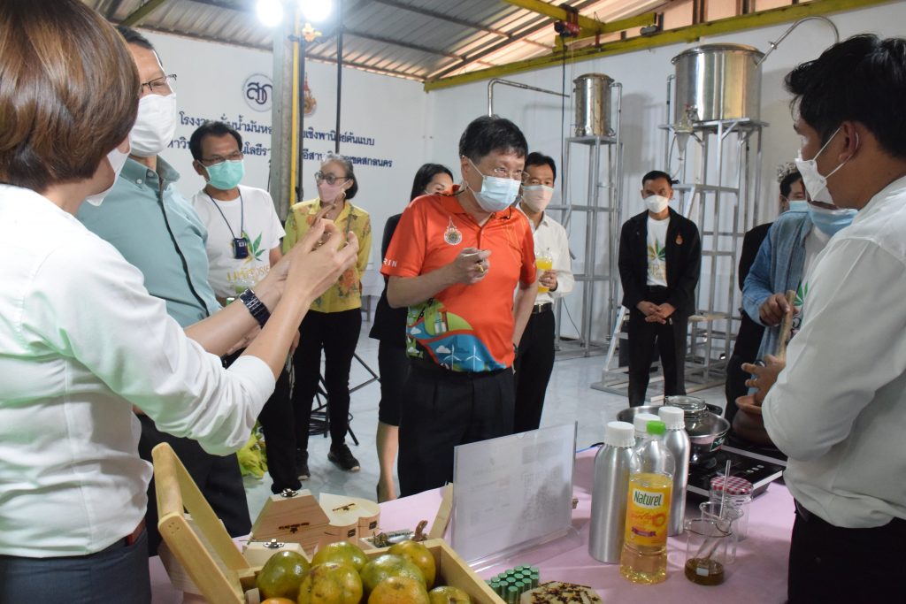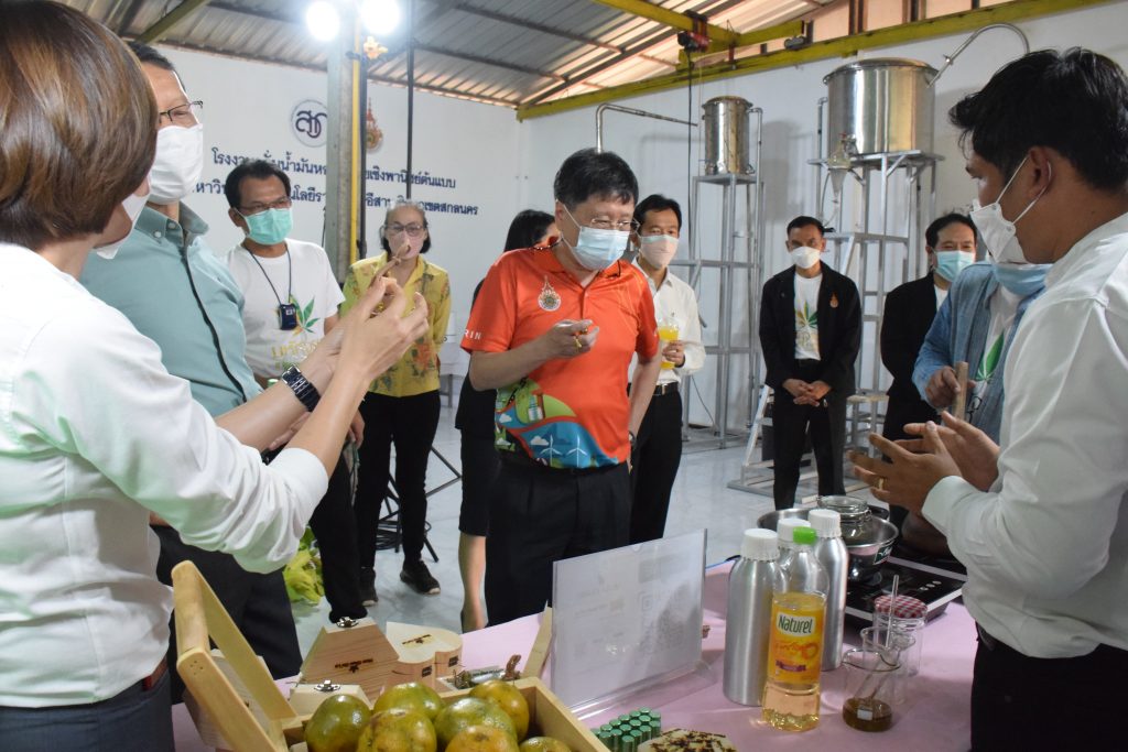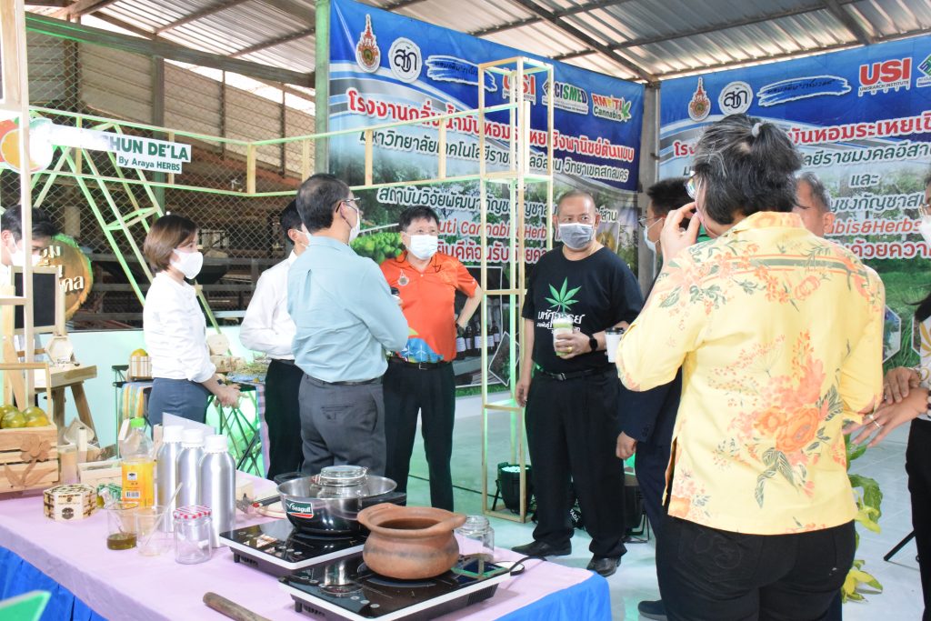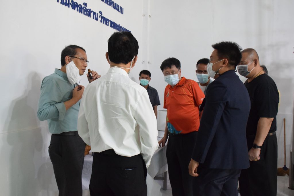 วันที่ 11 เมษายน 2565 คณะอุตสาหกรรมและเทคโนโลยี มทร.อีสาน วิทยาเขตสกลนคร นำโดย ผศ.น.สพ.ดร.ชเวง สารคล่อง รองอธิการบดีประจำวิทยาเขตสกลนคร พร้อมด้วย คณะผู้บริหาร บุคลากร คณะอุตสาหกรรมและเทคโนโลยี ร่วมต้อนรับ นายแพทย์ธีระเกียรติ เจริญเศรษฐศิลป์ นายกสภามทร.อีสาน พร้อมด้วยที่ปรึกษาสภามหาวิทยาลัย รศ.ดร.โฆษิต ศรีภูธร อธิการบดี และคณะผู้บริหาร มทร.อีสาน ในโอกาสเข้าเยี่ยมชมพื้นที่และดูงานโรงงานกลั่นน้ำมันหอมระเหยเชิงพานิชย์ต้นแบบ ณ โรงกลั่นน้ำมันหอมระเหยเชิงพานิชย์ต้นแบบ อาคารสำนักงานคณะบดีคณะอุตสาหกรรมและเทคโนโลยี ในการนี้ ผศ.ดร.สุริยา แก้วอาษา คณบดีคณะอุตสาหกรรมและเทคโนโลยี ร่วมต้อนรับพร้อมทั้งมอบของที่ระลึกในครั้งนี้ด้วย