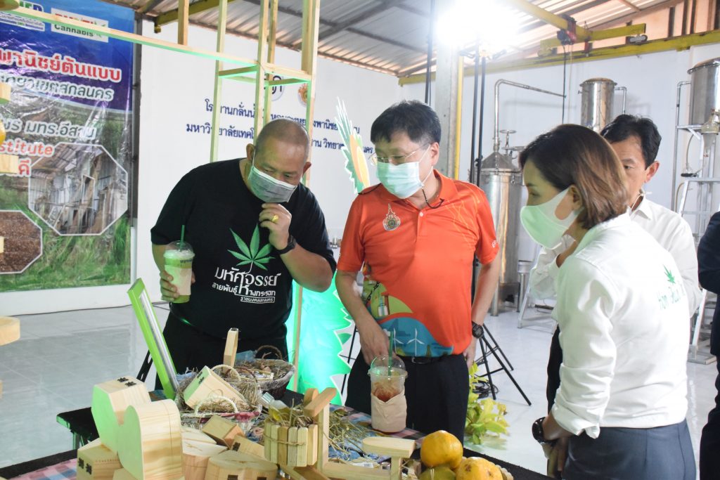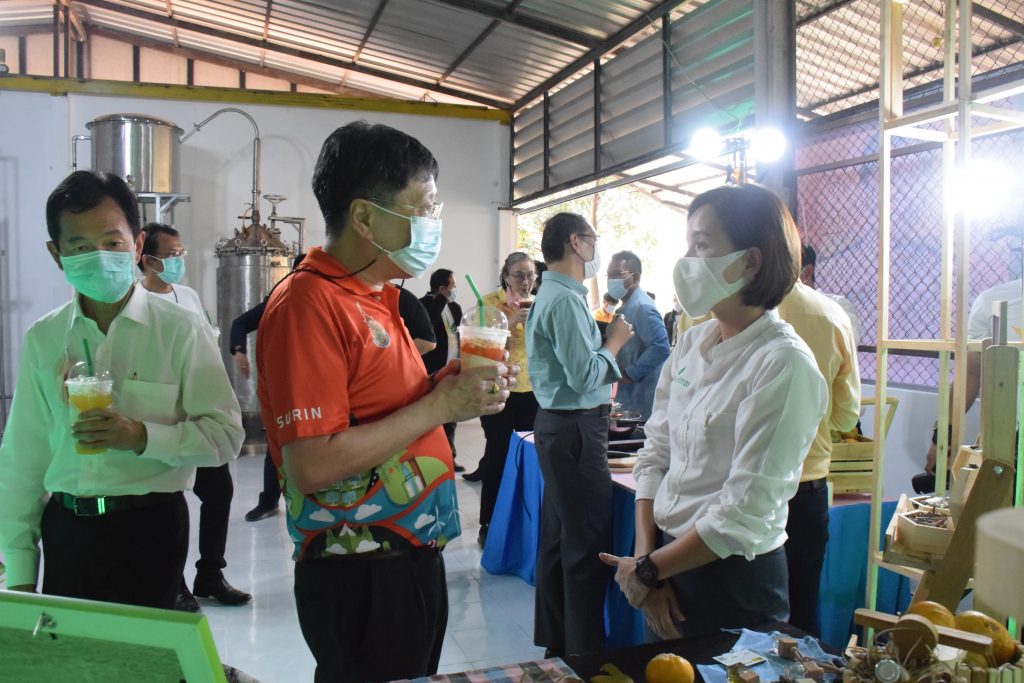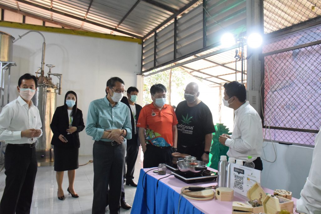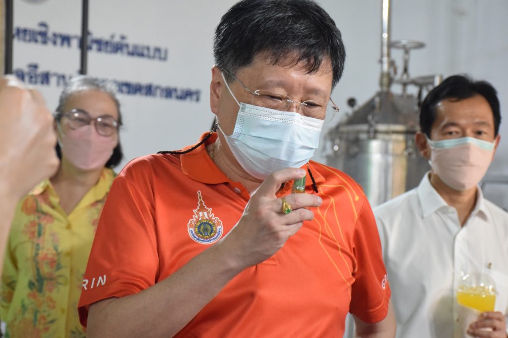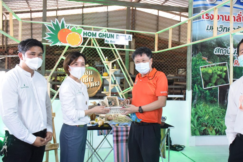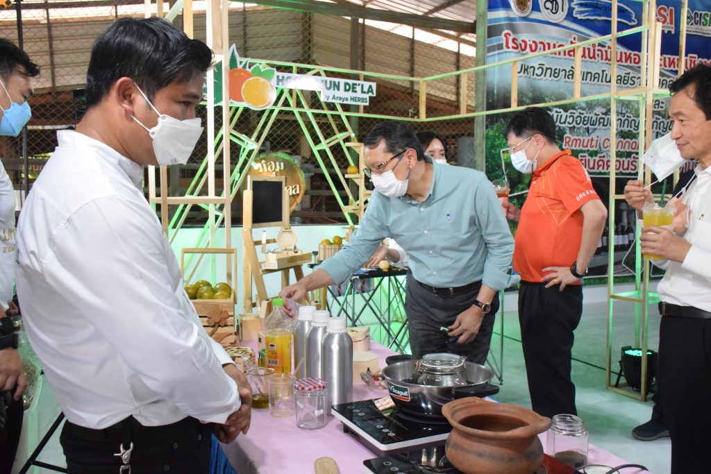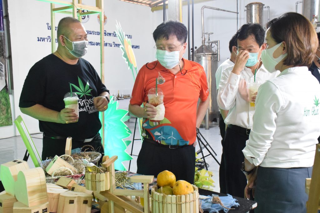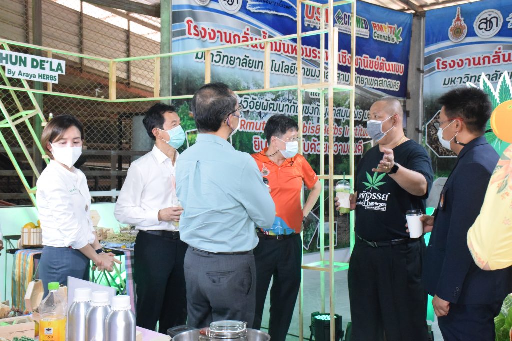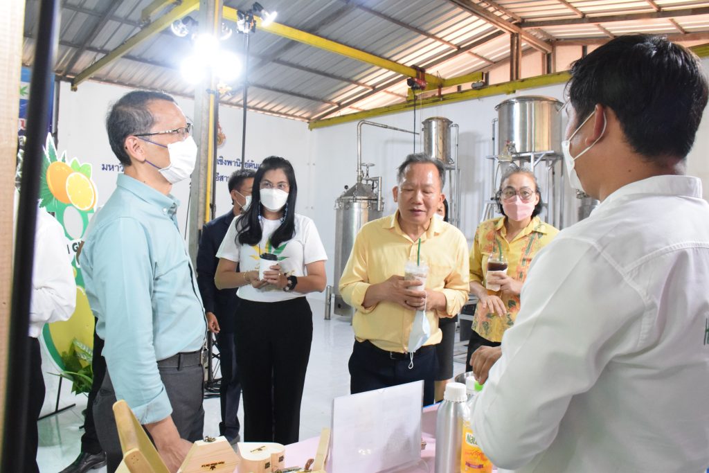วันที่ 11 เมษายน 2565 คณะอุตสาหกรรมและเทคโนโลยี มทร.อีสาน วิทยาเขตสกลนคร นำโดย ผศ.น.สพ.ดร.ชเวง สารคล่อง รองอธิการบดีประจำวิทยาเขตสกลนคร พร้อมด้วย คณะผู้บริหาร บุคลากร คณะอุตสาหกรรมและเทคโนโลยี ร่วมต้อนรับ นายแพทย์ธีระเกียรติ เจริญเศรษฐศิลป์ นายกสภามทร.อีสาน พร้อมด้วยที่ปรึกษาสภามหาวิทยาลัย รศ.ดร.โฆษิต ศรีภูธร อธิการบดี และคณะผู้บริหาร มทร.อีสาน ในโอกาสเข้าเยี่ยมชมพื้นที่และดูงานโรงงานกลั่นน้ำมันหอมระเหยเชิงพานิชย์ต้นแบบ ณ โรงกลั่นน้ำมันหอมระเหยเชิงพานิชย์ต้นแบบ อาคารสำนักงานคณะบดีคณะอุตสาหกรรมและเทคโนโลยี ในการนี้ ผศ.ดร.สุริยา แก้วอาษา คณบดีคณะอุตสาหกรรมและเทคโนโลยี ร่วมต้อนรับพร้อมทั้งมอบของที่ระลึกในครั้งนี้ด้วย