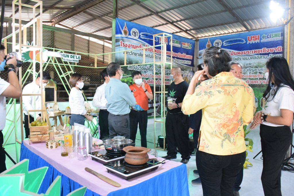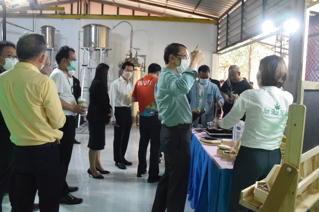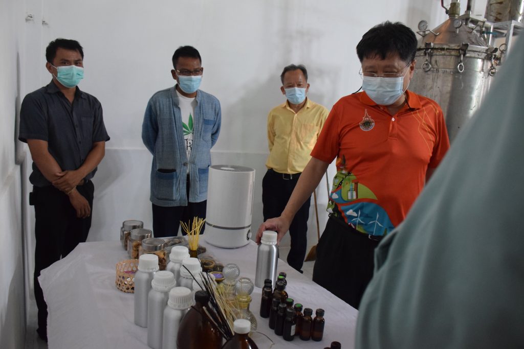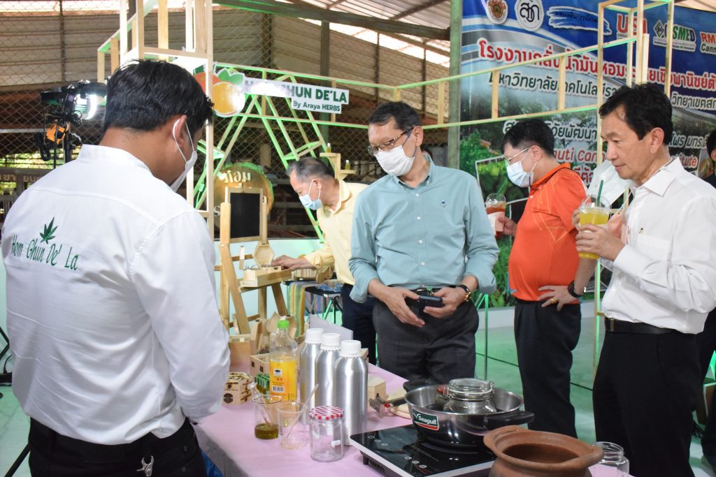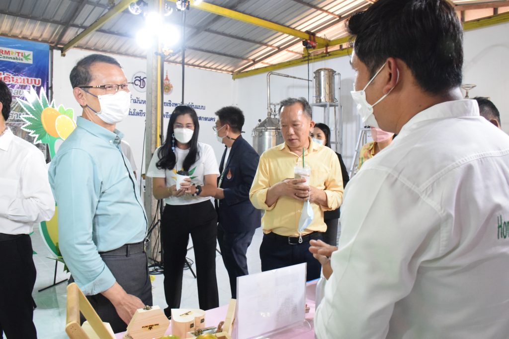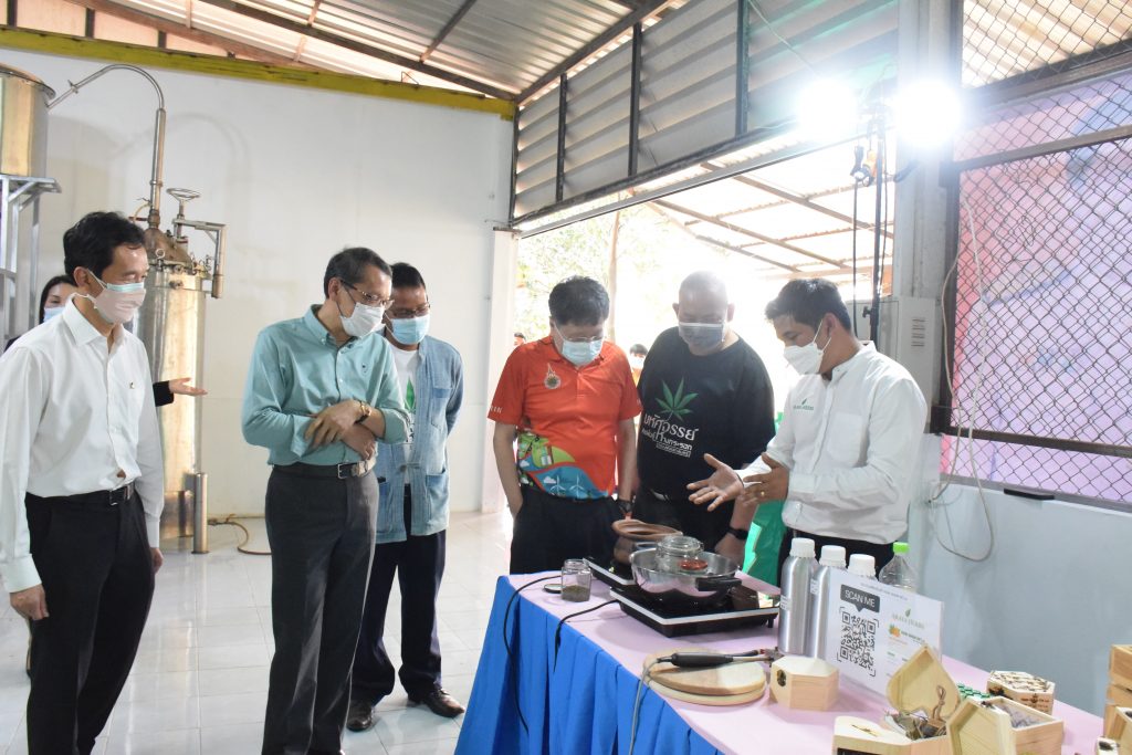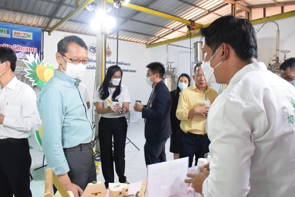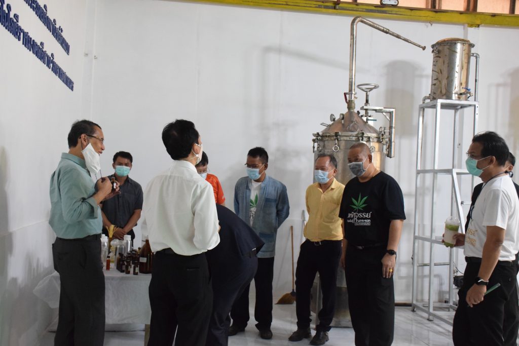 วันที่ 11 เมษายน 2565 คณะอุตสาหกรรมและเทคโนโลยี มทร.อีสาน วิทยาเขตสกลนคร นำโดย ผศ.น.สพ.ดร.ชเวง สารคล่อง รองอธิการบดีประจำวิทยาเขตสกลนคร พร้อมด้วย คณะผู้บริหาร บุคลากร คณะอุตสาหกรรมและเทคโนโลยี ร่วมต้อนรับ นายแพทย์ธีระเกียรติ เจริญเศรษฐศิลป์ นายกสภามทร.อีสาน พร้อมด้วยที่ปรึกษาสภามหาวิทยาลัย รศ.ดร.โฆษิต ศรีภูธร อธิการบดี และคณะผู้บริหาร มทร.อีสาน ในโอกาสเข้าเยี่ยมชมพื้นที่และดูงานโรงงานกลั่นน้ำมันหอมระเหยเชิงพานิชย์ต้นแบบ ณ โรงกลั่นน้ำมันหอมระเหยเชิงพานิชย์ต้นแบบ อาคารสำนักงานคณะบดีคณะอุตสาหกรรมและเทคโนโลยี ในการนี้ ผศ.ดร.สุริยา แก้วอาษา คณบดีคณะอุตสาหกรรมและเทคโนโลยี ร่วมต้อนรับพร้อมทั้งมอบของที่ระลึกในครั้งนี้ด้วย