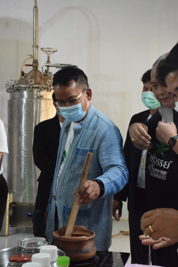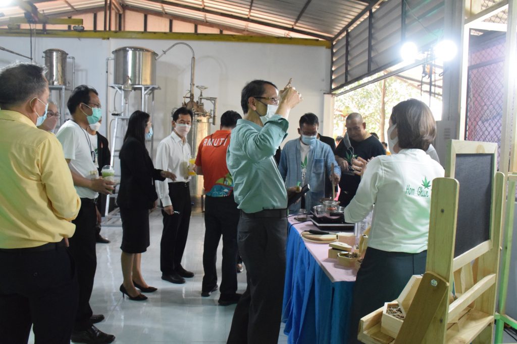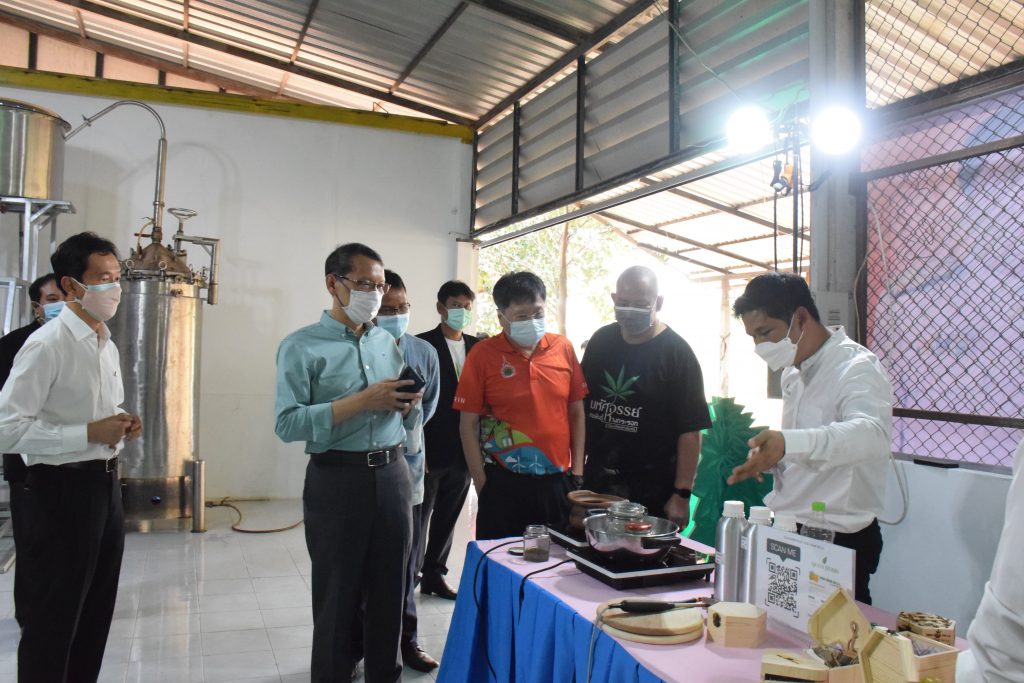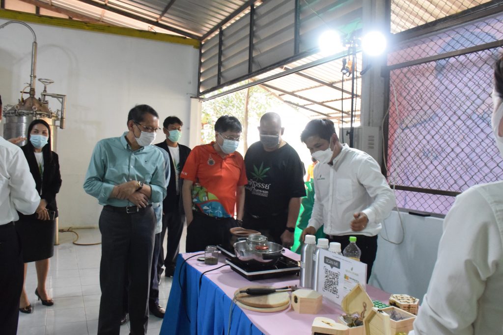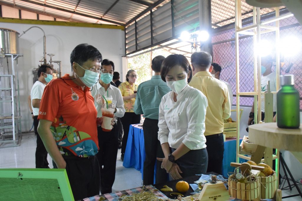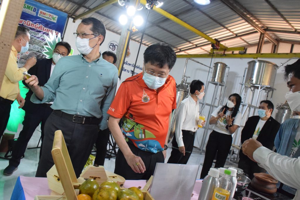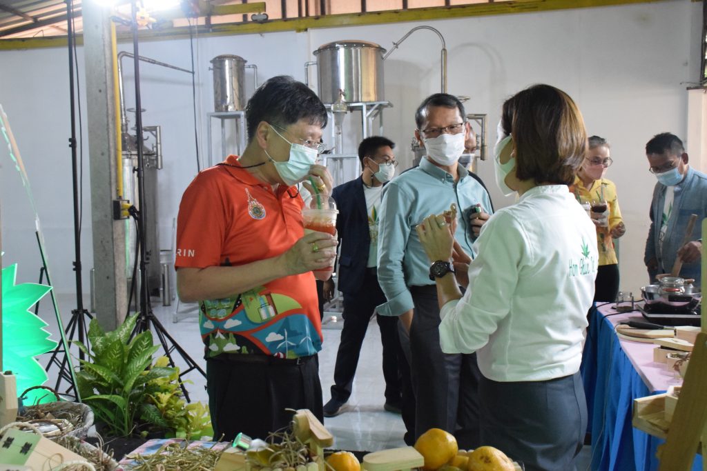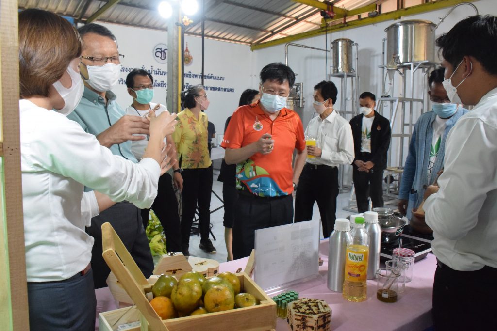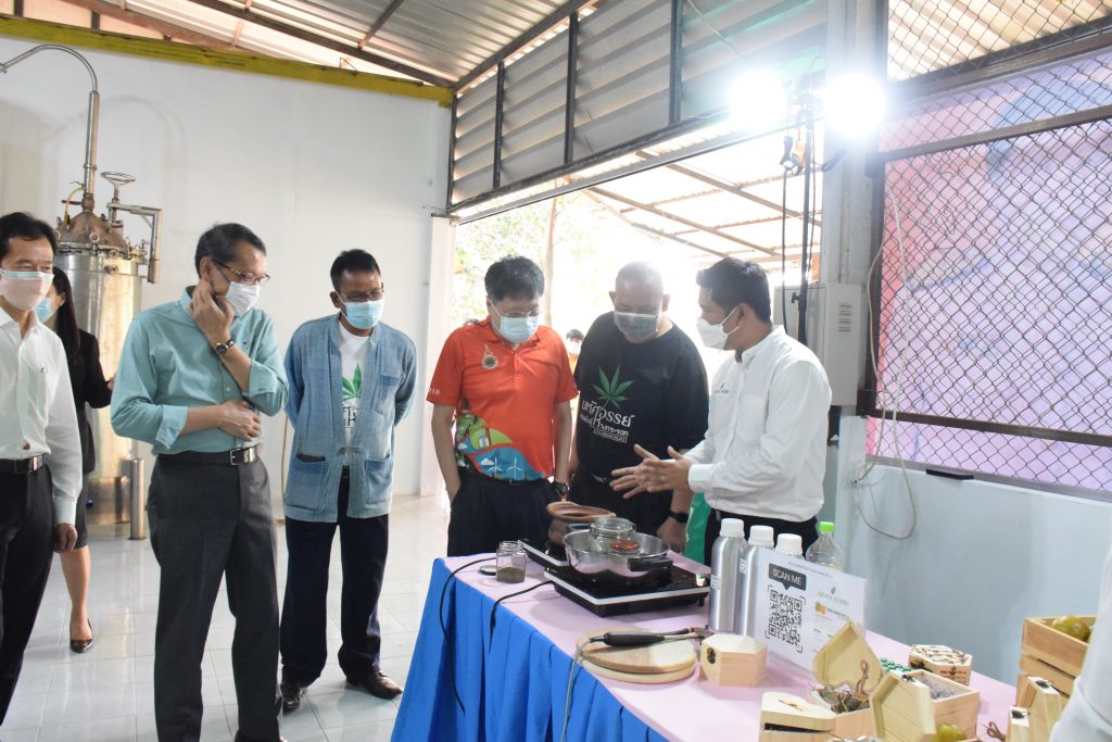 วันที่ 11 เมษายน 2565 คณะอุตสาหกรรมและเทคโนโลยี มทร.อีสาน วิทยาเขตสกลนคร นำโดย ผศ.น.สพ.ดร.ชเวง สารคล่อง รองอธิการบดีประจำวิทยาเขตสกลนคร พร้อมด้วย คณะผู้บริหาร บุคลากร คณะอุตสาหกรรมและเทคโนโลยี ร่วมต้อนรับ นายแพทย์ธีระเกียรติ เจริญเศรษฐศิลป์ นายกสภามทร.อีสาน พร้อมด้วยที่ปรึกษาสภามหาวิทยาลัย รศ.ดร.โฆษิต ศรีภูธร อธิการบดี และคณะผู้บริหาร มทร.อีสาน ในโอกาสเข้าเยี่ยมชมพื้นที่และดูงานโรงงานกลั่นน้ำมันหอมระเหยเชิงพานิชย์ต้นแบบ ณ โรงกลั่นน้ำมันหอมระเหยเชิงพานิชย์ต้นแบบ อาคารสำนักงานคณะบดีคณะอุตสาหกรรมและเทคโนโลยี ในการนี้ ผศ.ดร.สุริยา แก้วอาษา คณบดีคณะอุตสาหกรรมและเทคโนโลยี ร่วมต้อนรับพร้อมทั้งมอบของที่ระลึกในครั้งนี้ด้วย