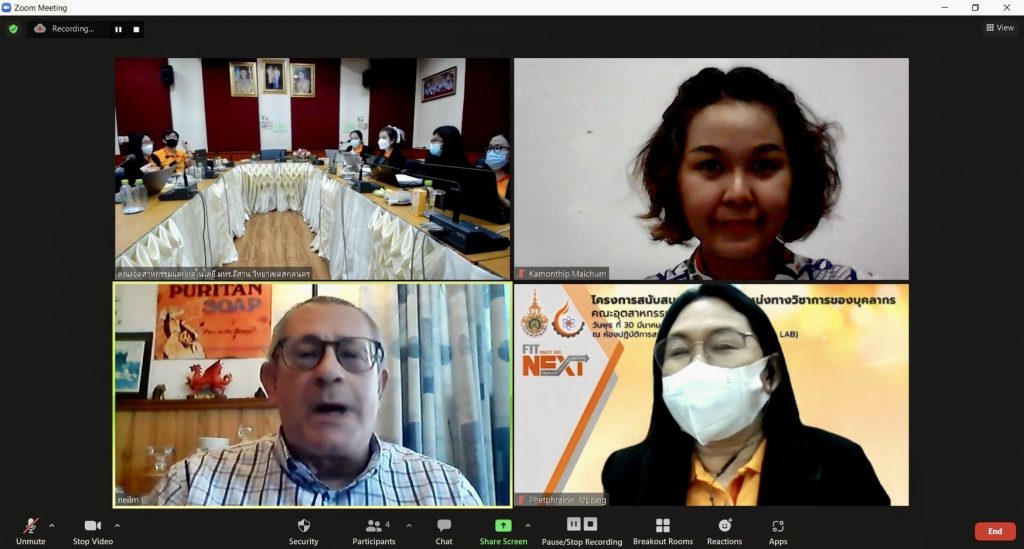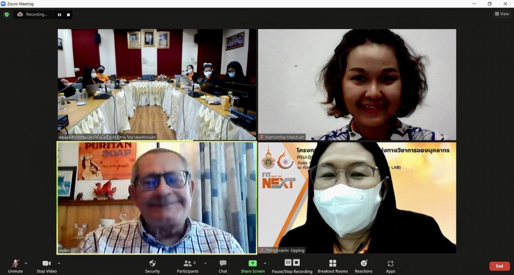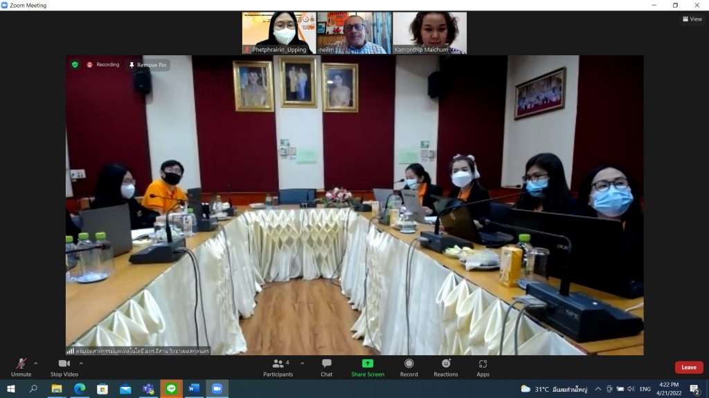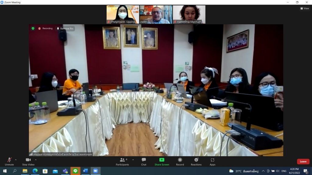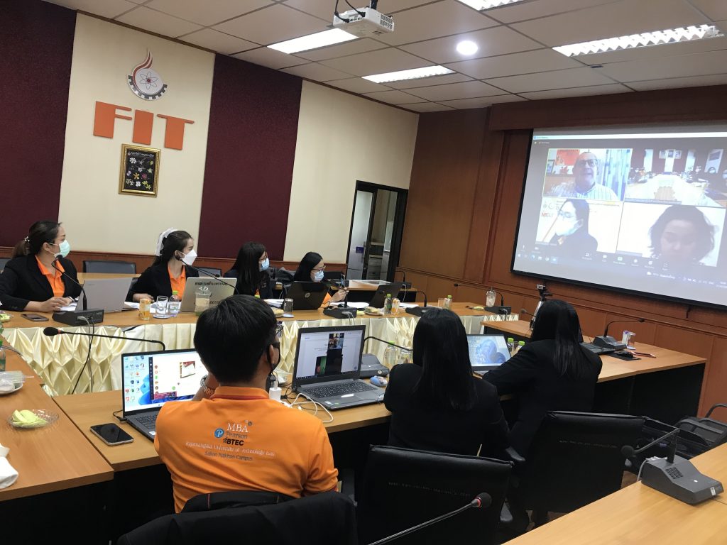 วันที่ 21 เมษายน 2565 ผศ. ดร.สุริยา แก้วอาษา คณบดีคณะอุตสาหกรรมและเทคโนโลยี ผศ.ดร. จักเรศ เมตตะธำรงค์ ประธานหลักสูตรบริหารธุรกิจมหาบัณฑิต.พร้อมด้วยอาจารย์ประจำหลักสูตร และนักศึกษาระดับปริญญาโท หลักสูตรบริหารธุรกิจมหาบัณฑิต รุ่น 2 (MBA + Pearson BTEC Level 4 Certificate in Management and Leadership) เข้าร่วมประชุมออนไลน์ผ่านระบบ Zoom Meeting กับผู้แทนของสถาบัน Pearson Education จากประเทศอังกฤษ เพื่อรับการตรวจประเมินในการขอรับรองใบประกาศนียบัตรตามมาตรฐาน Pearson BTEC Level 4 Certificate in Management and Leadership สำหรับนักศึกษาระดับปริญญาโท
