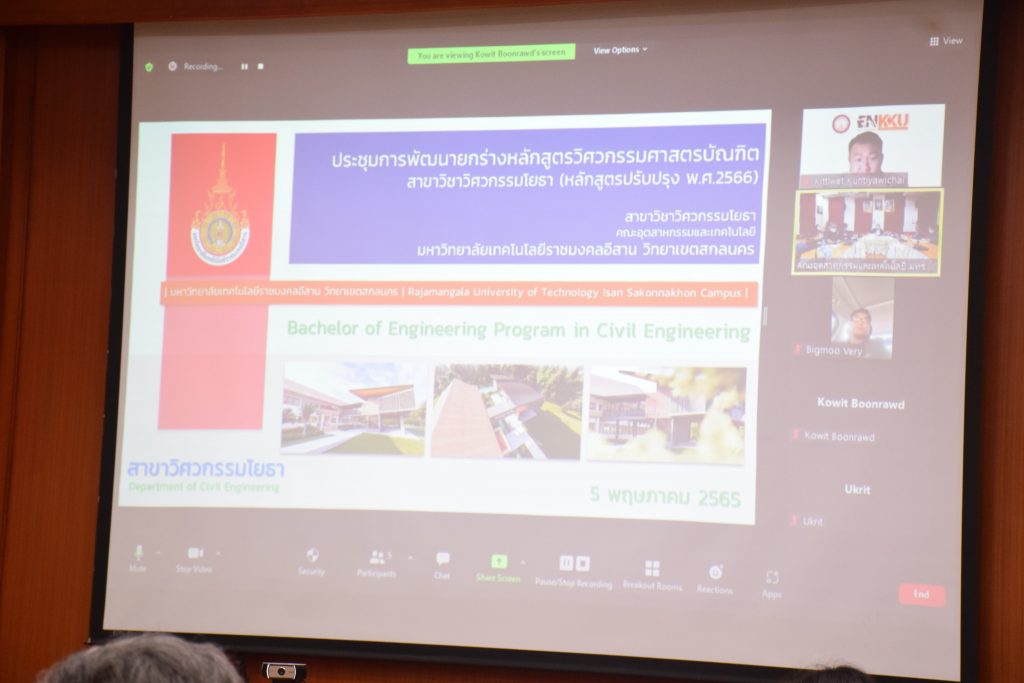วันที่ 5 พฤษภาคม 2565 คณะอุตสาหกรรมและเทคโนโลยี จัดประชุมการพัฒนายกร่างหลักสูตรวิศวกรรมศาสตรบัณฑิต สาขาวิชาวิศวกรรมโยธา (หลักสูตรปรับปรุง พ.ศ.2566) ภายใต้โครงการการพัฒนาหลักสูตรและการขอรับรองหลักสูตร ผ่านระบบอิเล็กทรอนิกส์ Zoom Meeting ณ ห้องประชุมสำนักงานคณบดี เพื่อปรับปรุงหลักสูตรให้มีโครงสร้างหลักสูตร เนื้อหารายวิชาสอดคล้องกับเกณฑ์มาตรฐานหลักสูตร มาตรฐานวิชาชีพ และนำไปพัฒนาปรับปรุงในการวิพากษ์หลักสูตรขั้นตอนต่อไป ในการนี้ ผศ.ดร.พรเทพ ปัญญาแก้ว รองคณบดีฝ่ายวิชาการและวิจัย ให้เกียรติเป็นประธานในที่ประชุม โดยมี ผู้บริหาร อาจารย์ผู้รับผิดชอบหลักสูตร และคณะกรรมการผู้ทรงคุณวุฒิ เข้าประชุมร่วมโดยพร้อมเพรียงกัน
