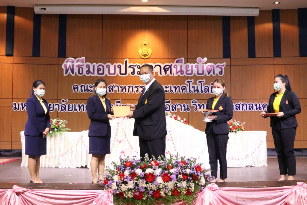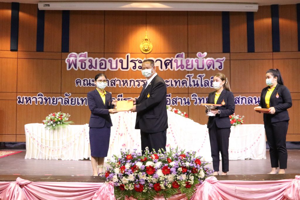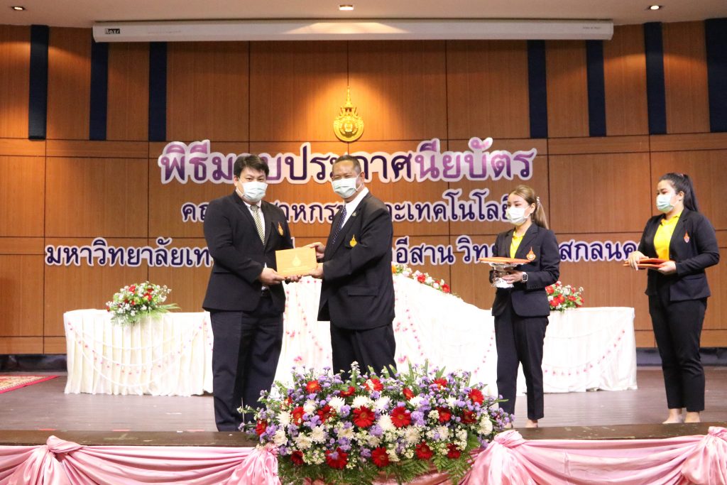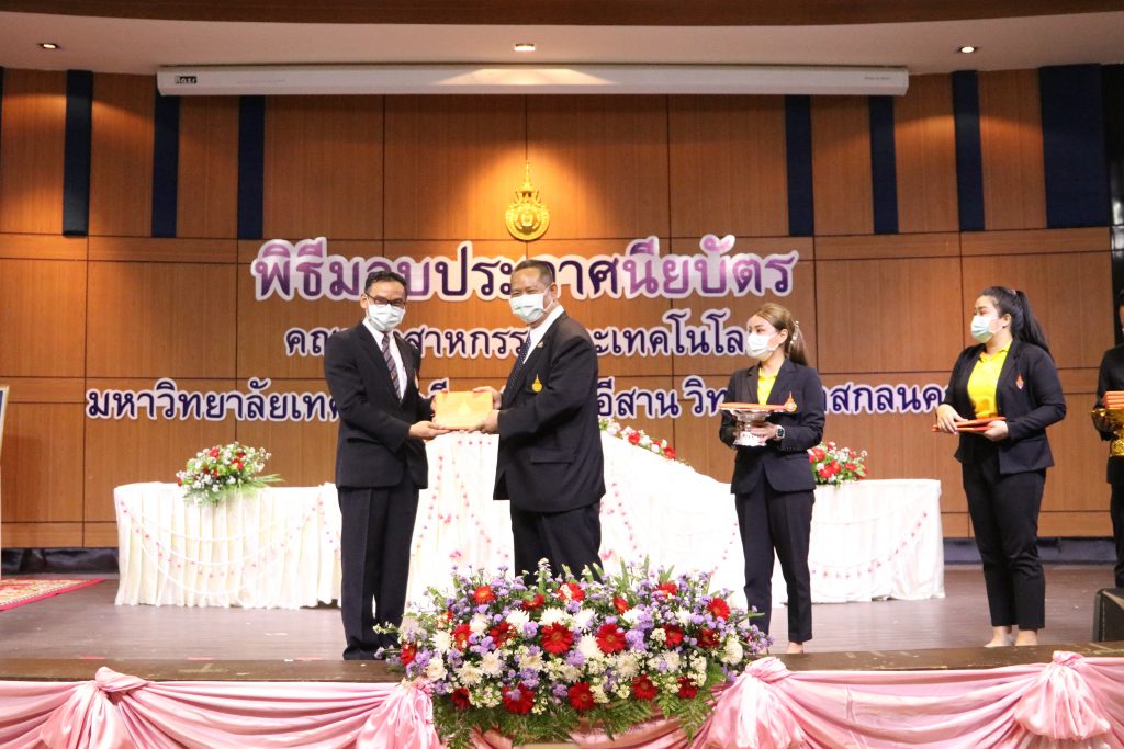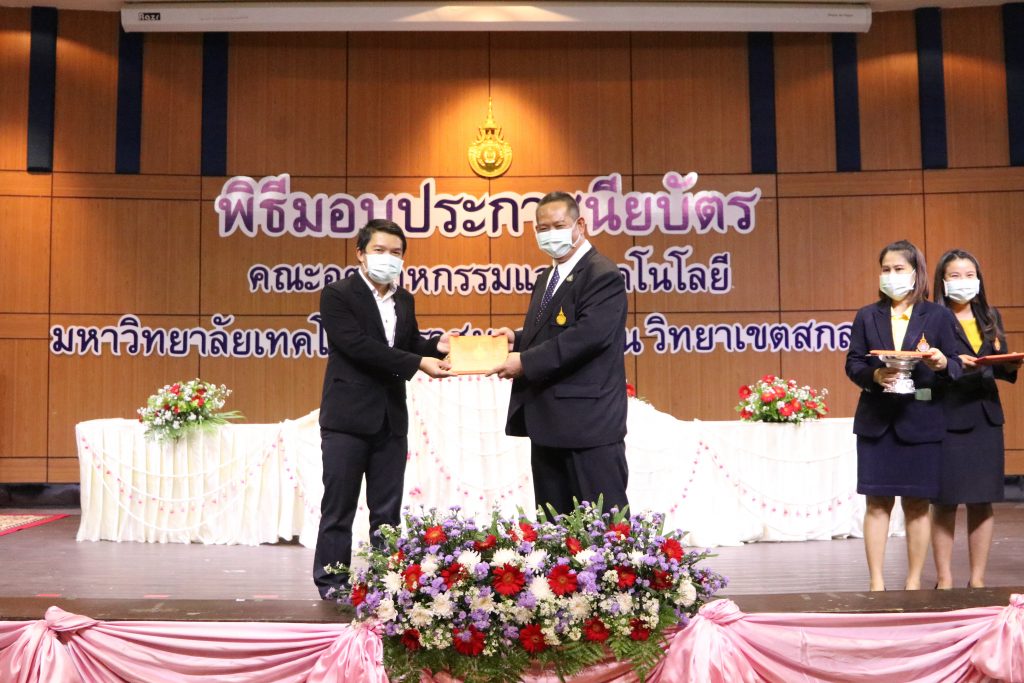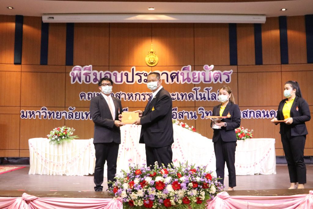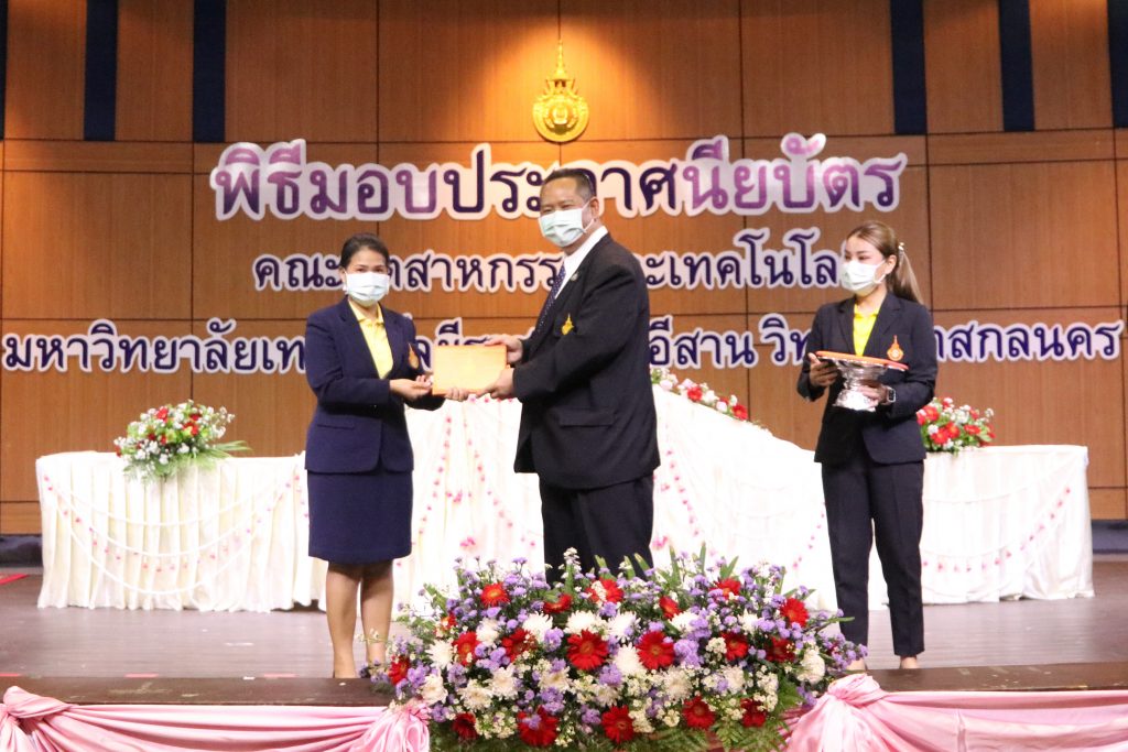 วันที่ 1 มิถุนายน 2565 คณะอุตสาหกรรมและเทคโนโลยี มทร.อีสาน วิทยาเขตสกลนคร จัดพิธีมอบเกียรติบัตรแก่ ผู้บริหาร คณาจารย์ และบุคลากรดีเด่น ประจำปีการศึกษา 2564 ณ ห้องประชุมราชมงคล อาคารเรียนรวม (อาคาร 12) มหาวิทยาลัยเทคโนโลยีราชมงคลอีสาน วิทยาเขตสกลนคร เพื่อยกย่อง เชิดชูเกียรติ สร้างขวัญกำลังใจให้กับผู้บริหาร คณาจารย์ และเจ้าหน้าที่ ก่อให้เกิดแรงบันดาลใจในการทำงาน นำไปสู่การพัฒนางานและหน่วยงานอย่างยั่งยืน ในการนี้ รศ.ดร.โฆษิต ศรีภูธร อธิการบดีมหาวิทยาลัยเทคโนโลยีราชมงคลอีสาน ให้เกียรติเป็นประธานในพิธีมอบเกียรติบัตรในครั้งนี้ โดยมีคณะผู้บริหาร คณาจารย์ เจ้าหน้าที่ และนักศึกษาคณะอุตสาหกรรมและเทคโนโลยีเข้าร่วมพิธีโดยพร้อมเพรียงกัน