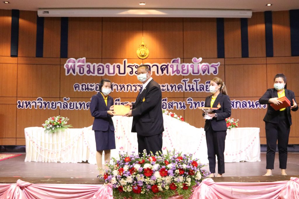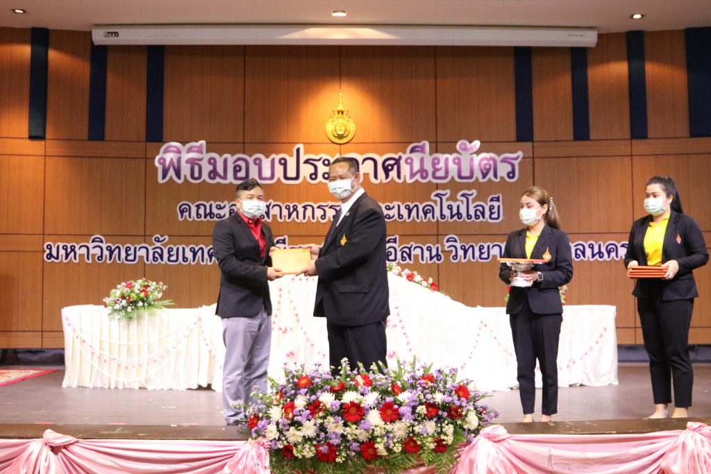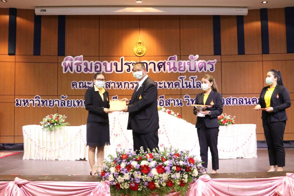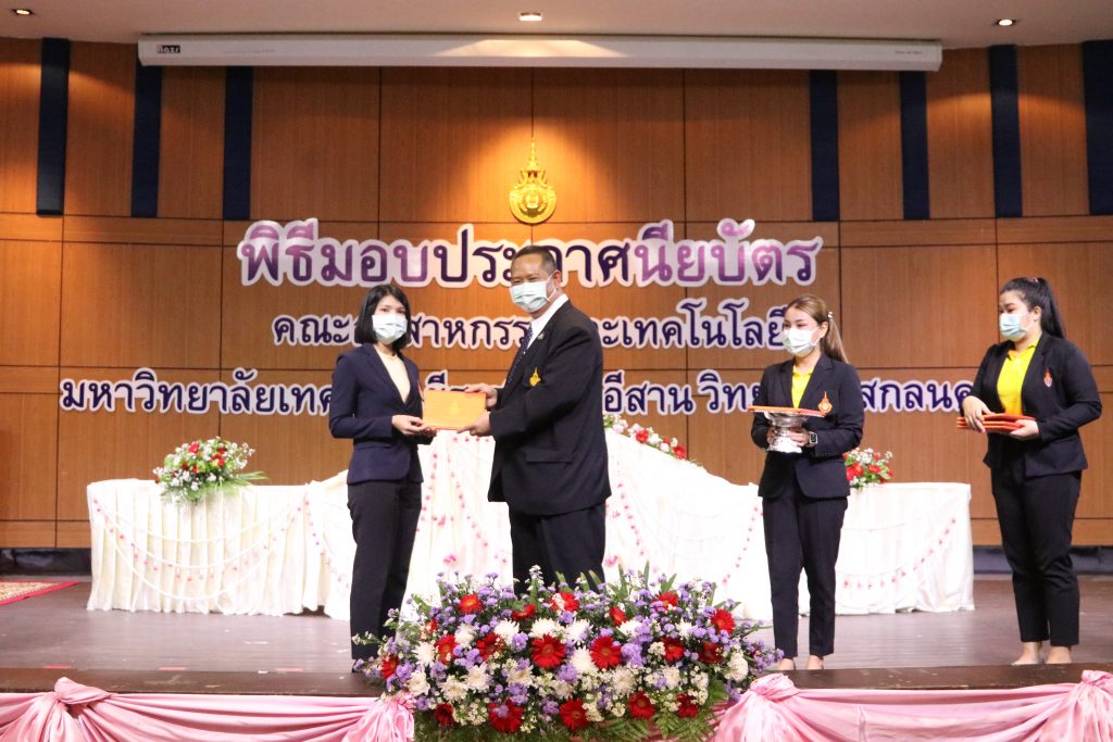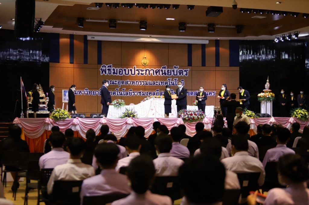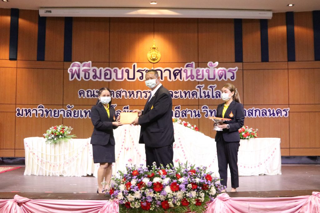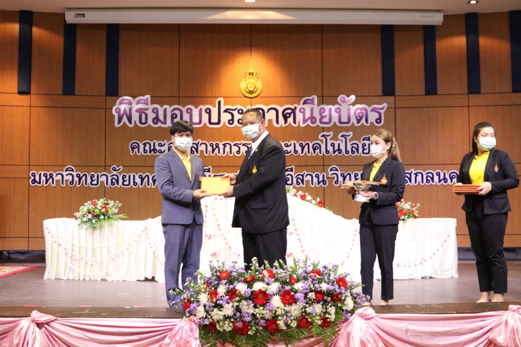 วันที่ 1 มิถุนายน 2565 คณะอุตสาหกรรมและเทคโนโลยี มทร.อีสาน วิทยาเขตสกลนคร จัดพิธีมอบเกียรติบัตรแก่ ผู้บริหาร คณาจารย์ และบุคลากรดีเด่น ประจำปีการศึกษา 2564 ณ ห้องประชุมราชมงคล อาคารเรียนรวม (อาคาร 12) มหาวิทยาลัยเทคโนโลยีราชมงคลอีสาน วิทยาเขตสกลนคร เพื่อยกย่อง เชิดชูเกียรติ สร้างขวัญกำลังใจให้กับผู้บริหาร คณาจารย์ และเจ้าหน้าที่ ก่อให้เกิดแรงบันดาลใจในการทำงาน นำไปสู่การพัฒนางานและหน่วยงานอย่างยั่งยืน ในการนี้ รศ.ดร.โฆษิต ศรีภูธร อธิการบดีมหาวิทยาลัยเทคโนโลยีราชมงคลอีสาน ให้เกียรติเป็นประธานในพิธีมอบเกียรติบัตรในครั้งนี้ โดยมีคณะผู้บริหาร คณาจารย์ เจ้าหน้าที่ และนักศึกษาคณะอุตสาหกรรมและเทคโนโลยีเข้าร่วมพิธีโดยพร้อมเพรียงกัน