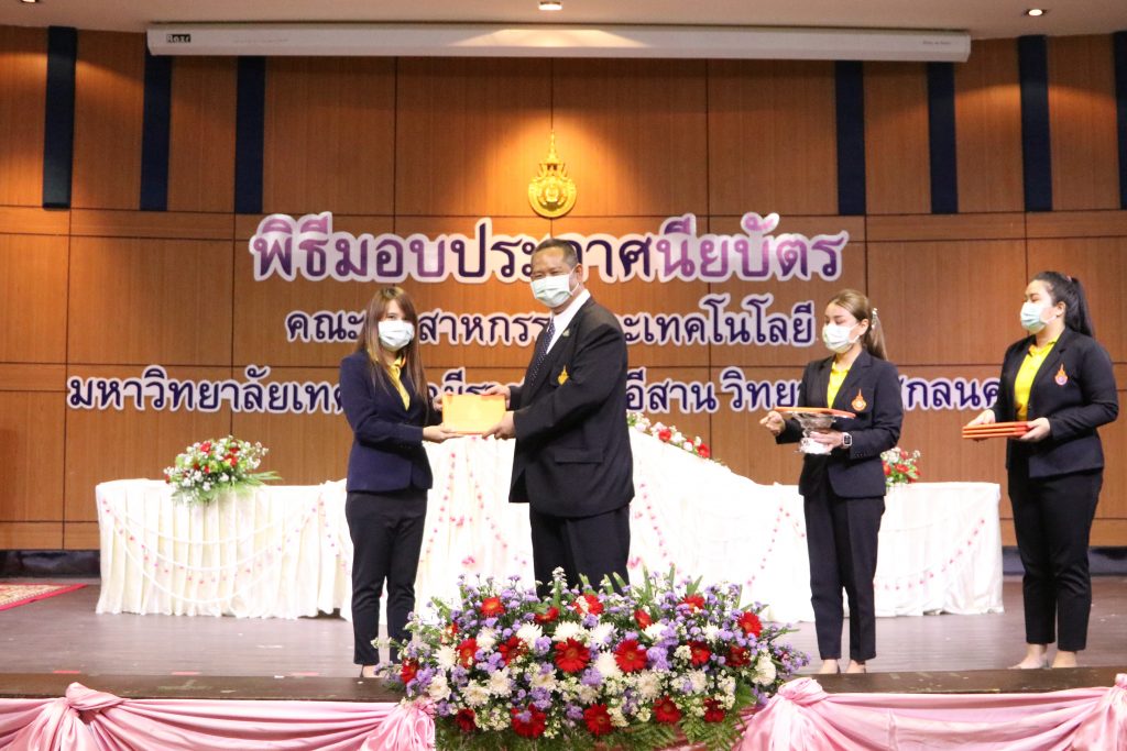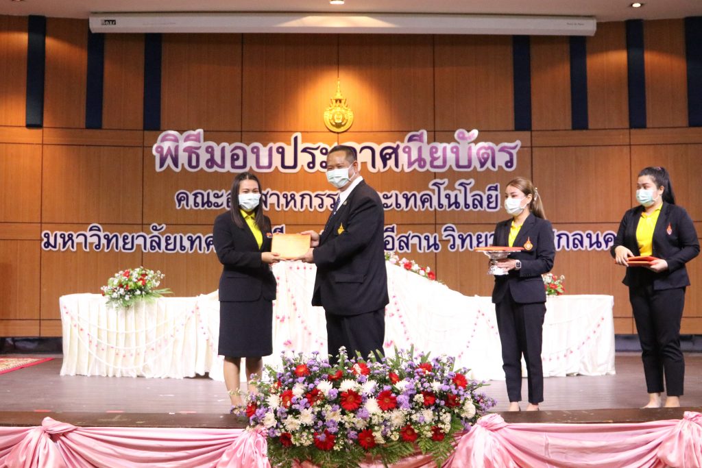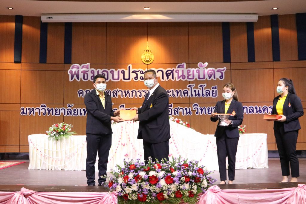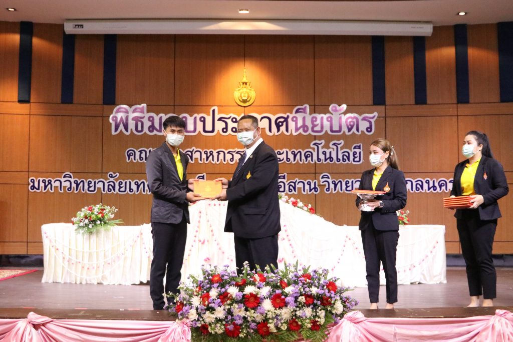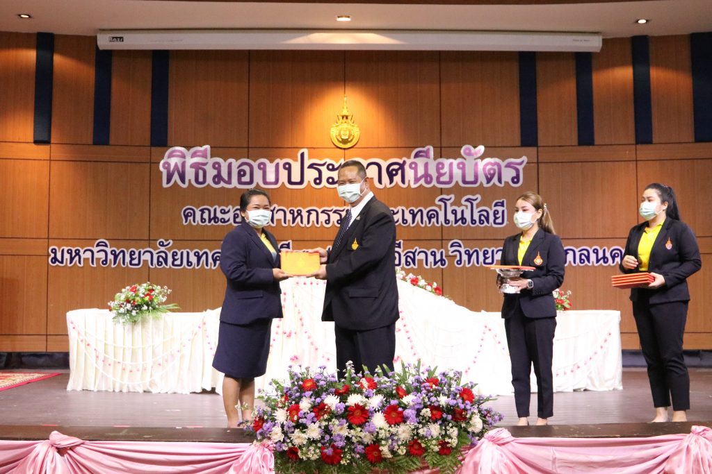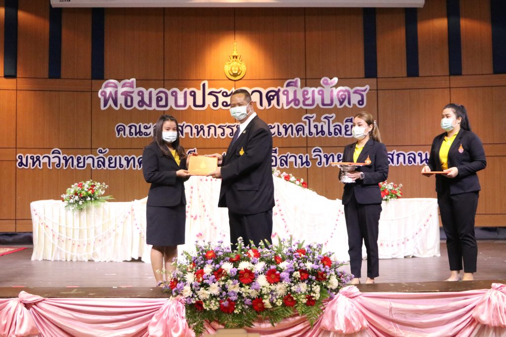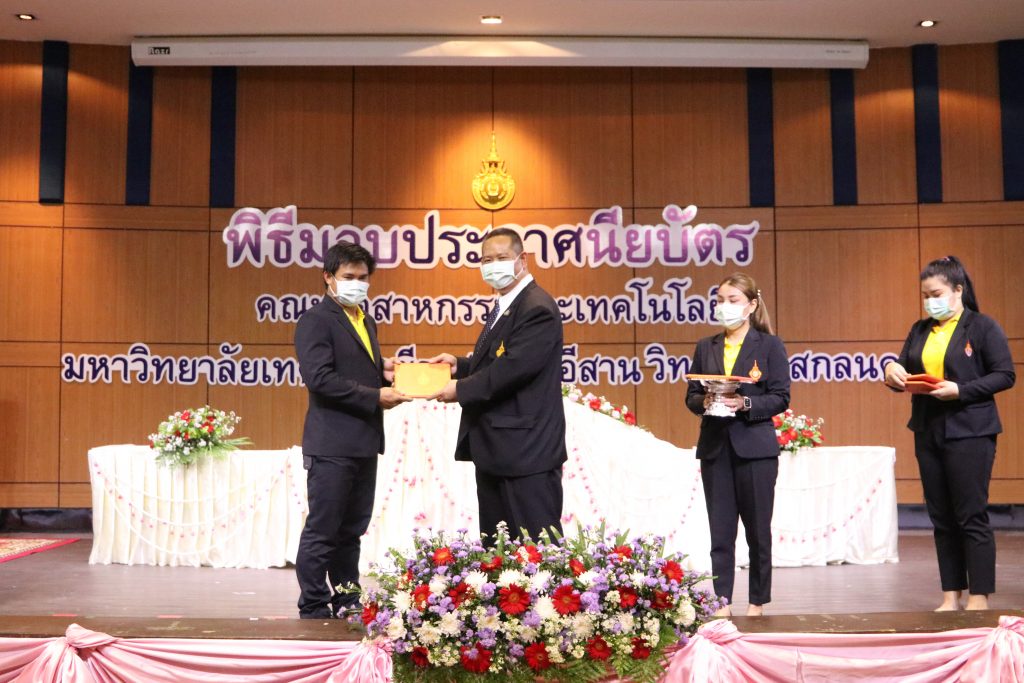 วันที่ 1 มิถุนายน 2565 คณะอุตสาหกรรมและเทคโนโลยี มทร.อีสาน วิทยาเขตสกลนคร จัดพิธีมอบเกียรติบัตรแก่ ผู้บริหาร คณาจารย์ และบุคลากรดีเด่น ประจำปีการศึกษา 2564 ณ ห้องประชุมราชมงคล อาคารเรียนรวม (อาคาร 12) มหาวิทยาลัยเทคโนโลยีราชมงคลอีสาน วิทยาเขตสกลนคร เพื่อยกย่อง เชิดชูเกียรติ สร้างขวัญกำลังใจให้กับผู้บริหาร คณาจารย์ และเจ้าหน้าที่ ก่อให้เกิดแรงบันดาลใจในการทำงาน นำไปสู่การพัฒนางานและหน่วยงานอย่างยั่งยืน ในการนี้ รศ.ดร.โฆษิต ศรีภูธร อธิการบดีมหาวิทยาลัยเทคโนโลยีราชมงคลอีสาน ให้เกียรติเป็นประธานในพิธีมอบเกียรติบัตรในครั้งนี้ โดยมีคณะผู้บริหาร คณาจารย์ เจ้าหน้าที่ และนักศึกษาคณะอุตสาหกรรมและเทคโนโลยีเข้าร่วมพิธีโดยพร้อมเพรียงกัน