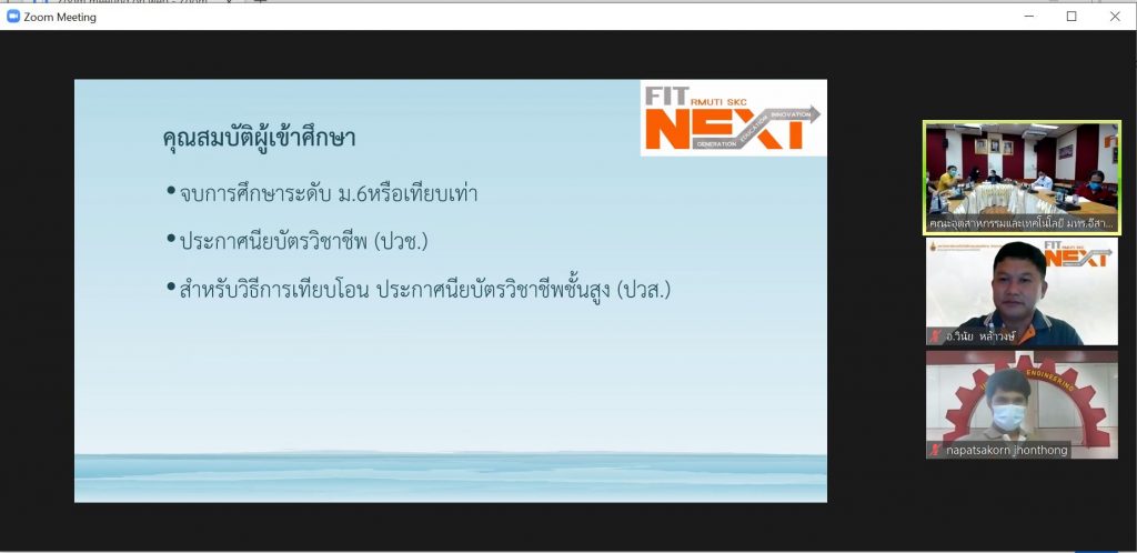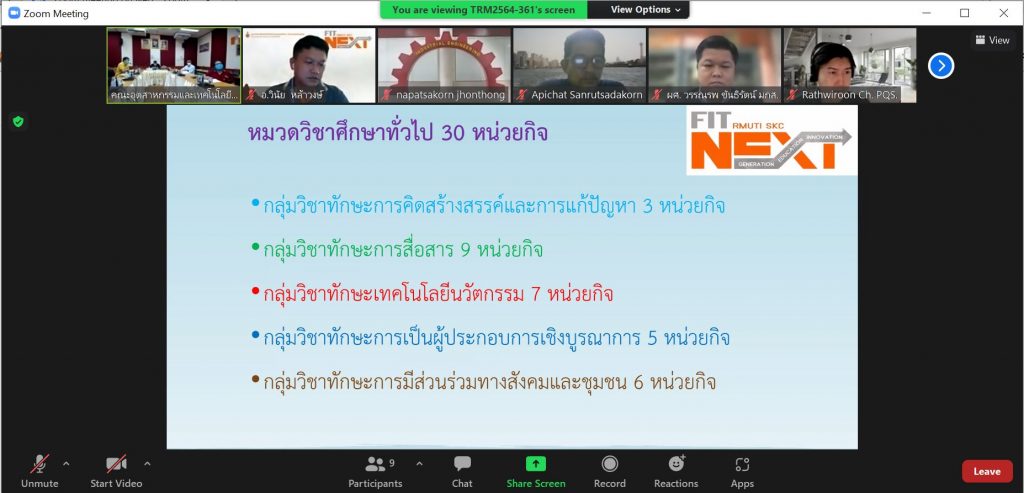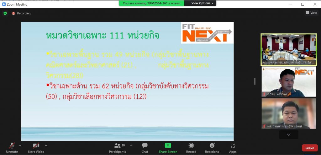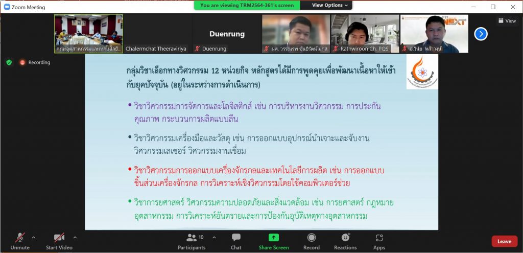 วันที่ 10 มิถุนายน 2565 คณะอุตสาหกรรมและเทคโนโลยี จัดประชุมการพัฒนายกร่างหลักสูตรวิศวกรรมศาสตรบัณฑิต สาขาวิชาวิศวกรรมอุตสาหการ (หลักสูตรปรับปรุง พ.ศ. 2566) ภายใต้โครงการการพัฒนาหลักสูตรและการขอรับรองหลักสูตร ผ่านระบบอิเล็กทรอนิกส์ Zoom Meeting ณ ห้องประชุมสำนักงานคณบดี เพื่อปรับปรุงหลักสูตรให้มีโครงสร้างหลักสูตร เนื้อหารายวิชาสอดคล้องกับเกณฑ์มาตรฐาน หลักสูตร มาตรฐานวิชาชีพ และนำไปพัฒนาปรับปรุงในการวิพากษ์หลักสูตรขั้นตอนต่อไป ในการนี้ ผศ.ดร.พรเทพ ปัญญาแก้ว รองคณบดีฝ่ายวิชาการและวิจัย ให้เกียรติเป็นประธานในที่ประชุม โดยมี ผู้บริหาร อาจารย์ผู้รับผิดชอบหลักสูตร และคณะกรรมการผู้ทรงคุณวุฒิ เข้าร่วมประชุมโดยพร้อมเพรียงกัน