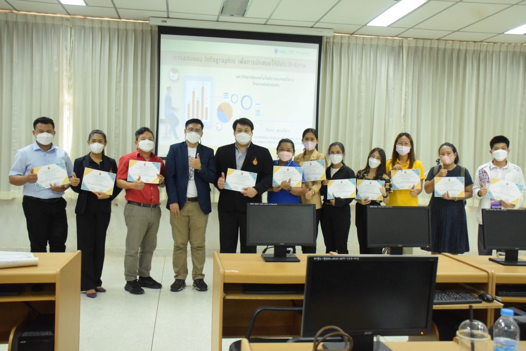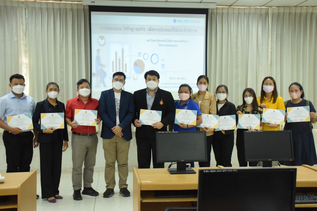 วันที่ 25-26 มิถุนายน 2565 โรงเรียนสาธิตเตรียมวิศวกรรมและเทคโนโลยี คณะอุตสาหกรรมและเทคโนโลยี มทร.อีสาน วิทยาเขตสกลนคร จัดโครงการพัฒนาบุคลากรด้านการ Presentationณ ห้องปฏิบัติการคอมพิวเตอร์ ชั้น 2 อาคารสำนักงานคณบดีคณะอุตสาหกรรมและเทคโนโลยี โดยมีวัตถุประสงค์เพื่อพัฒนาความรู้ความสามารถของบุคลากร สามารถนำความรู้ที่ได้รับไปปรับใช้ในการเรียนการสอน และพัฒนาองค์กรต่อไป โดยได้รับเกียรติจากคุณทินกร พรมดีมา เป็นวิทยากรบรรยายในหัวข้อเรื่อง“เทคนิคการออกแบบ Presentation Infographic เพื่อการนำเสนอที่มีประสิทธิภาพ” ในการนี้ ผศ. ดร.พรเทพ ปัญญาแก้ว รองคณบดีฝ่ายวิชาการและวิจัย ให้เกียรติเป็นประธานในพิธีเปิดโครงการ โดยมีคณาจารย์ เจ้าหน้าที่ และนักศึกษา คณะอุตสาหกรรมและเทคโนโลยีเข้าร่วมโครงการ จำนวน 20 คน
