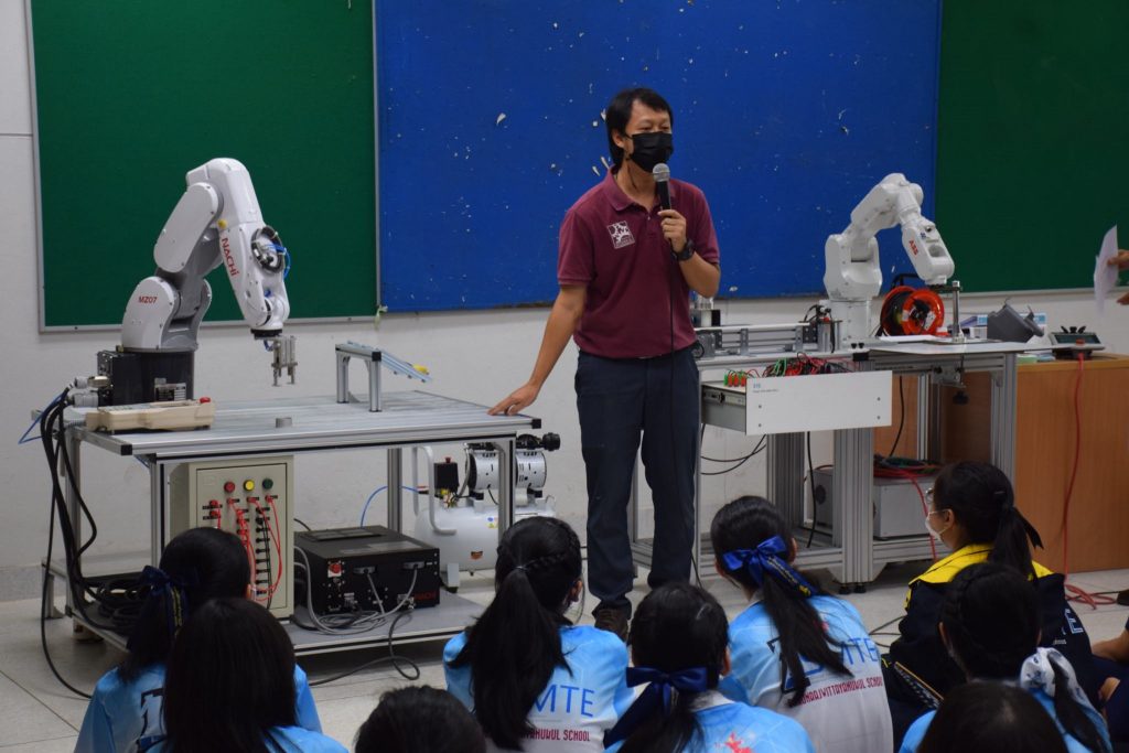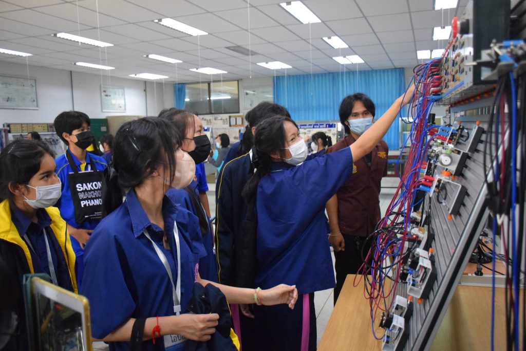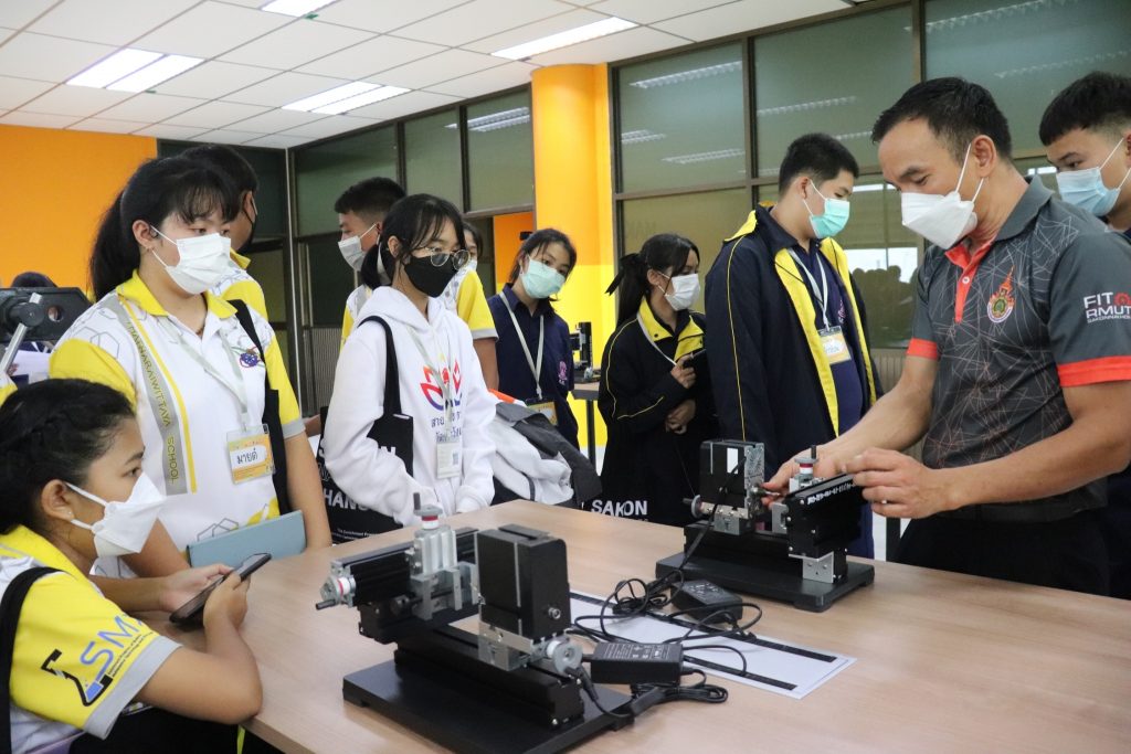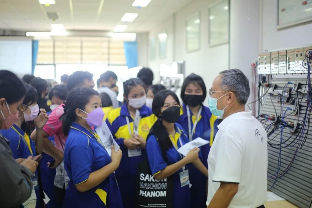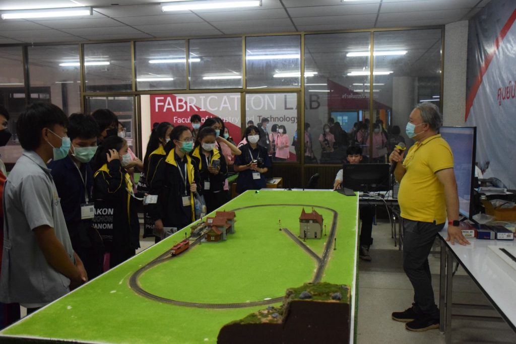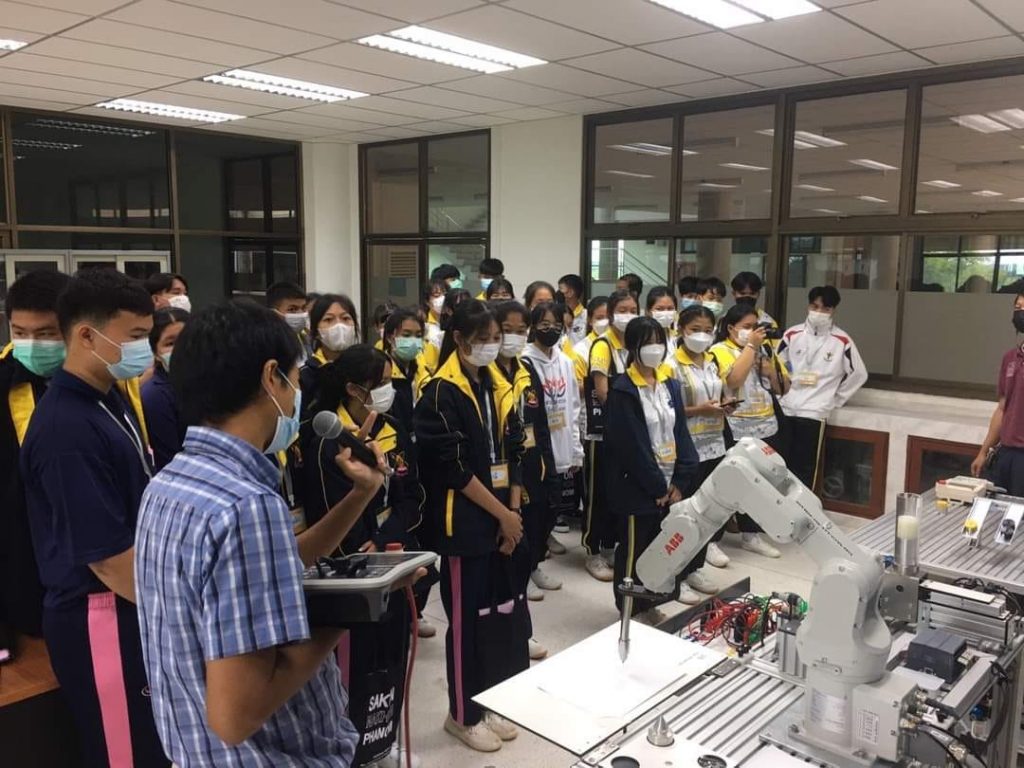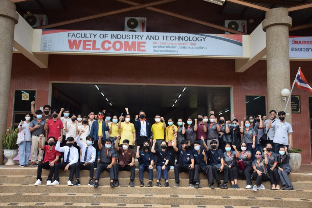 วันที่ 2 กรกฎาคม 2565 คณะอุตสาหกรรมและเทคโนโลยี นำโดย ผศ. ดร.สุริยา แก้วอาษา คณบดีคณะอุตสาหกรรมและเทคโนโลยี พร้อมด้วยผู้บริหาร คณาจารย์ บุคลากร และนักศึกษา ร่วมต้อนรับคณะครูและนักเรียน โครงการค่ายวิชาการนักเรียนห้องเรียนพิเศษ SMTE ชั้นมัธยมศึกษาปีที่ 5 คู่จังหวัดสกลนคร-นครพนม ประกอบด้วย โรงเรียนสกลราชวิทยานุกูล โรงเรียนเตรียมอุดมศึกษา ภาคตะวันออกเฉียงเหนือ โรงเรียนธาตุนารายณ์วิทยา โรงเรียนเฉลิมพระเกียรติฯ สกลนคร โรงเรียนปิยะมหาราชาลัย และโรงเรียนนครพนมวิทยาคม จำนวน 280 คน เข้าศึกษาดูงานห้องปฎิบัติการสร้างต้นแบบนวัตกรรม (Fab Lab) ห้องปฏิบัติการระบบราง ห้องปฏิบัติการหุ่นยนต์อุตสาหกรรม ห้องปฏิบัติการนิวเมติกส์ ห้องปฏิบัติการภาษาเกาหลี (KOICA) นิทรรศการสิ่งประดิษฐ์และนวัตกรรม ณ อาคารสำนักงานคณบดีคณะอุตสาหกรรม และเทคโนโลยี