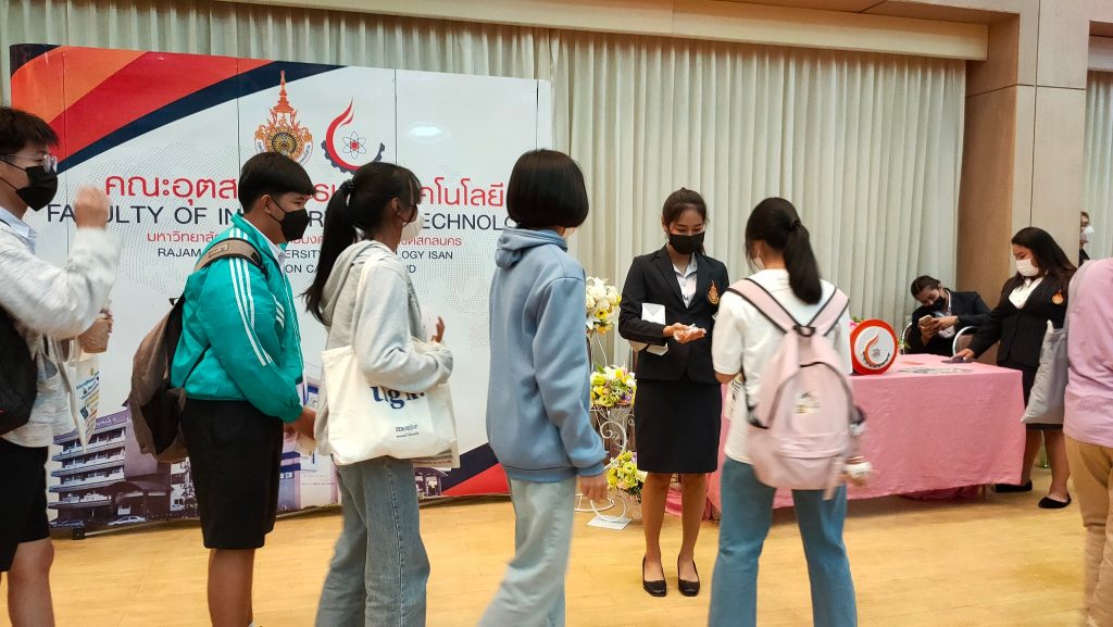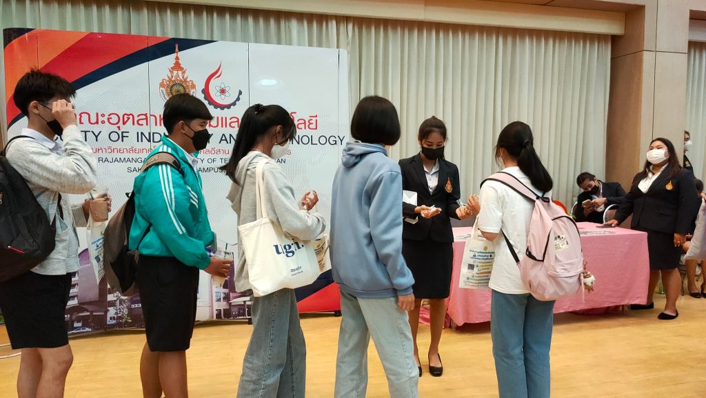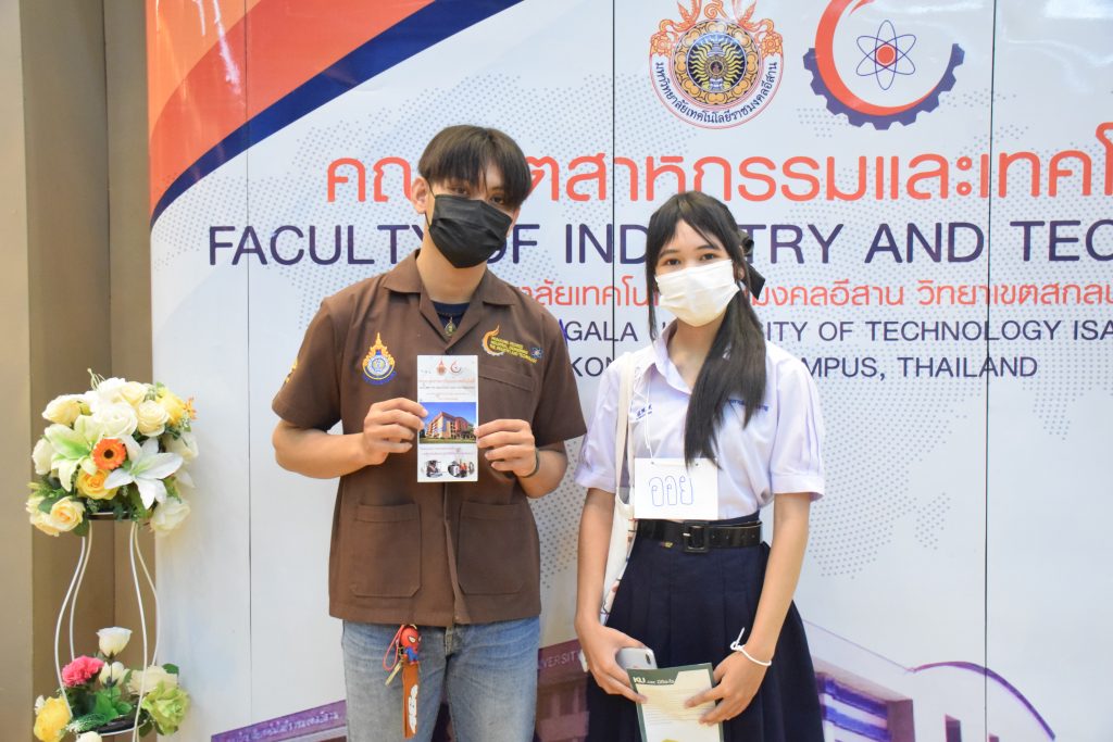 วันที่ 10 กรกฎาคม 2565 คณะอุตสาหกรรมและเทคโนโลยี มทร.อีสาน วิทยาเขตสกลนครนำโดย อาจารย์จารุวัฒน์ ถาวรไพศาลชีวะ รองคณบดีฝ่ายพัฒนานักศึกษา พร้อมเจ้าหน้าที่และนักศึกษาคณะอุตสาหกรรมและเทคโนโลยี เข้าร่วมประชาสัมพันธ์หลักสูตรในงาน Thailand Education Expo 2022 ณ มหาวิทยาลัยราชภัฏสกลนคร โดยสถาบัน wisdom V จัดกิจกรรมแนะแนวแก่นักเรียนระดับมัธยมศึกษา เพื่อเป็นข้อมูลในการตัดสินใจศึกษาต่อในระดับอุดมศึกษาตามความสนใจ และความถนัดของนักเรียนอย่างแท้จริงต่อไป