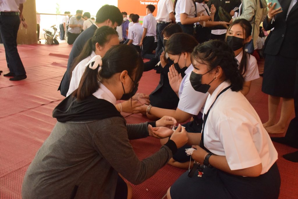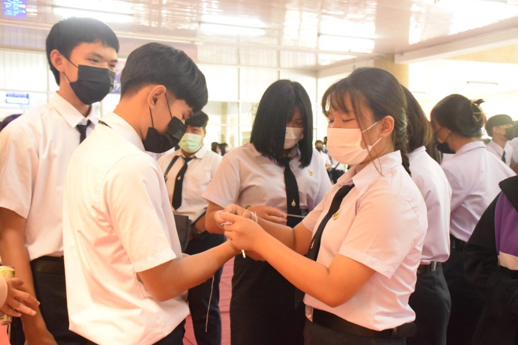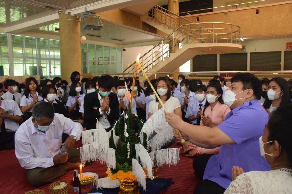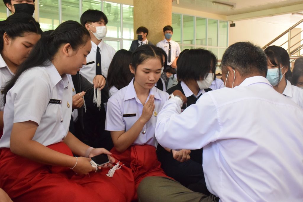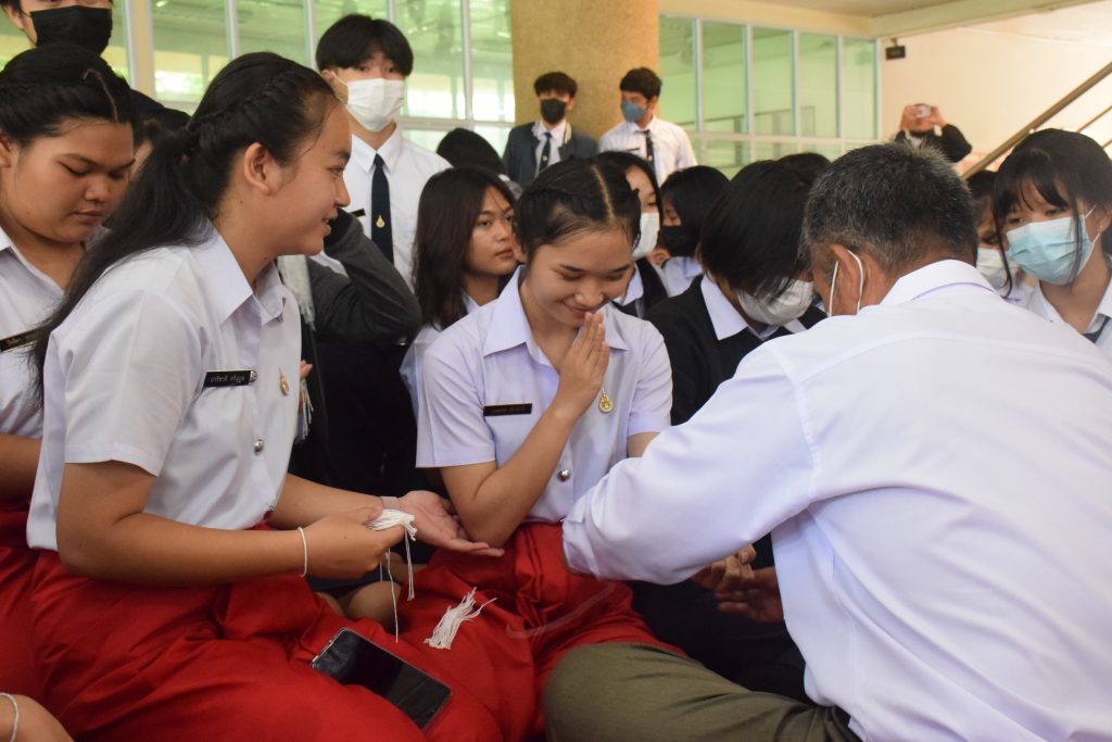 วันที่ 4 สิงหาคม 2565 โรงเรียนสาธิตเตรียมวิศวกรรมและเทคโนโลยี คณะอุตสาหกรรมและเทคโนโลยี จัดกิจกรรมบายศรีสู่ขวัญนักศึกษา ปีการศึกษา 2565 โดยมีวัตถุประสงค์เพื่อให้ความรู้เเละเเนวคิดในการอยู่ร่วมกับผู้อื่นในสังคม ส่งเสริมให้นักศึกษาได้แสดงออกซึ่งความรัก ความผูกพัน ความปรารถนาดีต่อกัน เเละยังเสริมสร้างความผูกพันธ์ระหว่าง นักศึกษา คณาจารย์ เเละมหาวิทยาลัยอีกด้วย โดยมีคณาจารย์ เจ้าหน้าที่ และนักศึกษาโรงเรียนสาธิตเตรียมวิศวกรรมและเทคโนโลยี เข้าร่วมกิจกรรมโดยพร้อมเพรียงกัน