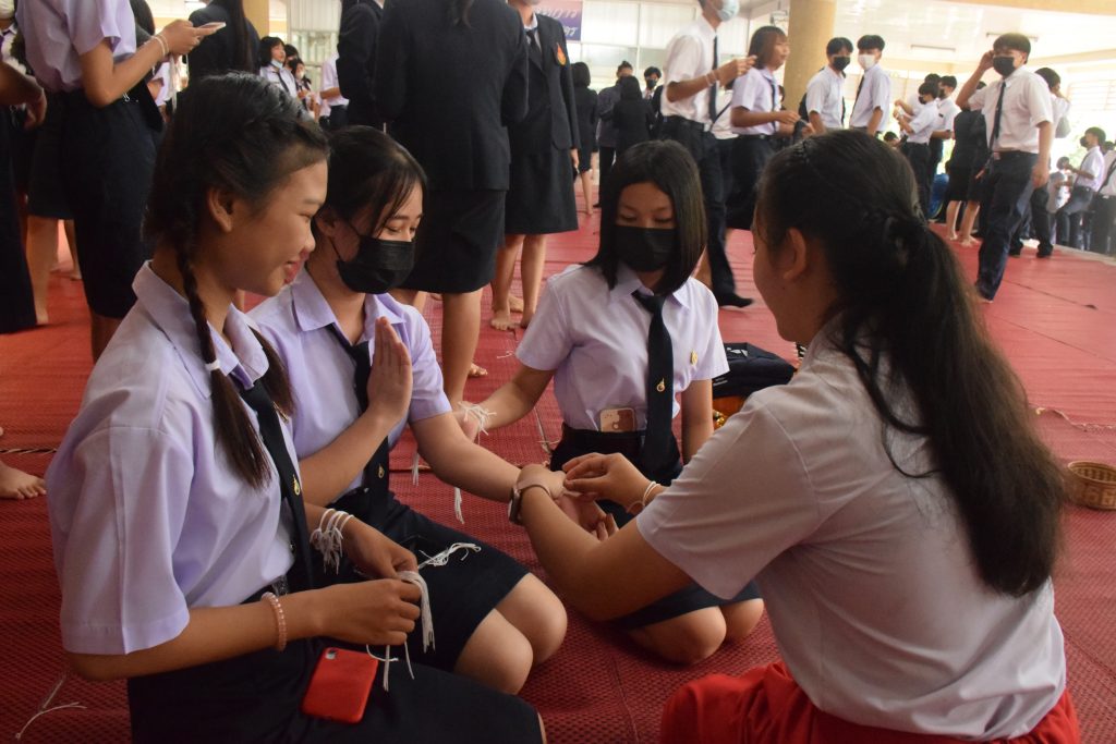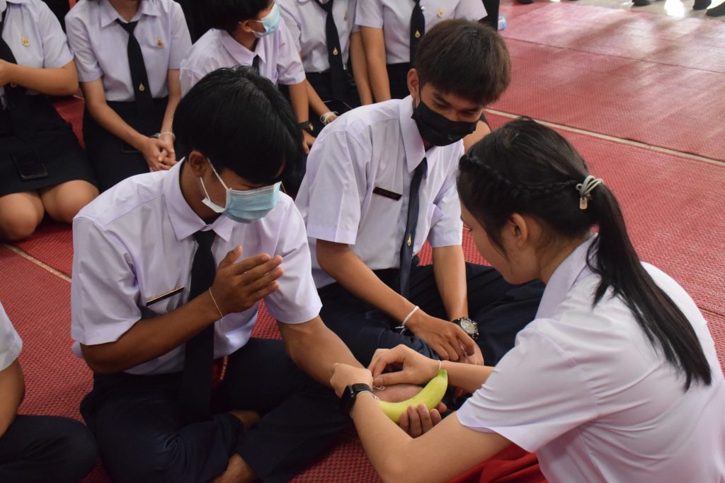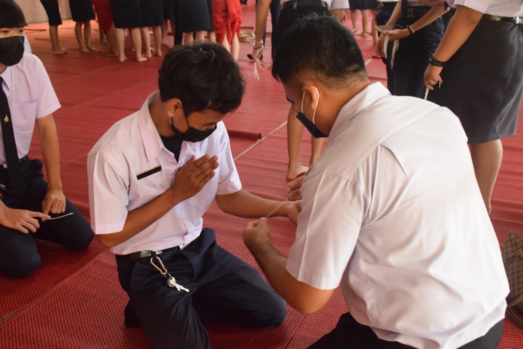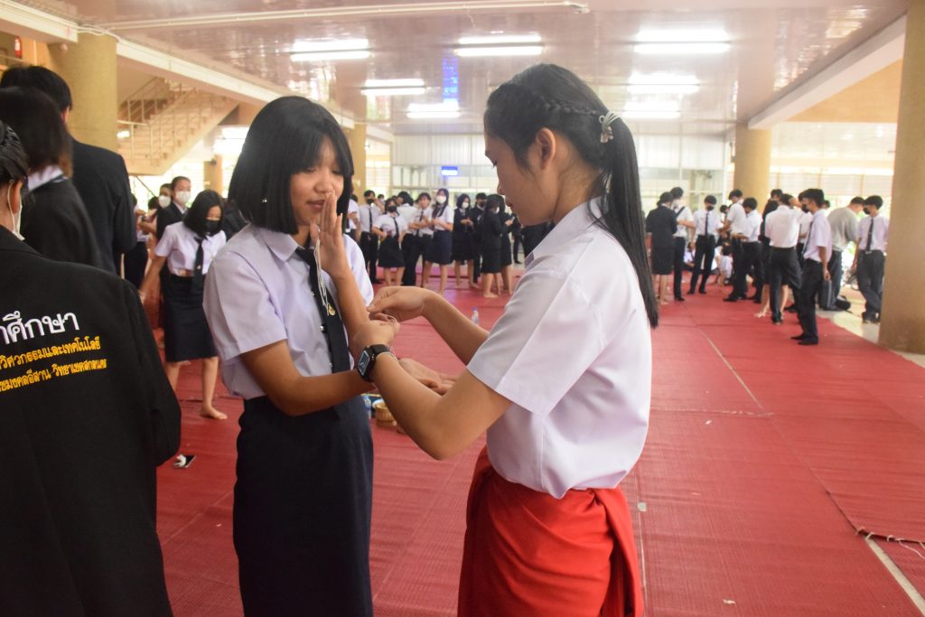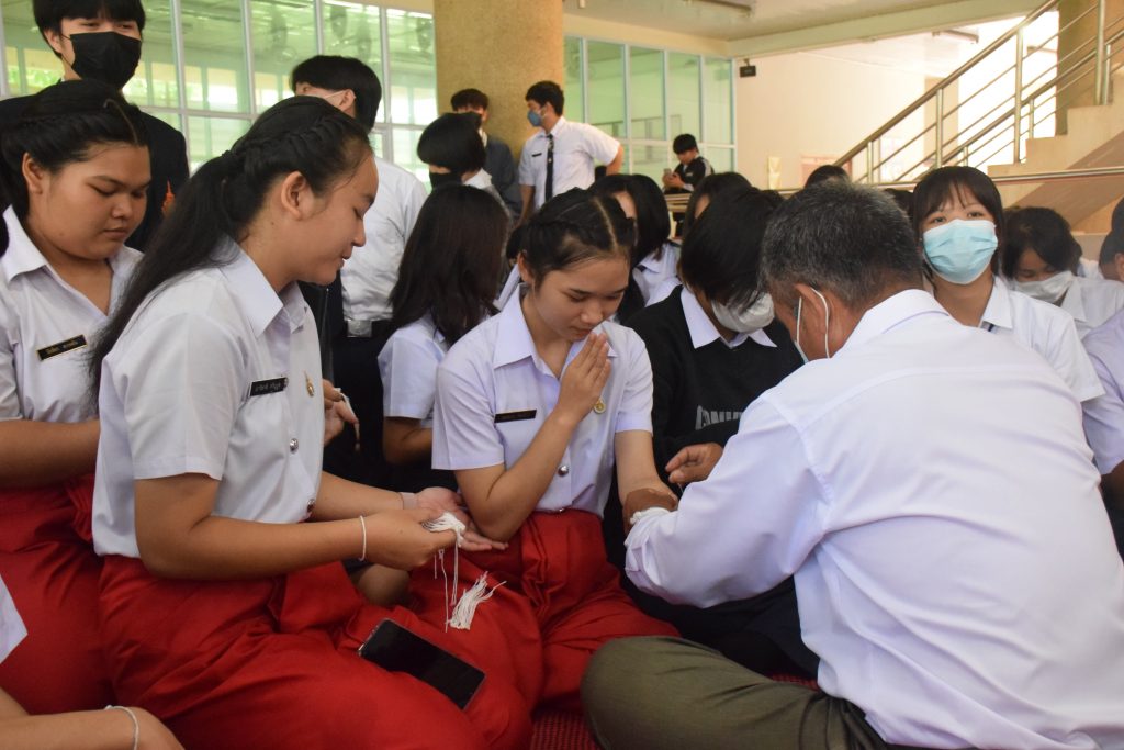 วันที่ 4 สิงหาคม 2565 โรงเรียนสาธิตเตรียมวิศวกรรมและเทคโนโลยี คณะอุตสาหกรรมและเทคโนโลยี จัดกิจกรรมบายศรีสู่ขวัญนักศึกษา ปีการศึกษา 2565 โดยมีวัตถุประสงค์เพื่อให้ความรู้เเละเเนวคิดในการอยู่ร่วมกับผู้อื่นในสังคม ส่งเสริมให้นักศึกษาได้แสดงออกซึ่งความรัก ความผูกพัน ความปรารถนาดีต่อกัน เเละยังเสริมสร้างความผูกพันธ์ระหว่าง นักศึกษา คณาจารย์ เเละมหาวิทยาลัยอีกด้วย โดยมีคณาจารย์ เจ้าหน้าที่ และนักศึกษาโรงเรียนสาธิตเตรียมวิศวกรรมและเทคโนโลยี เข้าร่วมกิจกรรมโดยพร้อมเพรียงกัน