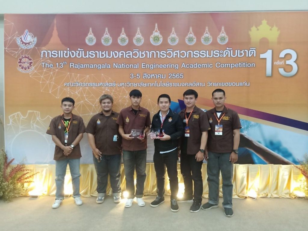 วันที่ 3 – 4 สิงหาคม 2565 คณะอุตสาหกรรมและเทคโนโลยี มทร.อีสาน วิทยาเขตสกลนคร เข้าร่วม การแข่งขันราชมงคลวิชาการวิศวกรรมระดับชาติครั้งที่ 13 ณ คณะวิศวกรรมศาสตร์ มทร.อีสาน วิทยาเขตขอนแก่น โดยสาขาวิศวกรรมโยธา นำทีมโดย อาจารย์พุฒิพัทธ์ ราชคำ อาจารย์ ดร.โกวิท บุญรอด พร้อมคณะ ได้รับรางวัลรองชนะเลิศอันดับ 1 การแข่งขันคอนกรีตกำลังสูงตามเป้าหมาย สาขาวิศวกรรมเครื่องกล นำทีมโดย อาจารย์เขตพงศ์ อินทรชัยศรี พร้อมคณะ ได้รับรางวัลรองชนะเลิศ อันดับ 2 การแข่งขันควบคุมแขนกลอุตสาหกรรม สาขาวิศวกรรมไฟฟ้า นำทีมโดย อาจารย์ ดร.อรรคชัย ภูผานิล พร้อมคณะ ได้รับรางวัลชมเชย การแข่งขันหุ่นยนต์เคลื่อนที่อัตโนมัติด้วยระบบวิชั่น สาขาวิศวกรรมอุตสาหการ นำทีมโดย อาจารย์ณพรรตศกร จรทอง พร้อมคณะ ได้รับรางวัลชมเชย การแข่งขันงานมาตรวิทยาด้านมิติ
