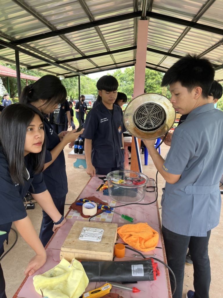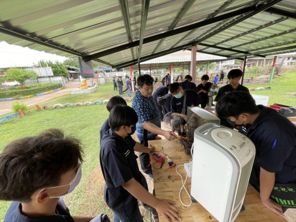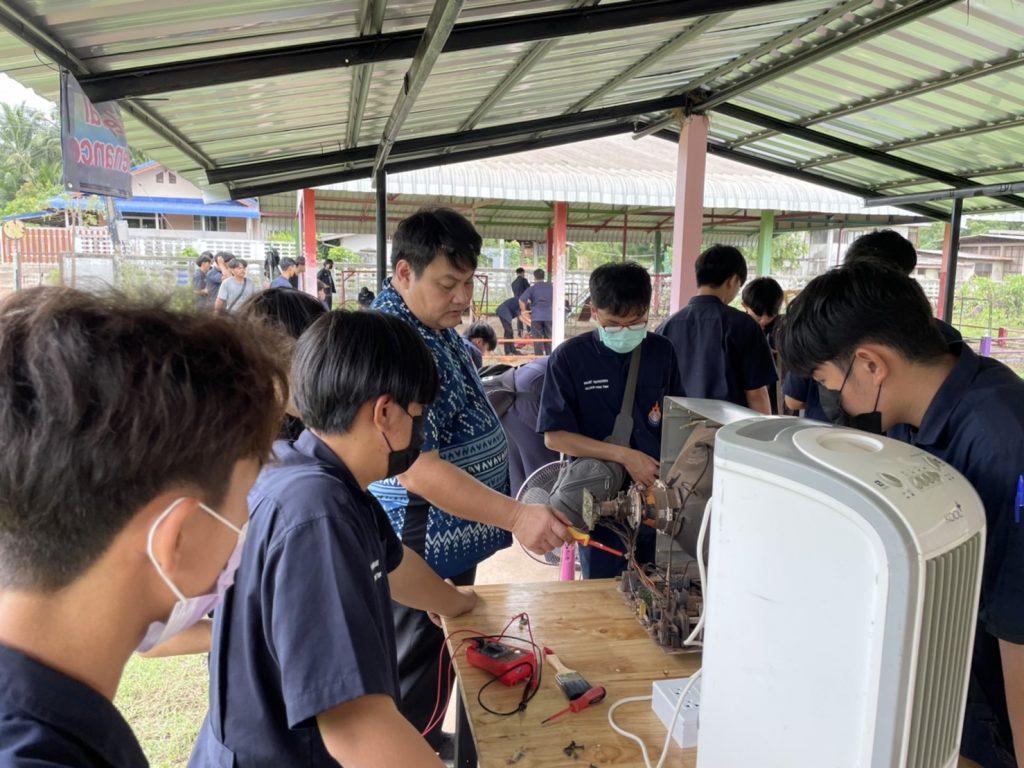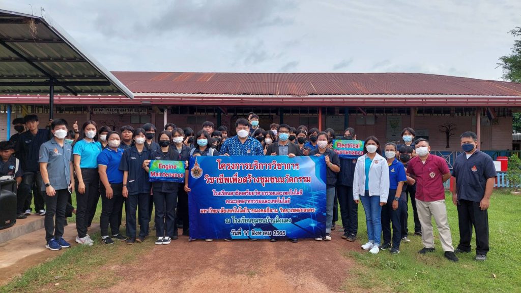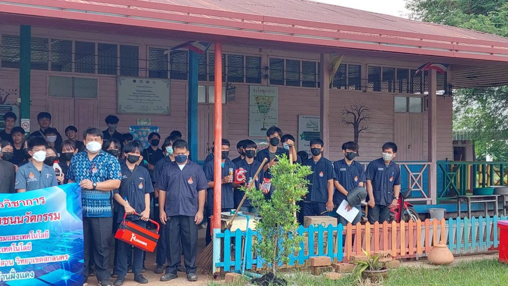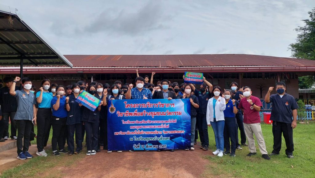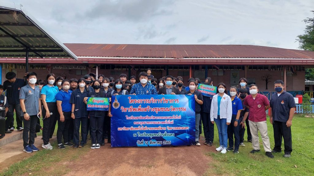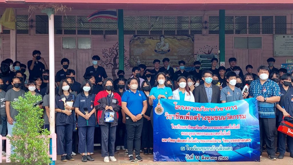 วันที่ 11 สิงหาคม 2565 โรงเรียนสาธิตเตรียมวิศวกรรมและเทคโนโลยี คณะอุตสาหกรรมและเทคโนโลยี มทร.อีสาน วิทยาเขตสกลนคร จัดโครงการบริการวิชาการวิชาชีพเพื่อสร้างชุมชนนวัตกรรม ณ โรงเรียนชุมชนบ้านฝั่งแดง ตำบลไฮหย่อง อำเภอพังโคน จังหวัดสกลนคร โดยมีวัตถุประสงค์เพื่อพัฒนาทักษะด้านวิชาการและวิชาชีพของนักศึกษา สามารถนำความรู้ที่ได้ไปถ่ายทอดให้ความรู้แก่ชุมชนในการดูเเลรักษา และซ่อมบำรุงเครื่องมืออุปกรณ์เครื่องใช้ไฟฟ้าในครัวเรื่อน เพื่อช่วยยืดอายุการใช้งานของเครื่องใช้ไฟฟ้า นำไปสู่การลดค่าใช้จ่ายในครัวเรือนให้กับชุมชนอีกด้วย ในการนี้ อาจารย์จารุวัฒน์ ถาวรไพศาลชีวะ รองคณบดีฝ่ายพัฒนานักศึกษา ให้เกียรติเป็นประธานในพิธีเปิดโครงการครั้งนี้ โดยมีนักศึกษาเข้าร่วมโครงการจำนวน 160 คน