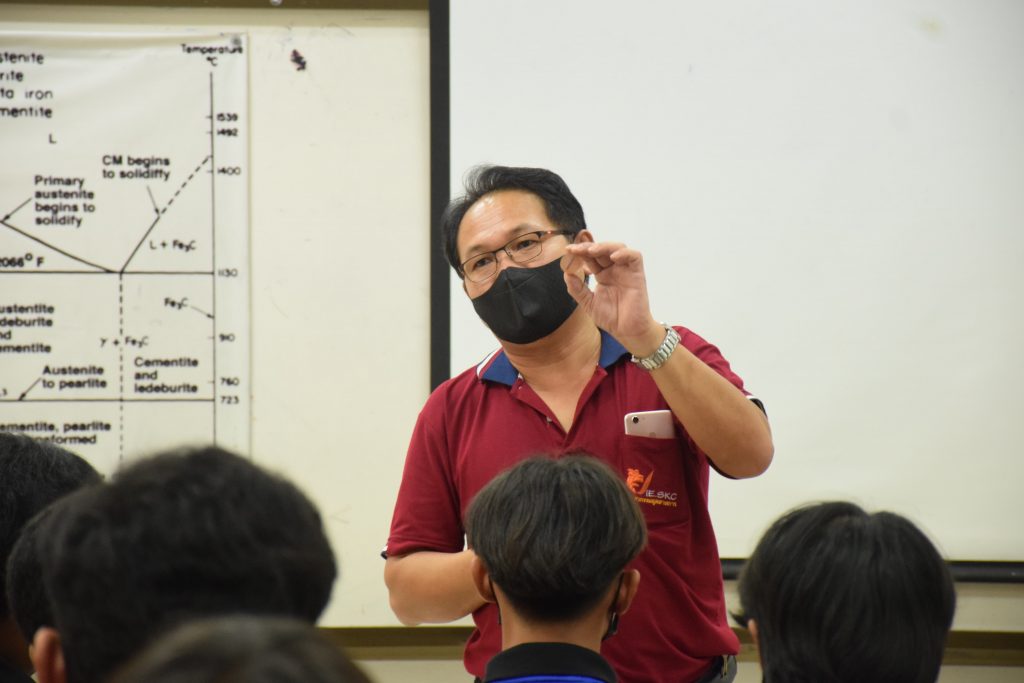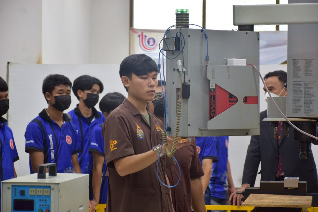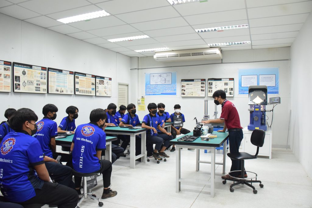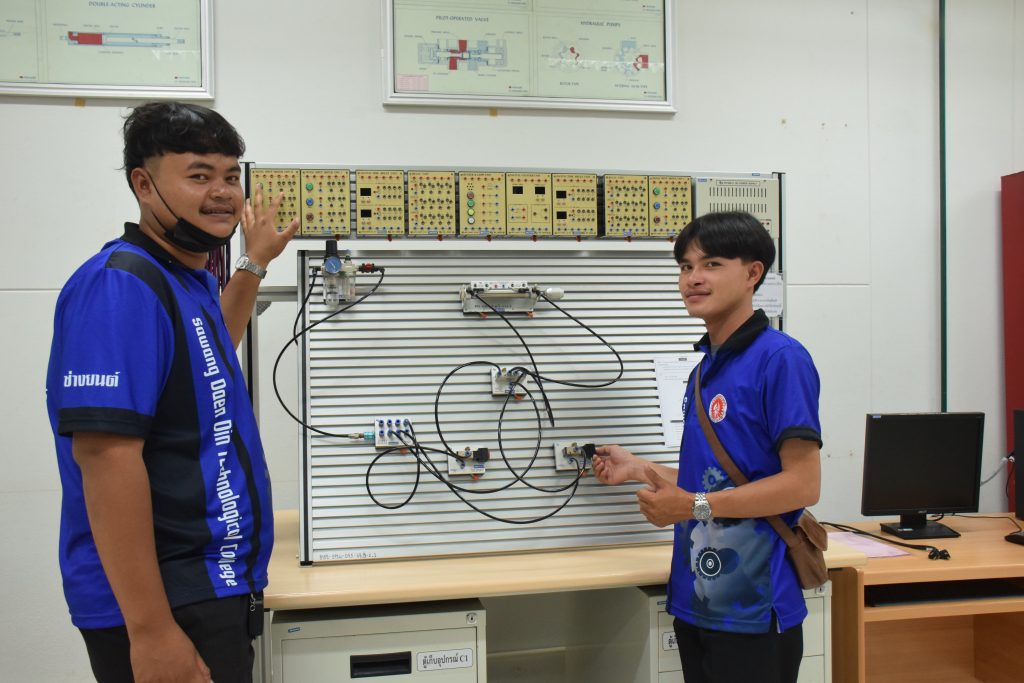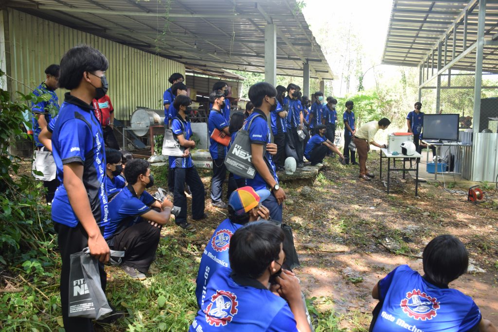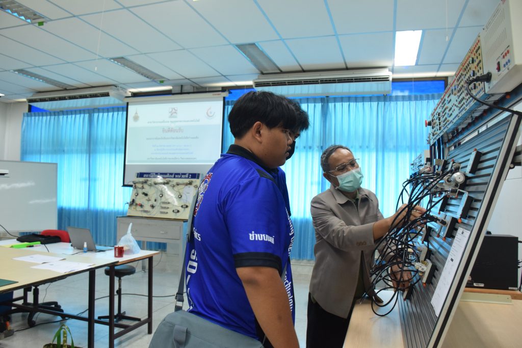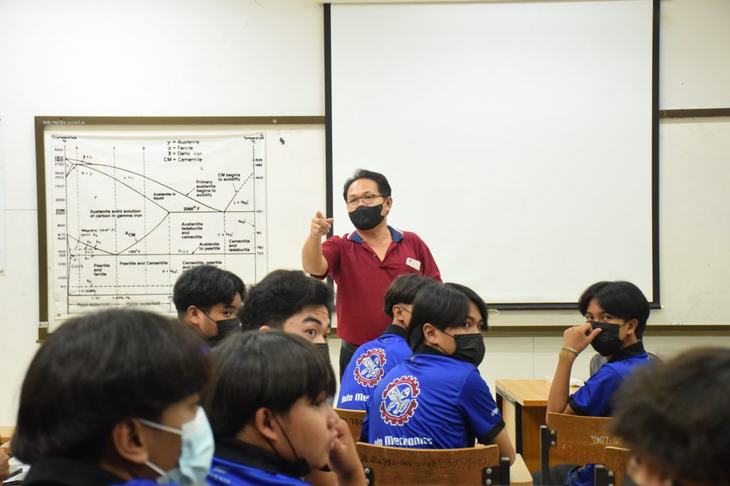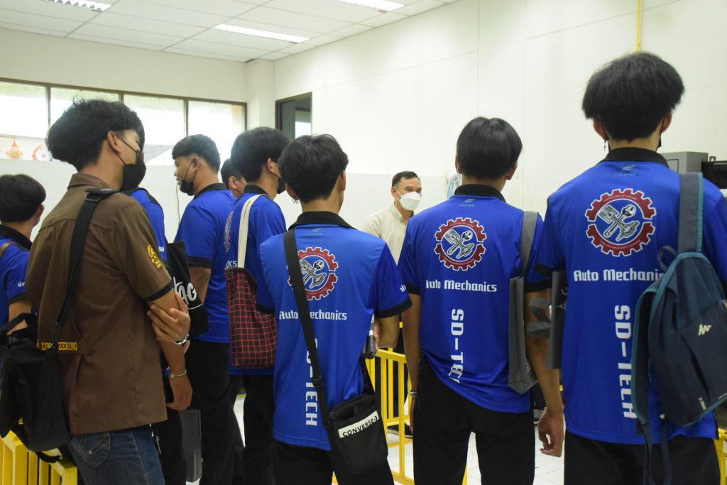 วันที่ 23 สิงหาคม 2565 คณะอุตสาหกรรมและเทคโนโลยี นำโดย ผศ.ดร.สุริยา แก้วอาษา คณบดีคณะอุตสาหกรรมและเทคโนโลยี พร้อมด้วยผู้บริหาร คณาจารย์ และเจ้าหน้าที่ ร่วมต้อนรับคณะศึกษาดูงานจากวิทยาลัยเทคโนโลยีสว่างแดนดิน จำนวน 217 คน ในโอกาสเข้าศึกษาดูงาน ณ สาขาวิศวกรรมเครื่องกล และสาขาวิศวกรรมอุตสาหการ เพื่อให้นักศึกษาได้รับความรู้ ได้ฝึกปฏิบัติ ได้รับประสบการณ์จากแหล่งเรียนรู้ใหม่ๆ โดยทางคณะได้แบ่งฐานการเรียนรู้ออกเป็น 8 ฐาน ประกอบด้วย ฐานที่ 1 ห้องปฏิบัติงานเครื่องจักรอัตโนมัติ ฐานที่ 2 ห้องปฏิบัติการการกระแทก ฐานที่ 3 โรงกลั่นน้ำมันหอมระเหย ฐานที่ 4 ห้องปฏิบัติการโลหะวิทยา ฐานที่ 5 ห้องปฏิบัติงานวัดละเอียด ฐานที่ 6 ห้องปฏิบัติงานทดสอบวัสดุ ฐานที่ 7 ห้องปฏิบัติการนิวเเมติกส์ และ ฐานที่ 8 ห้องปฎิบัติการหุ่นยนต์อุตสาหกรรม โดยในแต่ละฐานจะมีอาจารย์ประจำฐานบรรยายให้ความรู้ พร้อมทั้งให้นักศึกษาได้ทดลองฝึกปฏิบัติอีกด้วย