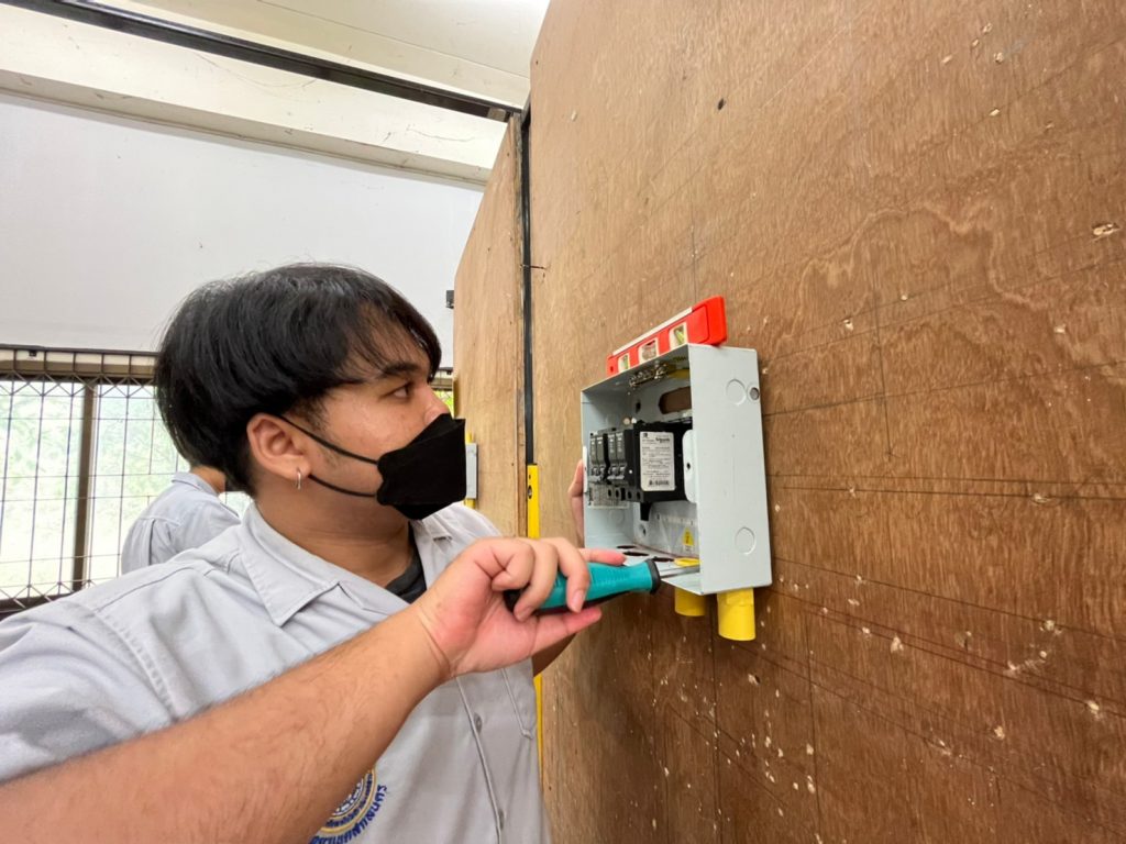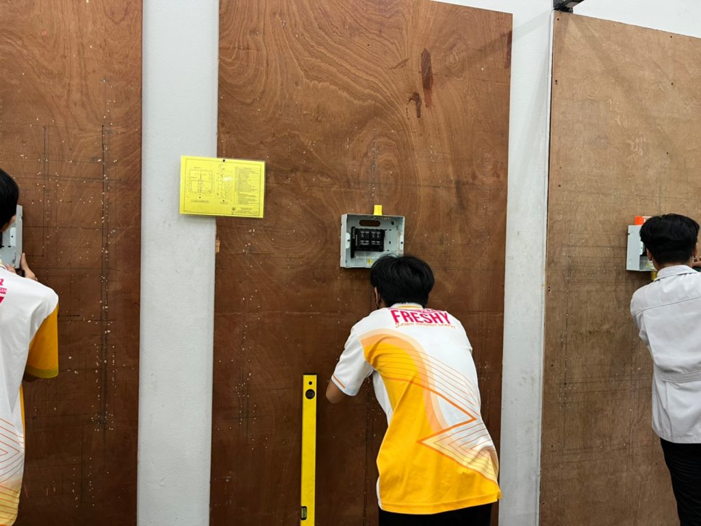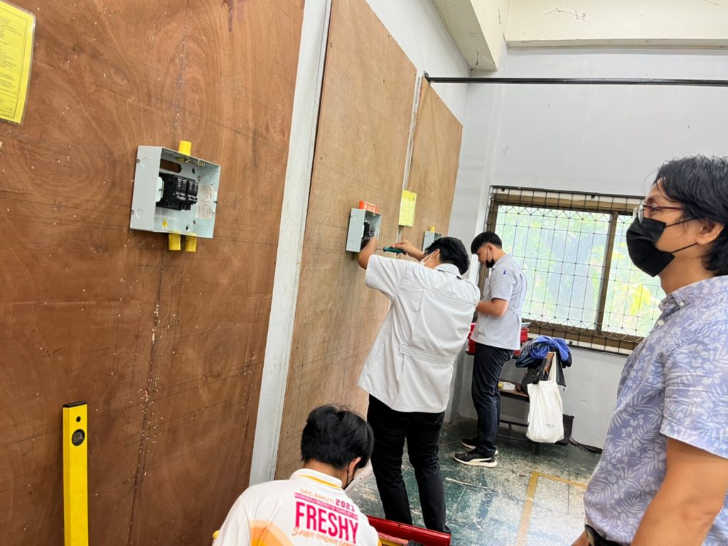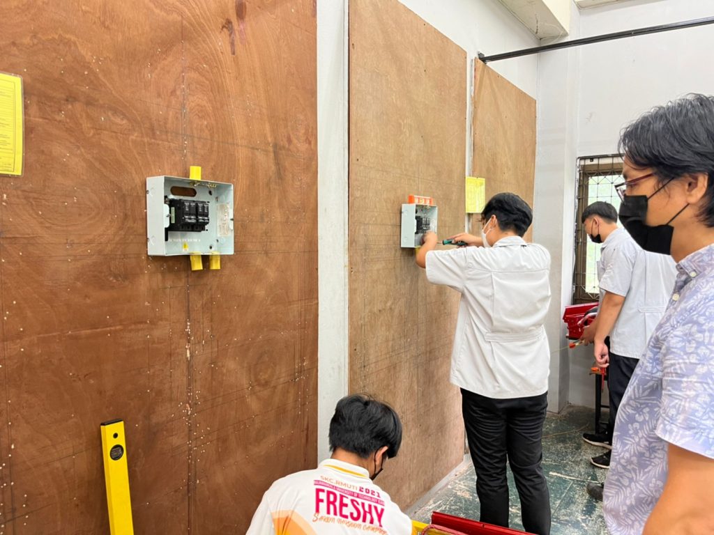 วันที่ 19 – 21 สิงหาคม 2565 สาขาวิศวกรรมไฟฟ้า คณะอุตสาหกรรมและเทคโนโลยี มทร.อีสาน วิทยาเขตสกลนคร จัดโครงการอบรมเชิงปฏิบัติการช่างไฟฟ้าภายในอาคารเพื่อทดสอบมาตรฐานฝีมือแรงงานและความปลอดภัยในการทำงาน ณ อาคารสาขาวิศวกรรมไฟฟ้า คณะอุตสาหกรรมและเทคโนโลยี โดยมีวัตถุประสงค์เพื่อให้นักศึกษาได้รับความรู้และทักษะเพื่อนำไปสู่การทดสอบมาตรฐานฝีมือแรงงาน การขอหนังสือรับรองความรู้ความสามารถ และความรู้ด้านความปลอดภัยในการทำงาน โดยได้รับเกียรติจาก ผศ.คมกฤษณ์ ศรีสุวรรณ์ อาจารย์รัก สกลุพงศ์ อาจารย์เจษฏา พรหมเกษ อาจารย์เมธา ทัศคร อาจารย์ภานุมาศ แสนพวง อาจารย์ประจำสาขาวิศวกรรมไฟฟ้า เป็นวิทยากร โดยมีนักศึกษาเข้าร่วมโครงการจำนวน 60 คน