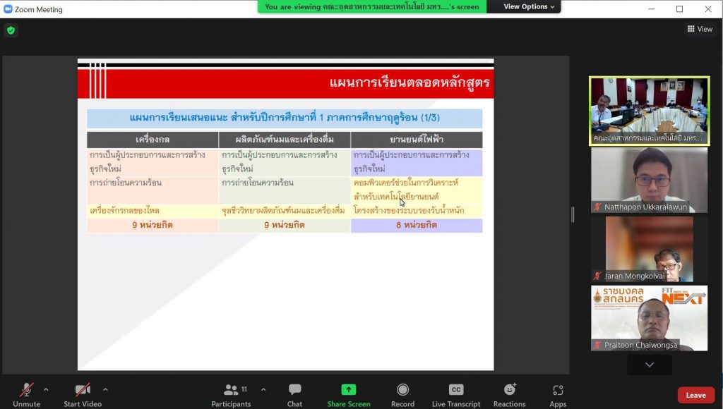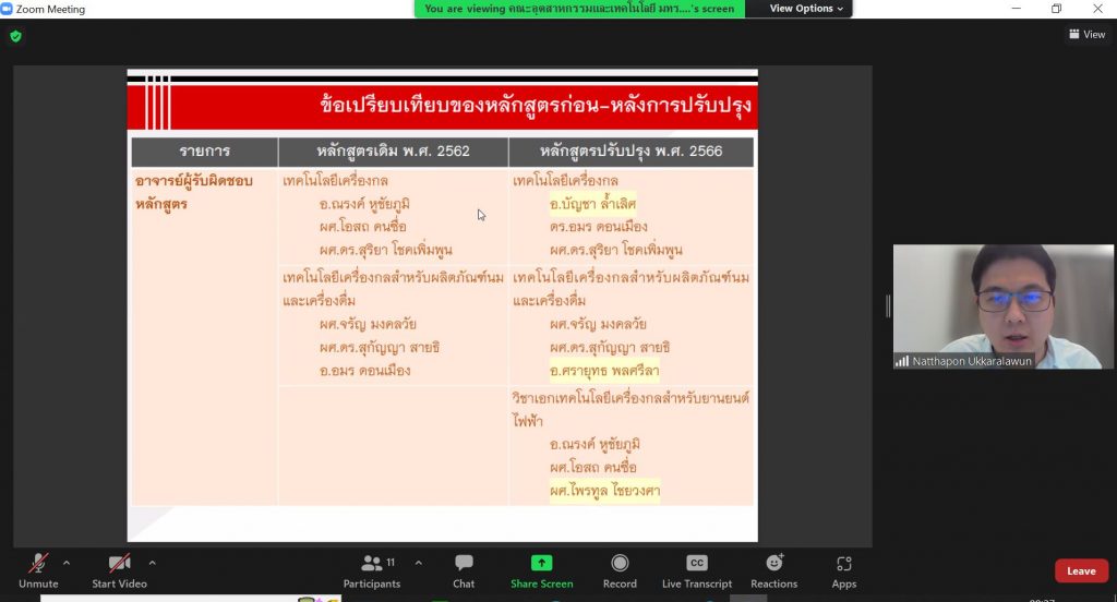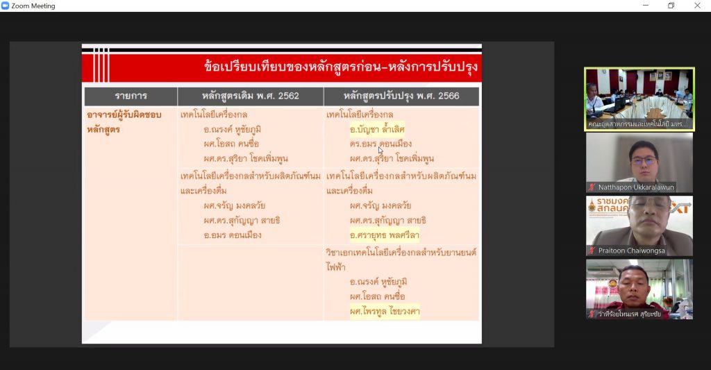 วันที่ 30 สิงหาคม 2565 คณะอุตสาหกรรมและเทคโนโลยี มทร.อีสานวิทยาเขตสกลนคร จัดโครงการพัฒนาหลักสูตรและการขอรับรองหลักสูตร กิจกรรมที่ 1 การพัฒนายกร่างหลักสูตรอุตสาหกรรมศาสตรบัณฑิต สาขาวิชาเทคโนโลยีเครื่องกล (ต่อเนื่อง) หลักสูตรปรับปรุง พ.ศ.2566 ผ่านระบบออนไลน์ (Zoom Meeting) ณ ห้องประชุมสำนักงานคณบดีคณะอุตสาหกรรมและเทคโนโลยี โดยมีวัตถุประสงค์เพื่อร่วมพัฒนา และปรับปรุงหลักสูตรให้มีโครงสร้างหลักสูตร เนื้อหารายวิชาสอดคล้องกับเกณฑ์มาตรฐานหลักสูตร นำไปสู่การพัฒนาปรับปรุงในการวิพากษ์หลักสูตรต่อไป โดยมีคณะกรรมการผู้ทรงคุณวุฒิ และผู้รับผิดชอบหลักสูตรเข้าร่วมโครงการโดยพร้อมเพรียงกัน ในการนี้ ผศ.ดร.พรเทพ ปัญญาแก้ว รองคณบดีฝ่ายวิชาการและวิจัย ให้เกียรติเป็นประธานในพิธี พร้อมกล่าวต้อนรับคณะกรรมการผู้ทรงคุณวุฒิ และผู้เข้าร่วมโครงการ