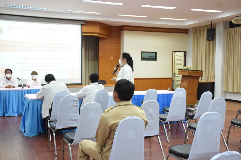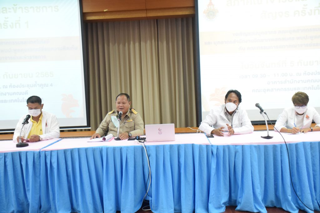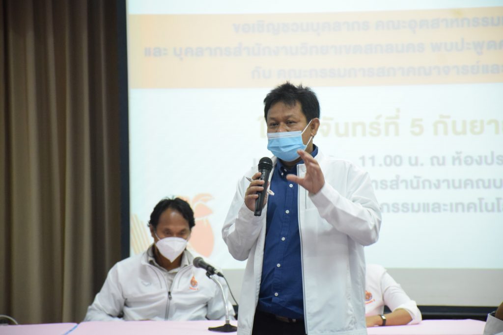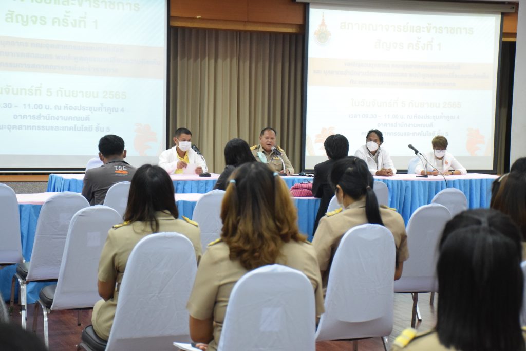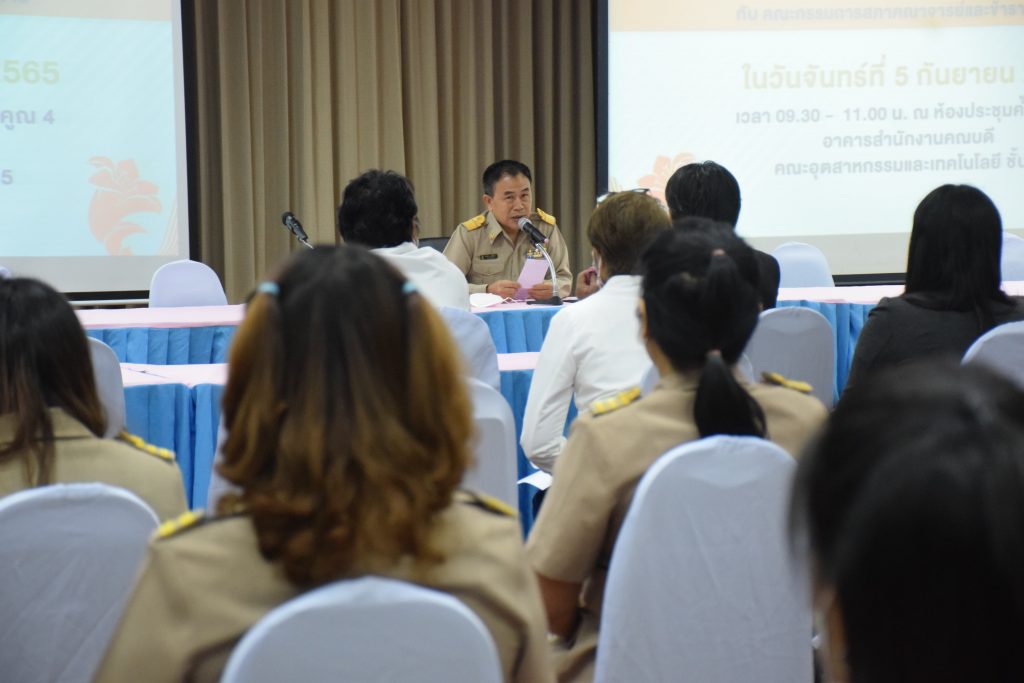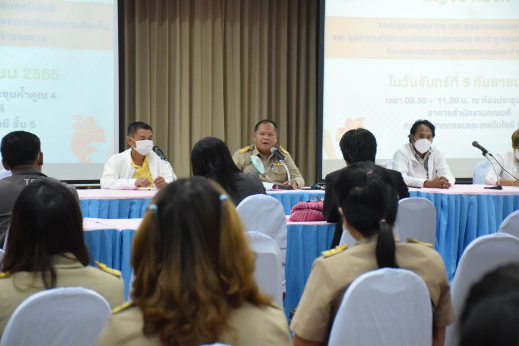 วันที่ 5 กันยายน 2565 คณะอุตสาหกรรมและเทคโนโลยี มทร.อีสาน วิทยาเขตสกลนคร นำโดย อาจารย์ ดร.เสกสรร พลสุวรรณ รองคณบดีฝ่ายบริหาร พร้อมด้วยผู้บริหาร คณาจารย์ และบุคลากรเข้าร่วมการประชุมสภาคณาจารย์และข้าราชการสัญจร ครั้งที่ 1 ณ ห้องประชุมค้ำคูณ 4 อาคารสำนักงานคณบดีคณะอุตสาหกรรมและเทคโนโลยี เพื่อพบปะพูดคุยแลกเปลี่ยนความคิดเห็นเเนวทางการพัฒนาองค์กร ในโอกาสนี้ ผศ.อัมพร ภูศรีฐาน ผู้ช่วยอธิการบดี ให้เกียรติเป็นประธานในที่ประชุม พร้อมกล่าวต้อนรับ ผศ.ดร.สมชาติ ดีอุดม ประธานสภาคณาจารย์ พร้อมด้วยข้าราชการ คณะกรรมการ และผู้เข้าร่วมประชุม
