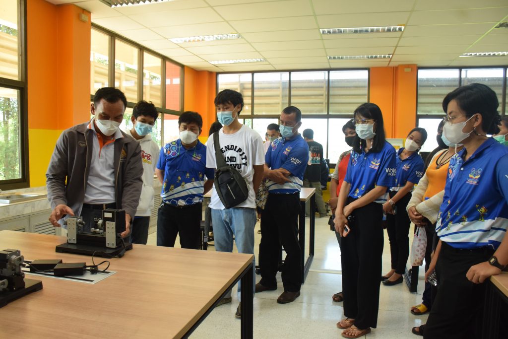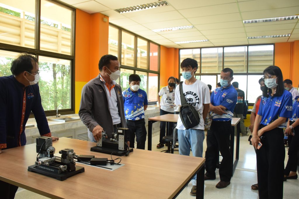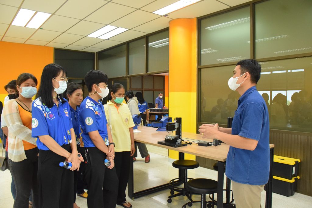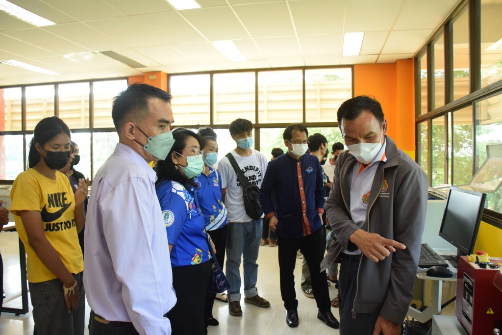 วันที่ 6 กันยายน 2565 คณะอุตสาหกรรมและเทคโนโลยี มทร.อีสาน วิทยาเขตสกลนคร นำโดย ผศ.ดร.สุริยา แก้วอาษา คณบดีคณะอุตสาหกรรมและเทคโนโลยี พร้อมด้วยผู้บริหาร คณาจารย์ และเจ้าหน้าที่ ร่วมต้อนรับคณาจารย์และนักศึกษา จากศูนย์การศึกษานอกระบบและการศึกษาตามอัธยาศัยอำเภอพังโคน จังหวัดสกลนคร เข้าศึกษาดูงานคณะอุตสาหกรรมและเทคโนโลยี ภายใต้โครงการส่งเสริมเวทีและประชาคมเพื่อการจัดทำรูปแบบและเเนวทางการพัฒนาหลักสูตรต่อเนื่องเชื่อมโยงหลักสูตรการศึกษาขั้นพื้นฐานกับอาชีวศึกษาและอุดมศึกษา ประจำปีงบประมาณ 2565 โดยได้เข้าเยี่ยมชมห้องปฎิบัติการสร้างต้นแบบนวัตกรรม ห้องปฏิบัติการระบบราง ณ อาคารสำนักงานคณบดีคณะอุตสาหกรรมและเทคโนโลยี