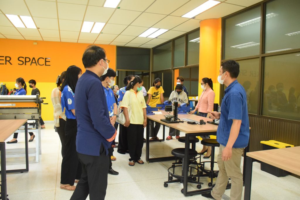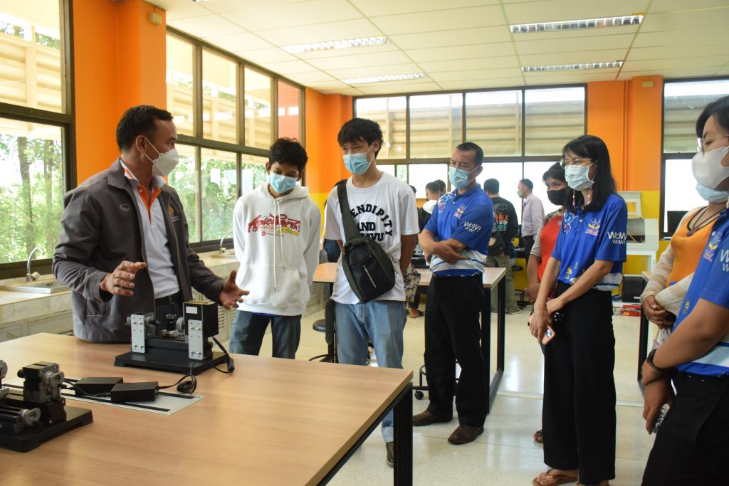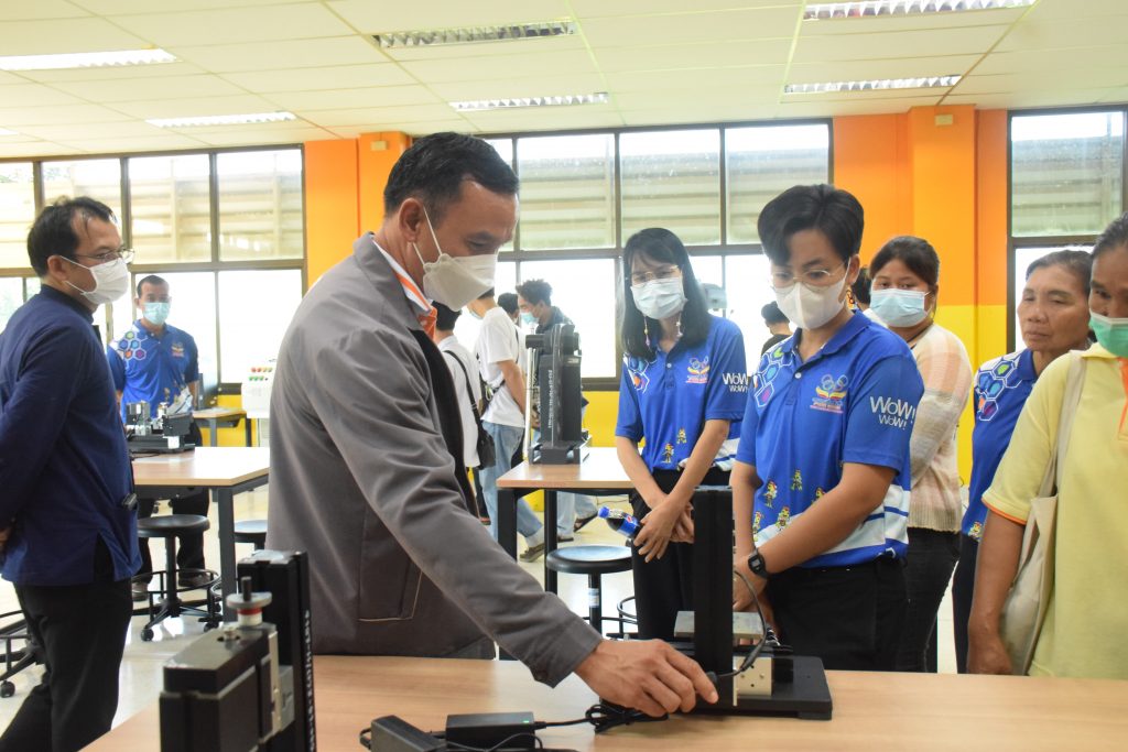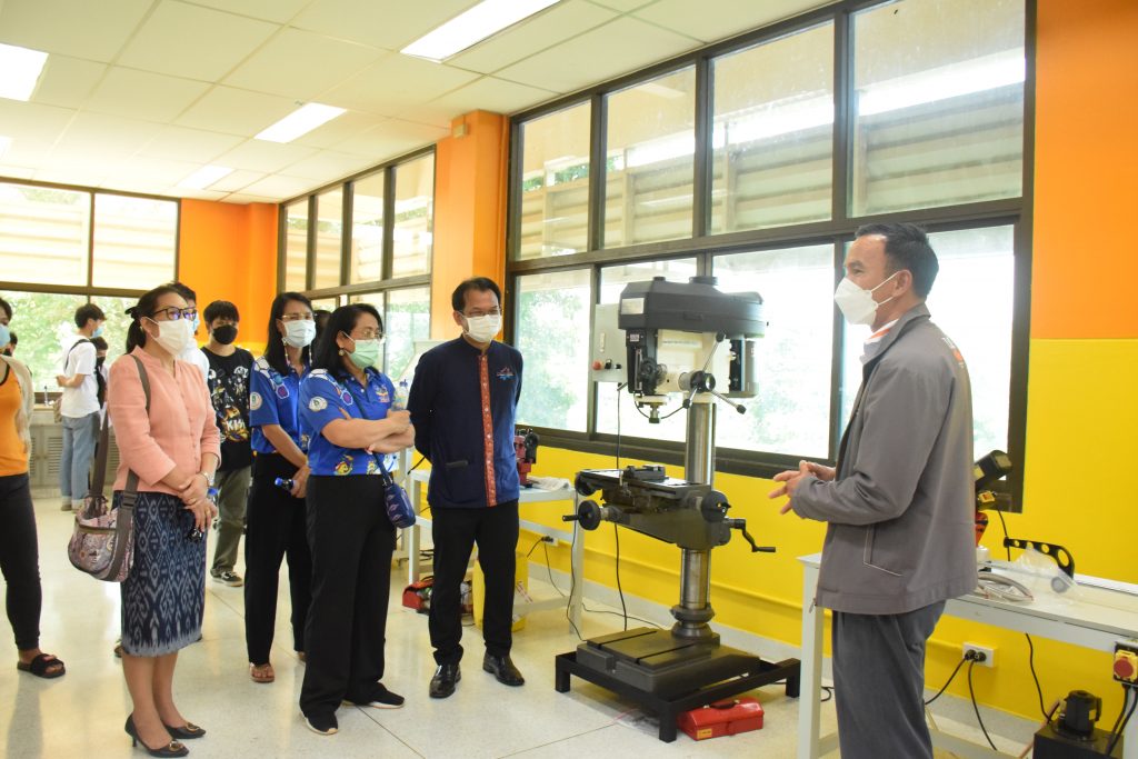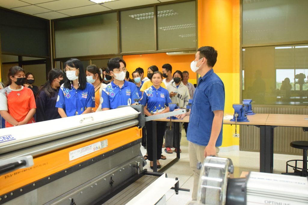 วันที่ 6 กันยายน 2565 คณะอุตสาหกรรมและเทคโนโลยี มทร.อีสาน วิทยาเขตสกลนคร นำโดย ผศ.ดร.สุริยา แก้วอาษา คณบดีคณะอุตสาหกรรมและเทคโนโลยี พร้อมด้วยผู้บริหาร คณาจารย์ และเจ้าหน้าที่ ร่วมต้อนรับคณาจารย์และนักศึกษา จากศูนย์การศึกษานอกระบบและการศึกษาตามอัธยาศัยอำเภอพังโคน จังหวัดสกลนคร เข้าศึกษาดูงานคณะอุตสาหกรรมและเทคโนโลยี ภายใต้โครงการส่งเสริมเวทีและประชาคมเพื่อการจัดทำรูปแบบและเเนวทางการพัฒนาหลักสูตรต่อเนื่องเชื่อมโยงหลักสูตรการศึกษาขั้นพื้นฐานกับอาชีวศึกษาและอุดมศึกษา ประจำปีงบประมาณ 2565 โดยได้เข้าเยี่ยมชมห้องปฎิบัติการสร้างต้นแบบนวัตกรรม ห้องปฏิบัติการระบบราง ณ อาคารสำนักงานคณบดีคณะอุตสาหกรรมและเทคโนโลยี