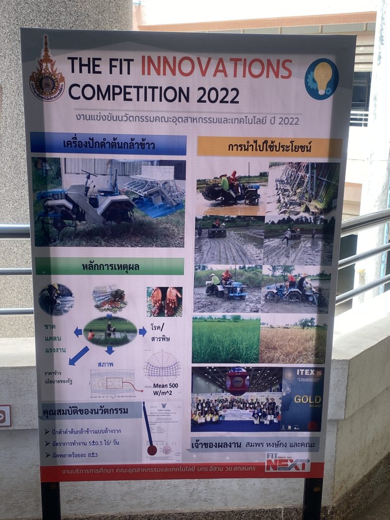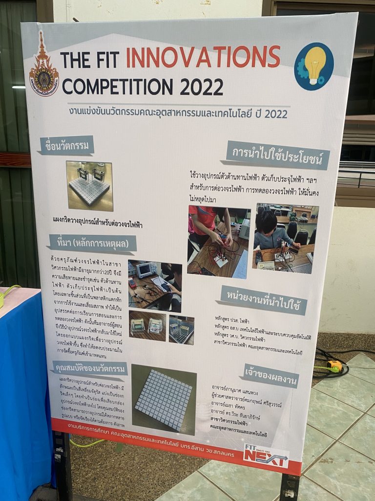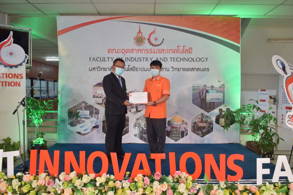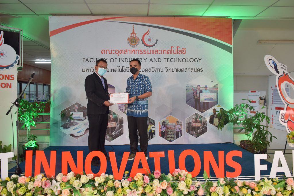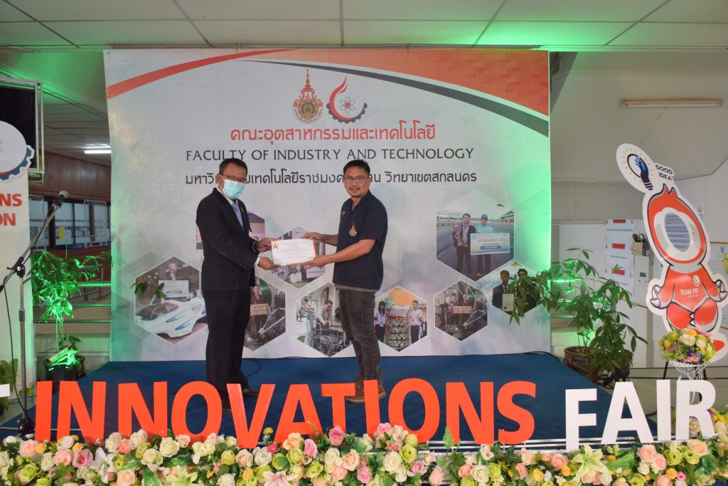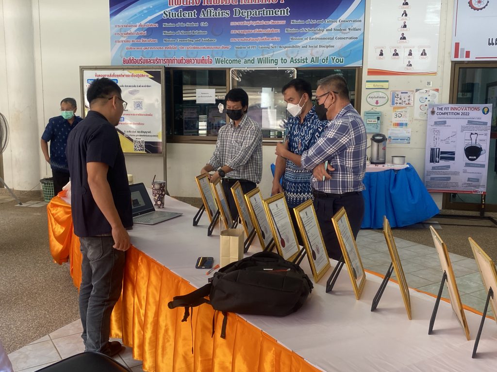 วันที่ 8 กันยายน 2565 คณะอุตสาหกรรมและเทคโนโลยี จัดโครงการแข่งขันสิ่งประดิษฐ์ นวัตกรรมและงานสร้างสรรค์ คณะอุตสาหกรรมและเทคโนโลยี (The FIT Innovations Competition 2022) โดยมีวัตถุประสงค์เพื่อเป็นการส่งเสริมและสร้างแรงบันดาลใจให้กับทั้งบุคลากรและนักศึกษาในการสร้างสิ่งประดิษฐ์ นวัตกรรมและงานสร้างสรรค์ รวมทั้งเป็นการยกย่องชมเชย สร้างขวัญและกำลังใจให้กับบุคลากรที่สร้างสรรค์นวัตกรรมให้กับมหาวิทยาลัย สร้างคุณประโยชน์ต่อสังคม โดยมีบุคลากรส่งผลงานเข้าร่วมแข่งขันกว่า 20 ผลงาน ทั้งผลงานที่ได้รับการจดสิทธิบัตร อนุสิทธิบัตร ลิขสิทธิ์ และผลงานที่นำไปใช้ประโยชน์ตามคลัสเตอร์มหาวิทยาลัยฯ ในการนี้ ผศ.น.สพ.ดร.ชเวง สารคล่อง รองอธิการบดีประจำวิทยาเขตสกลนคร ให้เกียรติเป็นประธานในพิธีเปิดและมอบรางวัลให้กับนวัตกรที่ได้รับรางวัลในครั้งนี้ด้วย
