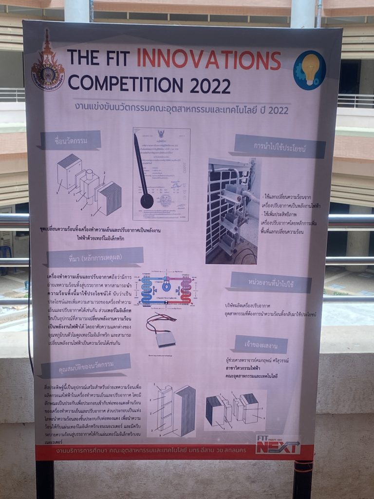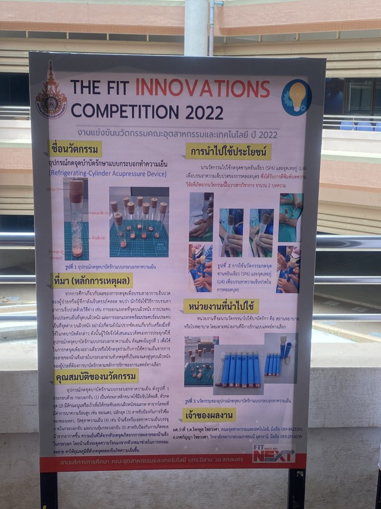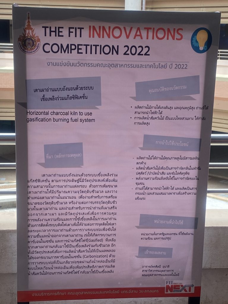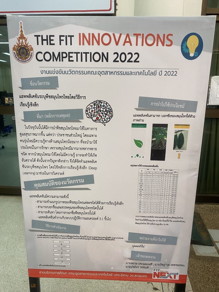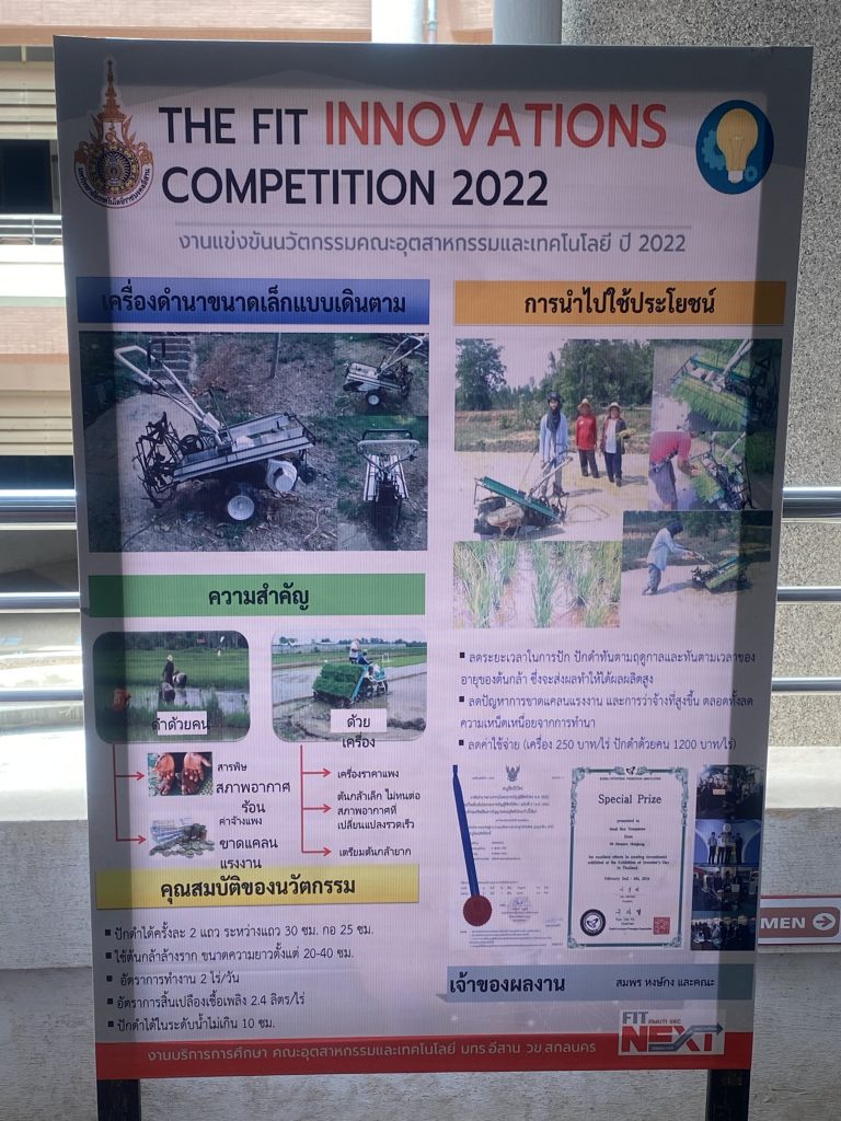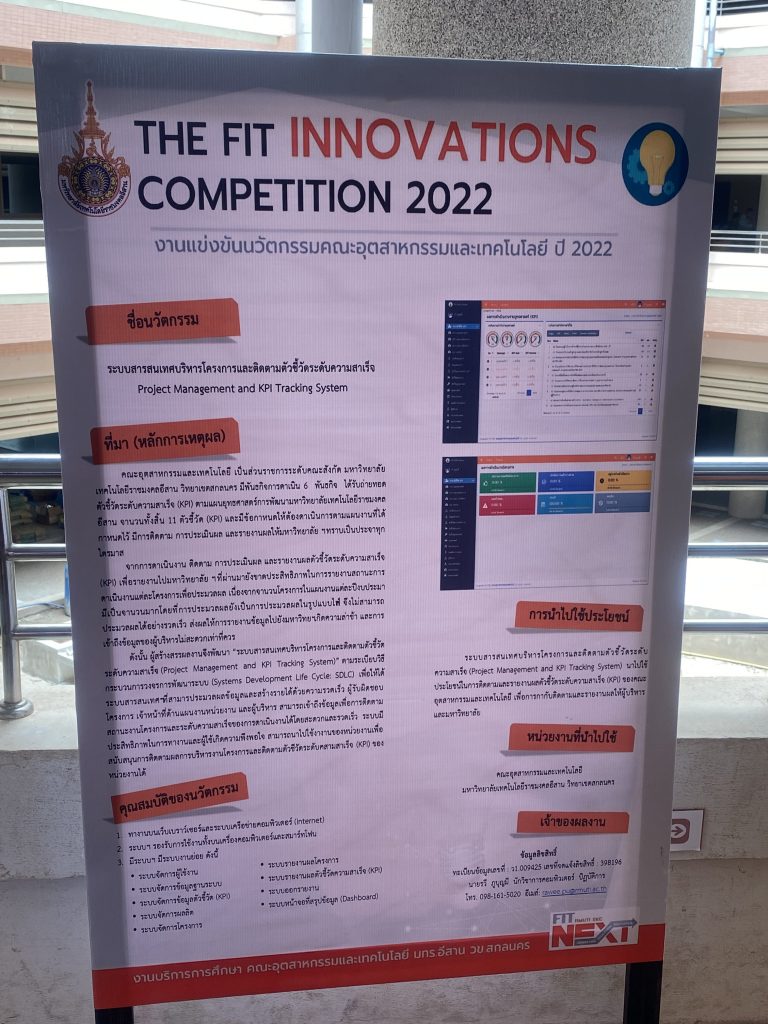 วันที่ 8 กันยายน 2565 คณะอุตสาหกรรมและเทคโนโลยี จัดโครงการแข่งขันสิ่งประดิษฐ์ นวัตกรรมและงานสร้างสรรค์ คณะอุตสาหกรรมและเทคโนโลยี (The FIT Innovations Competition 2022) โดยมีวัตถุประสงค์เพื่อเป็นการส่งเสริมและสร้างแรงบันดาลใจให้กับทั้งบุคลากรและนักศึกษาในการสร้างสิ่งประดิษฐ์ นวัตกรรมและงานสร้างสรรค์ รวมทั้งเป็นการยกย่องชมเชย สร้างขวัญและกำลังใจให้กับบุคลากรที่สร้างสรรค์นวัตกรรมให้กับมหาวิทยาลัย สร้างคุณประโยชน์ต่อสังคม โดยมีบุคลากรส่งผลงานเข้าร่วมแข่งขันกว่า 20 ผลงาน ทั้งผลงานที่ได้รับการจดสิทธิบัตร อนุสิทธิบัตร ลิขสิทธิ์ และผลงานที่นำไปใช้ประโยชน์ตามคลัสเตอร์มหาวิทยาลัยฯ ในการนี้ ผศ.น.สพ.ดร.ชเวง สารคล่อง รองอธิการบดีประจำวิทยาเขตสกลนคร ให้เกียรติเป็นประธานในพิธีเปิดและมอบรางวัลให้กับนวัตกรที่ได้รับรางวัลในครั้งนี้ด้วย