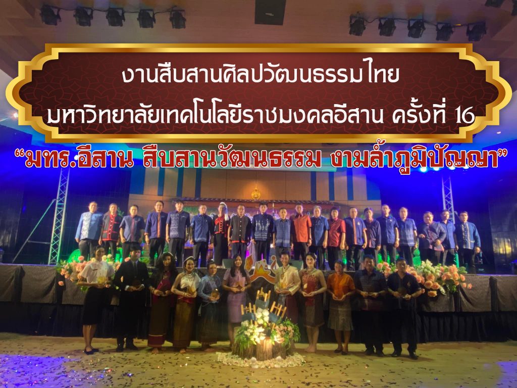 วันที่ 8-9 กันยายน 2565 คณะอุตสาหกรรมและเทคโนโลยี นำโดย ผศ. ดร.สุริยา แก้วอาษา คณบดี คณะอุตสาหกรรมและเทคโนโลยี พร้อมด้วยผู้บริหาร คณาจารย์ และเจ้าหน้าที่ เข้าร่วมงานสืบสานศิลปวัฒนธรรมไทย มหาวิทยาลัยเทคโนโลยี ราชมงคลอีสาน ครั้งที่ 16 “มทร.อีสาน สืบสานวัฒนธรรม งามล้ำภูมิปัญญา” โดย มทร.อีสาน วิทยาเขตสกลนคร เป็นเจ้าภาพ จัดงานในครั้งนี้ ซึ่งบรรยากาศภายในงานมีการจัดนิทรรศการศิลปวัฒนธรรม“วิพิธทัศนาภูมิปัญญาวัฒนธรรม” นิทรรศการสาธิตจำหน่ายสินค้าทางวัฒนธรรม นิทรรศการ 4 วิทยาเขต การประกวดร้องเพลงไทยลูกทุ่ง (ชาย-หญิง) การประกวดส้มตำลีลา และการแสดงศิลปวัฒนธรรมพื้นบ้านการแสดงสินค้าชุมชนจากกลุ่มโครงการขับเคลื่อนเศรษฐกิจและสังคมฐานรากหลังโควิด ด้วยเศรษฐกิจ BCG.(U2T)ในการนี้ ผศ.ณรงค์ ผลวงษ์ รองอธิการบดีฝ่ายบริหารและพัฒนาทรัพยากรมนุษย์ ให้เกียรติเป็นประธานกล่าวเปิดงาน พร้อมทั้งมอบโล่แก่บุคลากรที่มีผลงานดีเด่นด้านศิลปวัฒนธรรมอีกด้วย โดยนายภูริภัทร บัวจันทร์ นักศึกษาสาขาวิศวกรรมไฟฟ้า คณะอุตสาหกรรมและเทคโนโลยี ได้รับโล่นักศึกษาผู้มีผลงานดีเด่นด้านศิลปวัฒนธรรม