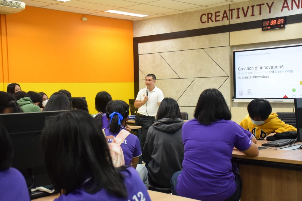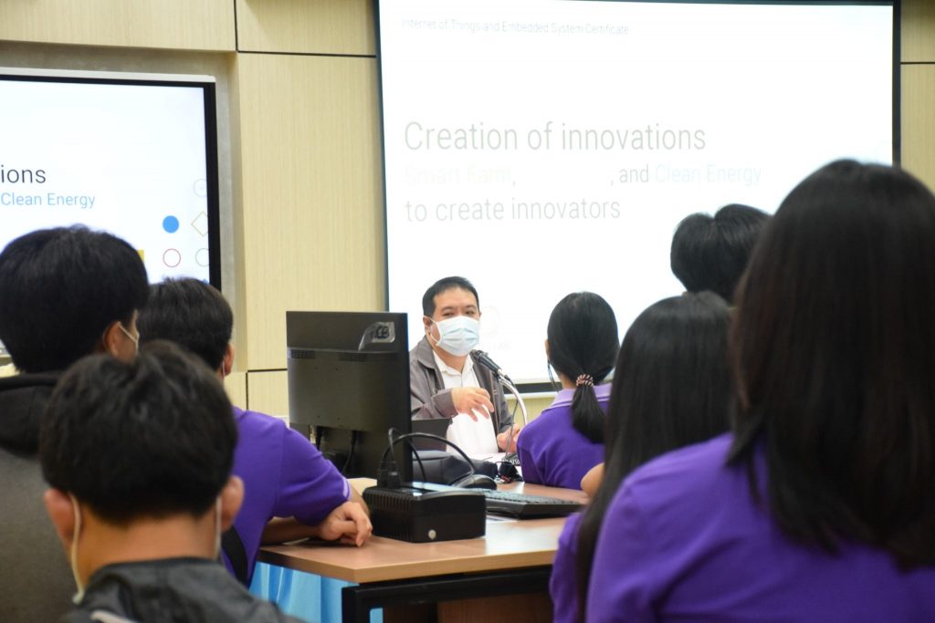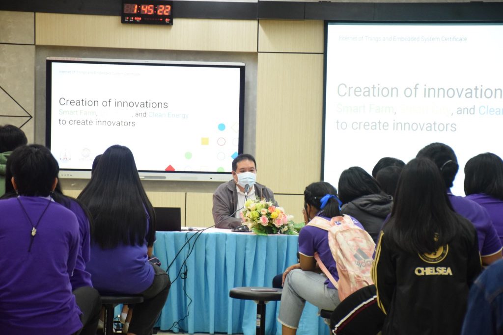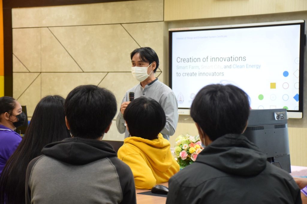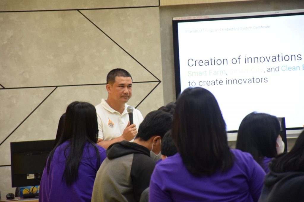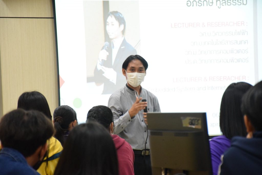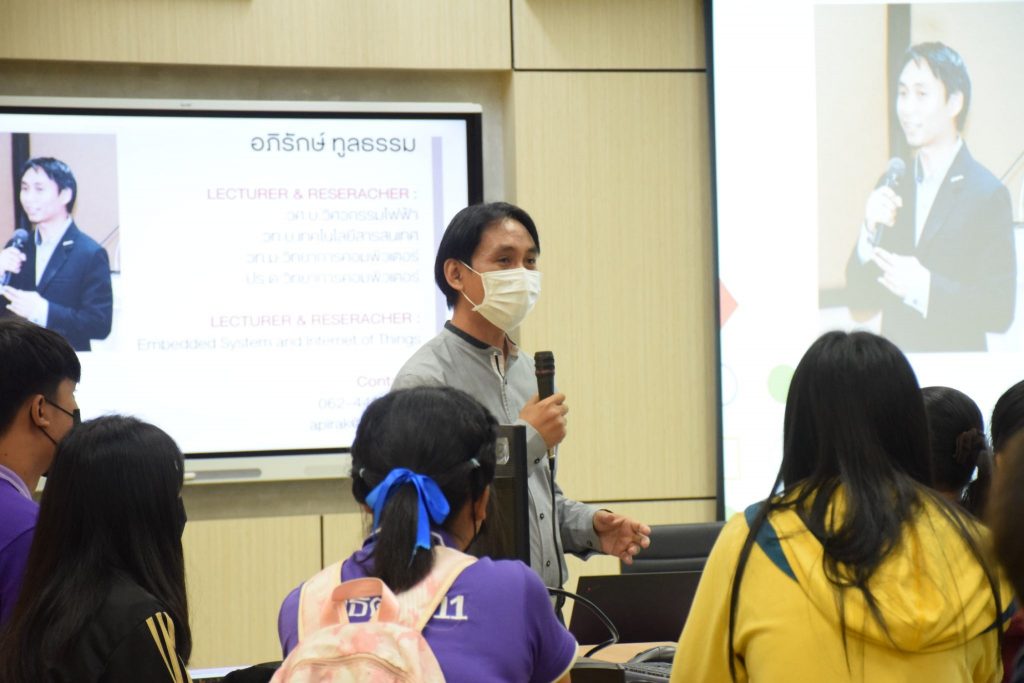 วันที่ 22-23 ตุลาคม 2565 คณะอุตสาหกรรมและเทคโนโลยี มทร.อีสาน วิทยาเขตสกลนคร จัดโครงการส่งเสริมการสร้างสิ่งประดิษฐ์ นวัตกรรมเพื่อการเป็นนวัตกร กิจกรรมที่ 1 กิจกรรมอบรมเพื่อพัฒนาทักษะและองค์ความรู้ในด้านการสร้างสิ่งประดิษฐ์ นวัตกรรมเพื่อการเป็นนวัตกร ณ ห้องปฏิบัติการสร้างต้นแบบนวัตกรรม อาคารสำนักงานคณบดีคณะอุตสาหกรรมและเทคโนโลยี โดยมีวัตถุประสงค์เพื่อให้นักศึกษาทุนนวัตกรรม สายอาชีพชั้นสูงได้รับความรู้ในการสร้างสิ่งประดิษฐ์ นวัตกรรม งานสร้างสรรค์ นำความรู้ และประสบการณ์ที่ได้รับไปประยุกต์ใช้ในงานอาชีพต่อไป โดยได้รับเกียรติจาก อาจารย์ ดร.อภิรักษ์ ทูลธรรม อาจารย์จากวิทยาลัยเทคโนโลยีอุตสาหกรรมศรีสงคราม มหาวิทยาลัยนครพนม พร้อมคณะ เป็นวิทยากรบรรยายให้ความรู้เรื่อง “การสรรค์สร้างนวัตกรรม ฟาร์มอัจฉริยะ เมืองอัจฉริยะ พลังงานสะอาด สู่การสรรค์สร้างนวัตกร” ในการนี้ ผศ.ดร.พรเทพ ปัญญาแก้ว รองคณบดีฝ่ายวิชาการและวิจัย ให้เกียรติเป็นประธาน ในพิธีเปิดโครงการ