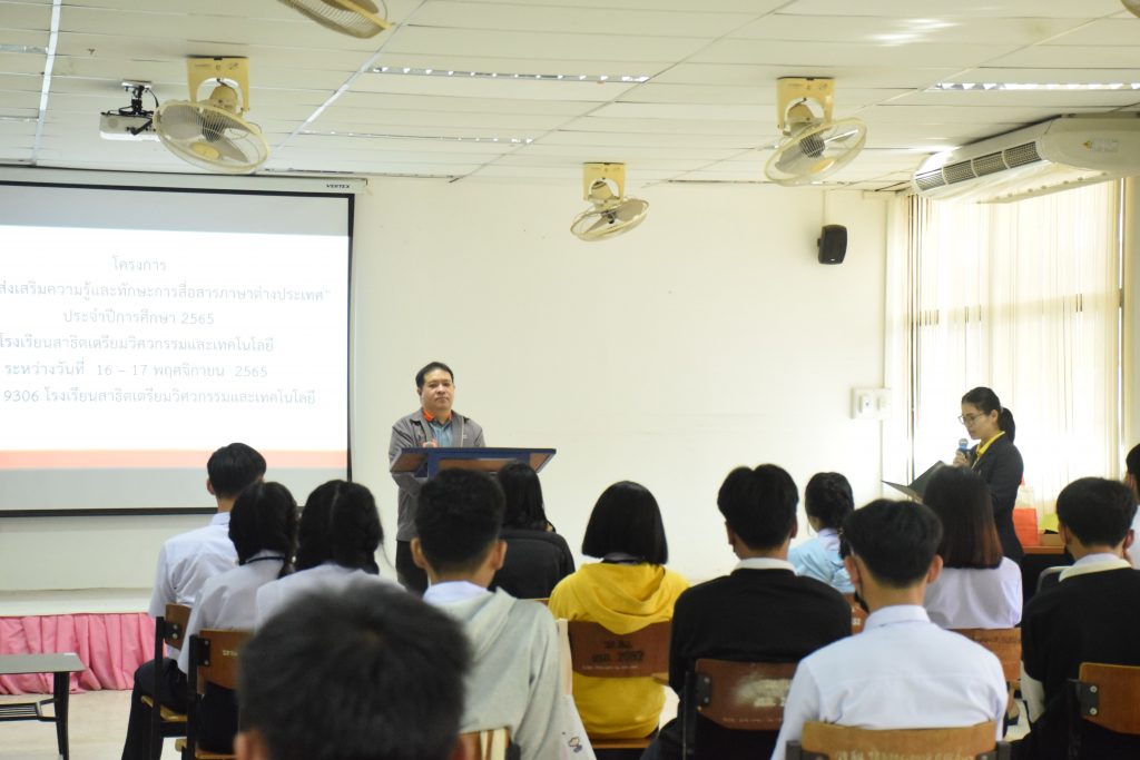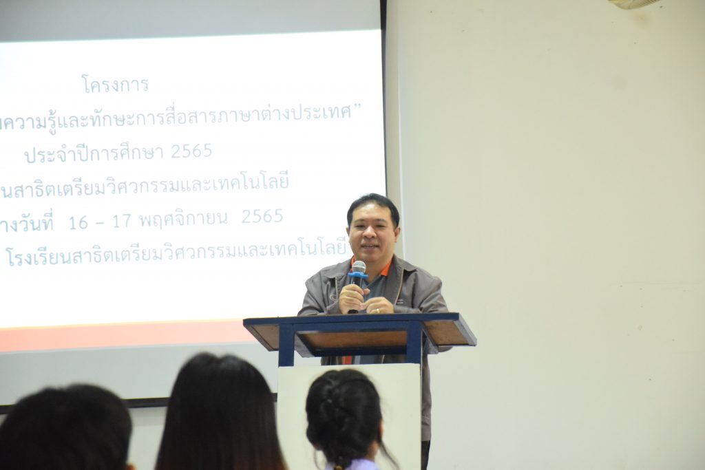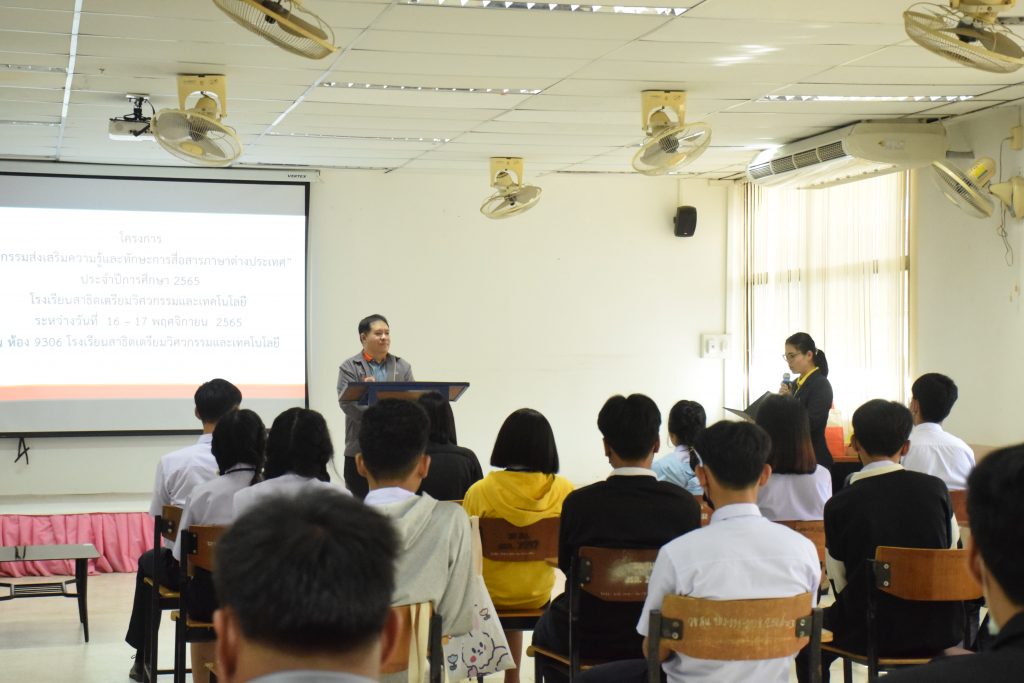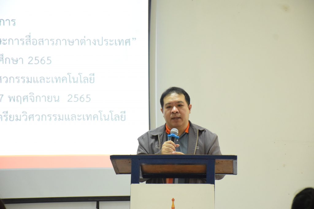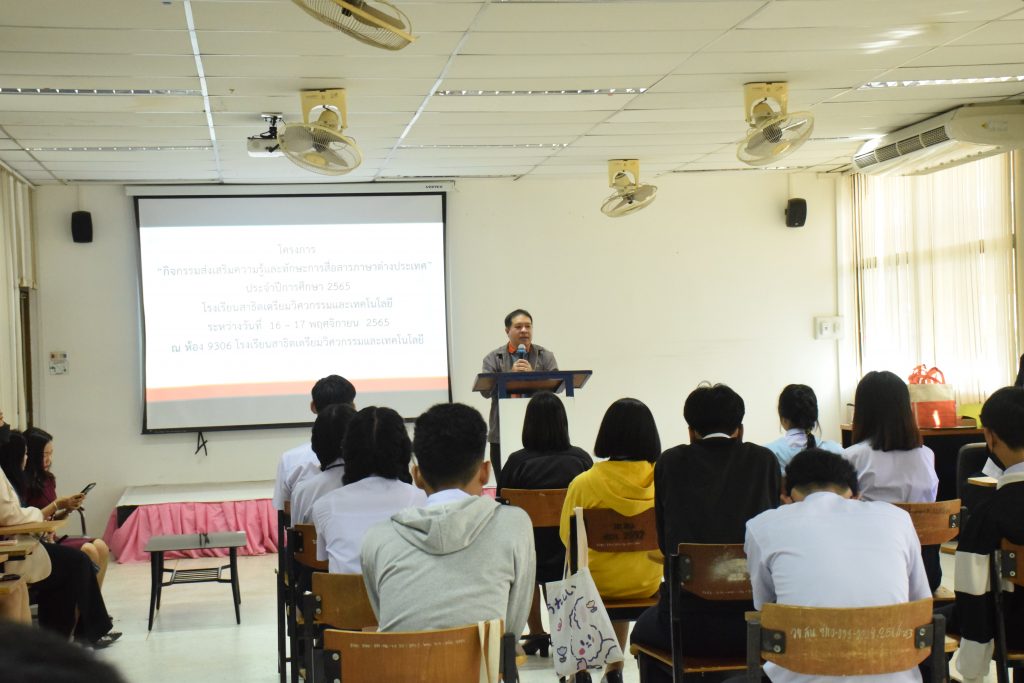 วันที่ 16 พฤศจิกายน 2565 คณะอุตสาหกรรมและเทคโนโลยี จัดกิจกรรมส่งเสริมความรู้และทักษะการสื่อสารภาษาต่างประเทศ ประจำปีการศึกษา 2565 ณ อาคารอเนกประสงค์ มหาวิทยาลัยเทคโนโลยีราชมงคลอีสาน วิทยาเขตสกลนคร โดยมีวัตถุประสงค์เพื่อส่งเสริมทักษะความรู้ทางด้านภาษาอังกฤษและภาษาจีนให้แก่นักศึกษา เรียนรู้วัฒนธรรมเจ้าของภาษา เปิดโอกาสให้นักศึกษากล้าแสดงออกทางภาษาอย่างได้เต็มที่ ในการนี้ ผศ.ดร.พรเทพ ปัญญาแก้ว รองคณบดีฝ่ายวิชาการและวิจัย ให้เกียรติเป็นประธานในพิธีเปิดโครงการ