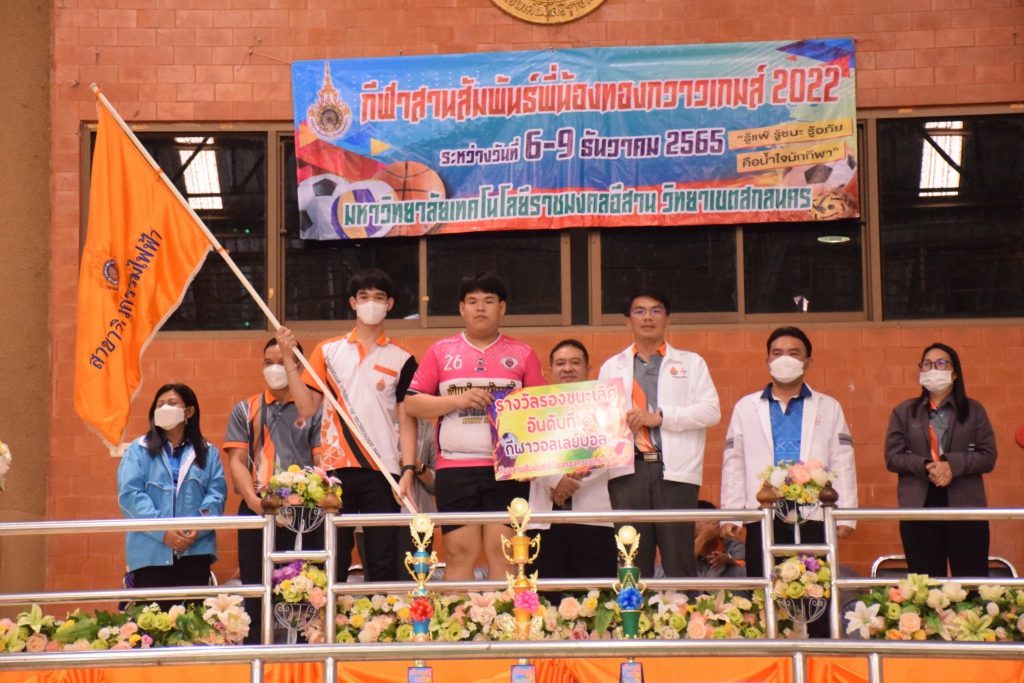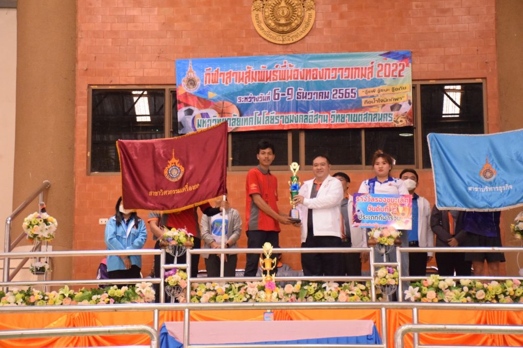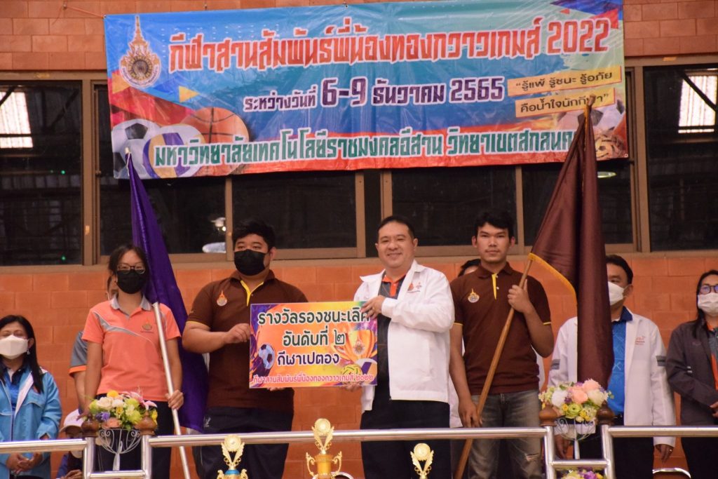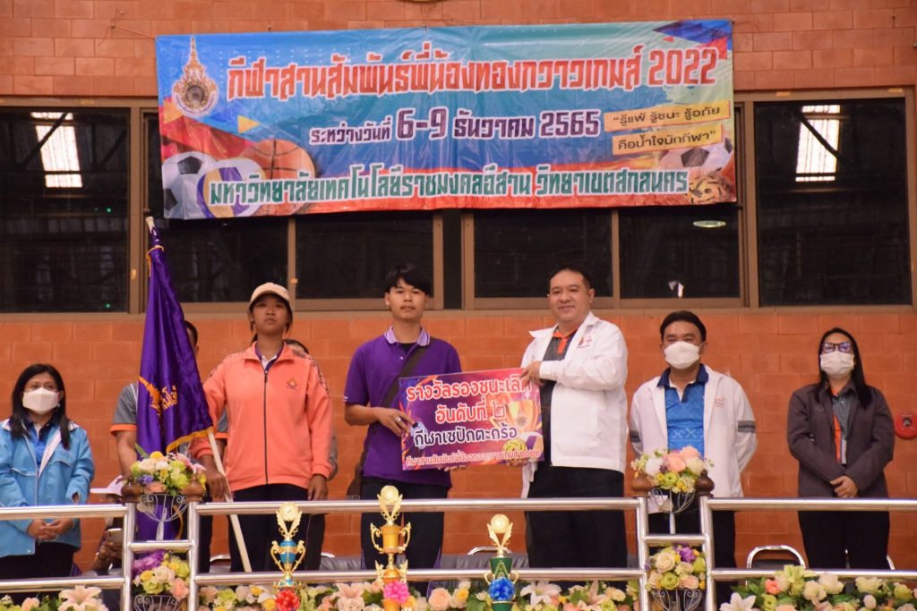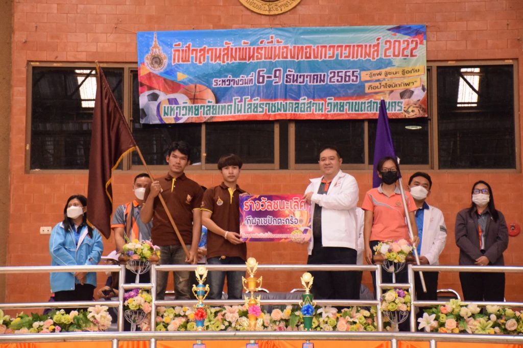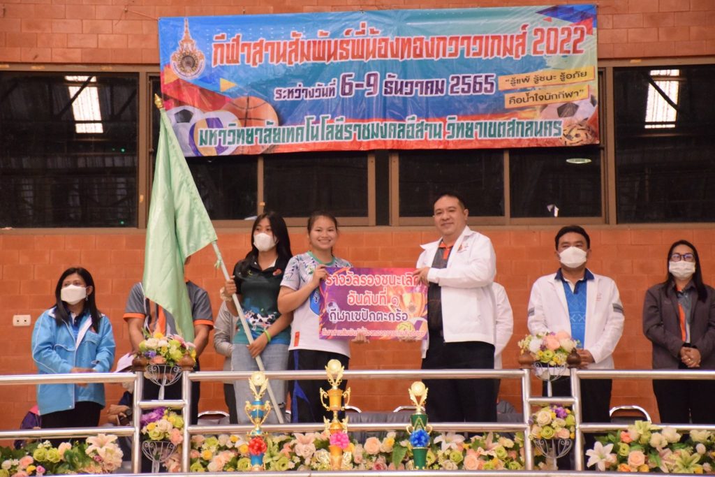 วันที่ 9 ธันวาคม 2565 สโมสรนักศึกษาคณะอุตสาหกรรมและเทคโนโลยี จัดกิจกรรมการแข่งขัน “กีฬาทองกวาวเกมส์ 2022” ประจำปี 2565 ณ อาคารกิจการนักศึกษา มหาวิทยาลัยเทคโนโลยีราชมงคลอีสาน วิทยาเขตสกลนคร โดยมีการดำเนินการแข่งขันในระหว่าง วันที่ 6-9 ธันวาคม 2565 การแข่งขันประกอบด้วย กีฬาฟุตซอล วอลเลย์บอล เซปักตะกร้อ และเปตอง โดยมีวัตถุประสงค์เพื่อเชื่อมความสัมพันธ์สร้างความรักสามัคคีของนักศึกษา ส่งเสริมสุขภาพกายและสุขภาพจิตที่ดี ปลูกฝังความมีน้ำใจเป็นนักกีฬาให้แก่นักศึกษาอีกด้วย ในการนี้ ผศ.ดร.พรเทพ ปัญญาแก้ว รองคณบดีฝ่ายวิชาการและวิจัย ให้เกียรติเป็นประธาน ในพิธีมอบรางวัลแก่ผู้ชนะการแข่งขันในครั้งนี้