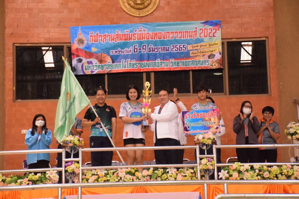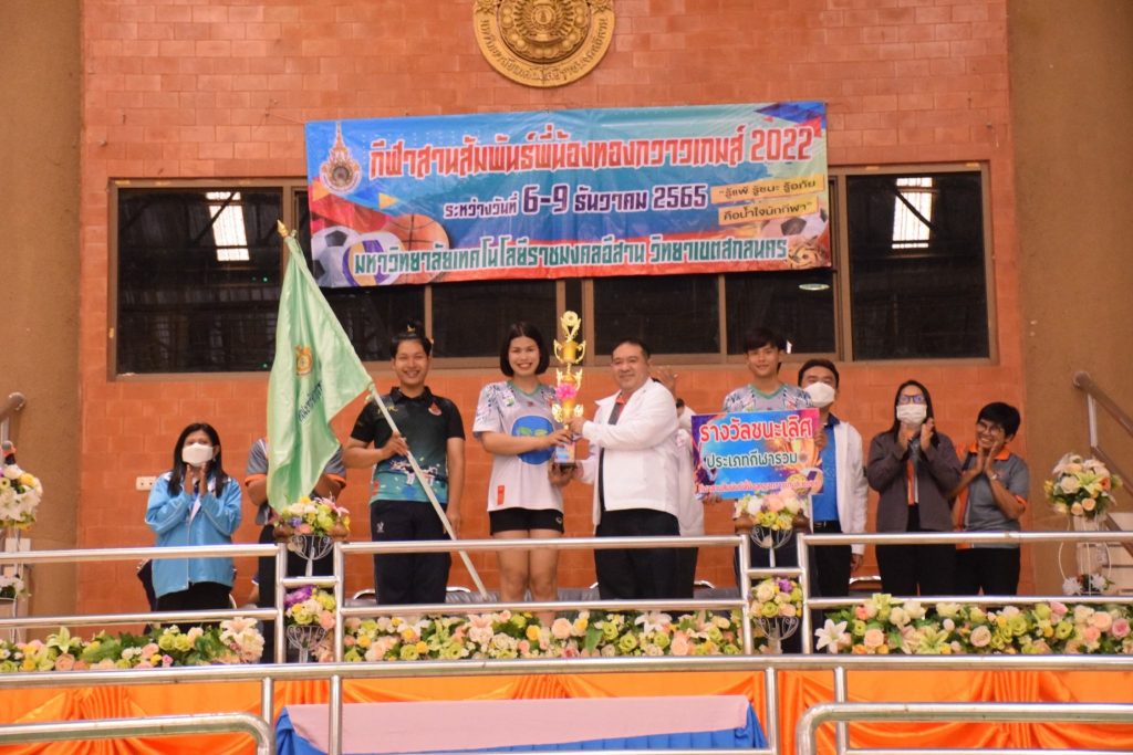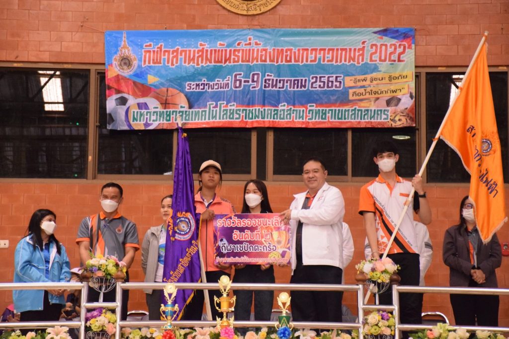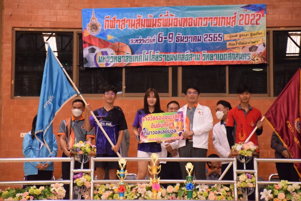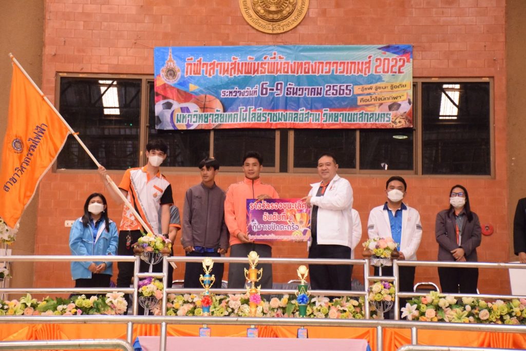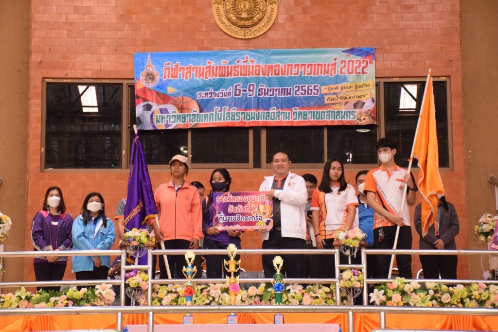 วันที่ 9 ธันวาคม 2565 สโมสรนักศึกษาคณะอุตสาหกรรมและเทคโนโลยี จัดกิจกรรมการแข่งขัน “กีฬาทองกวาวเกมส์ 2022” ประจำปี 2565 ณ อาคารกิจการนักศึกษา มหาวิทยาลัยเทคโนโลยีราชมงคลอีสาน วิทยาเขตสกลนคร โดยมีการดำเนินการแข่งขันในระหว่าง วันที่ 6-9 ธันวาคม 2565 การแข่งขันประกอบด้วย กีฬาฟุตซอล วอลเลย์บอล เซปักตะกร้อ และเปตอง โดยมีวัตถุประสงค์เพื่อเชื่อมความสัมพันธ์สร้างความรักสามัคคีของนักศึกษา ส่งเสริมสุขภาพกายและสุขภาพจิตที่ดี ปลูกฝังความมีน้ำใจเป็นนักกีฬาให้แก่นักศึกษาอีกด้วย ในการนี้ ผศ.ดร.พรเทพ ปัญญาแก้ว รองคณบดีฝ่ายวิชาการและวิจัย ให้เกียรติเป็นประธาน ในพิธีมอบรางวัลแก่ผู้ชนะการแข่งขันในครั้งนี้